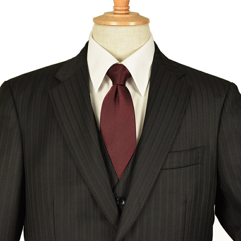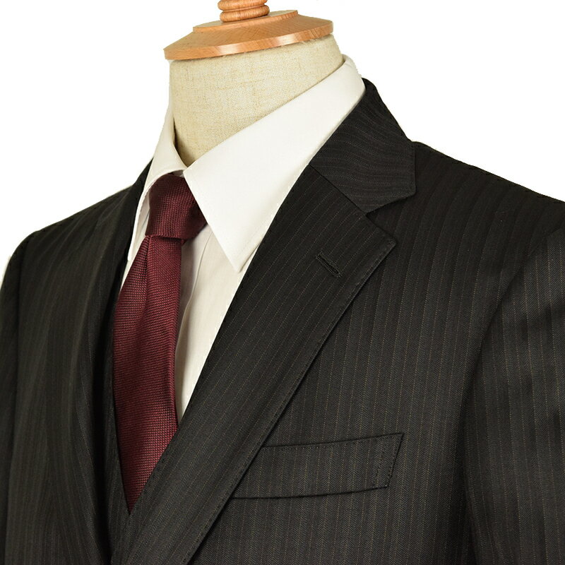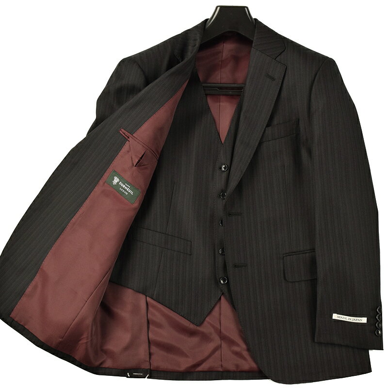 ◆DORMEUIL ドーメル 英国製生地◆秋冬モデル【スリーピース】日本国内縫製 ピンストライプ柄 ウールスーツ 黒 メンズスーツ ビジネススーツ 卒業式 入学式 入社式 新入社員 男(普通サイズ・キングサイズ・大きいサイズ・ビッグサイズ)