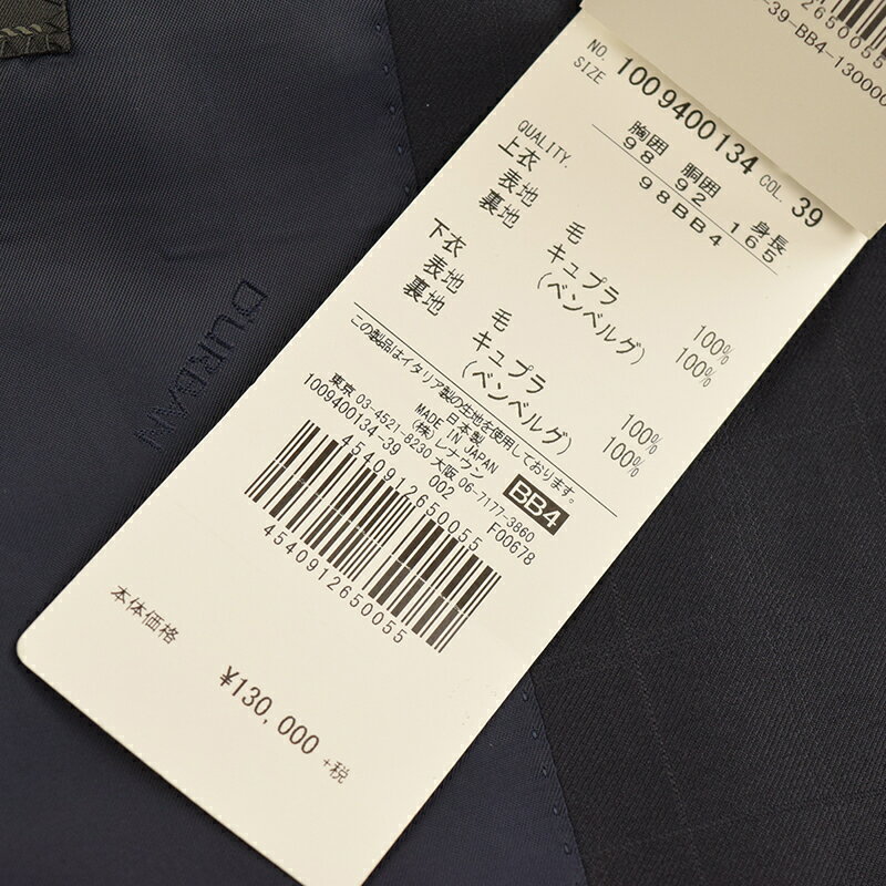 ◆D'URBAN ダーバン◆秋冬モデル 定価 143,000円 日本製 イタリア生地【ロロ・ピアーナ/LoroPiana】 TASMANIAN -タスマニアン チェック柄ウールスーツ 濃紺 (BB4サイズ) メンズスーツ ビジネススーツ