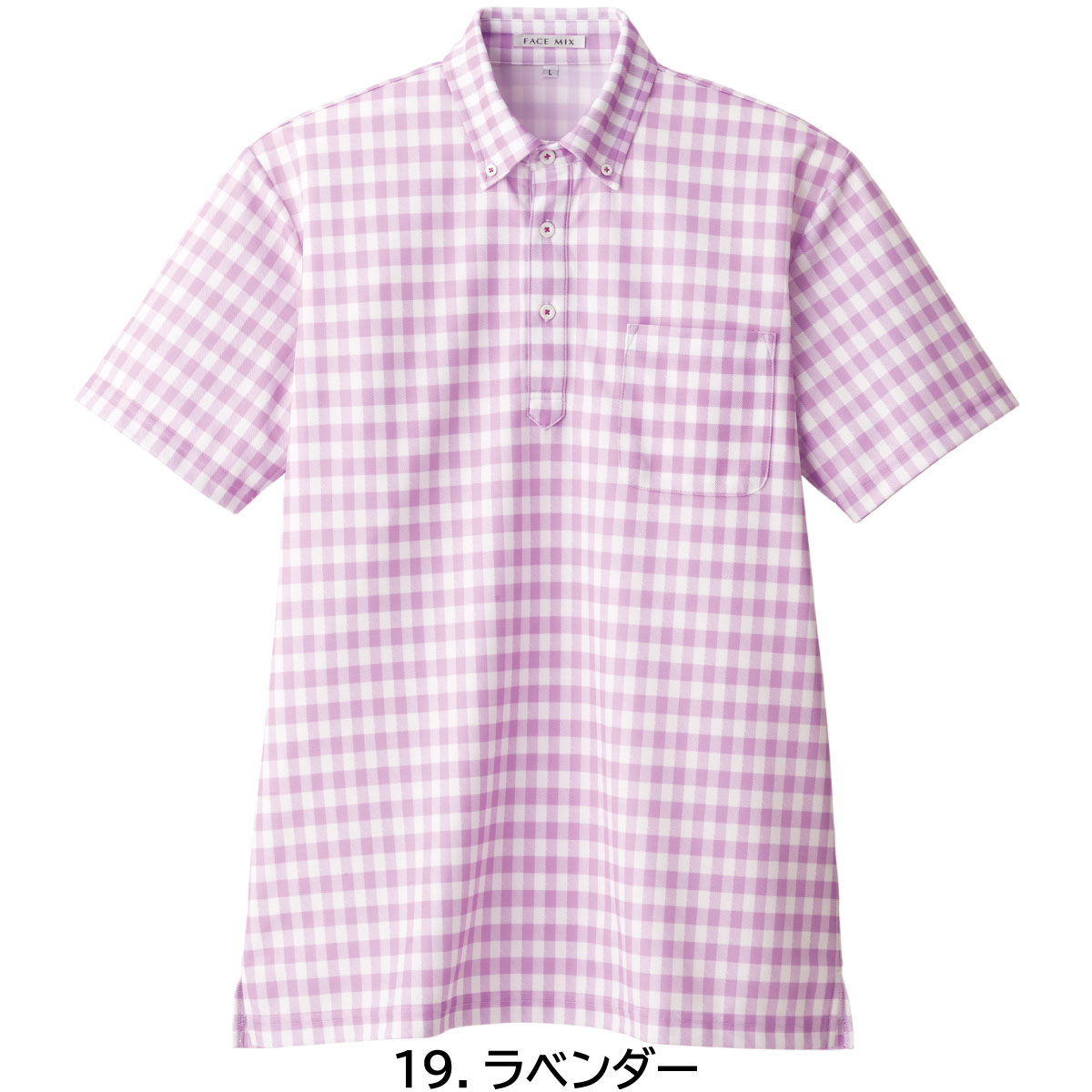 チェックプリントポロシャツ FB4523U SS〜4L 男女兼用 FACEMIX フェイスミックス 7色展開