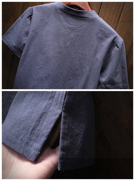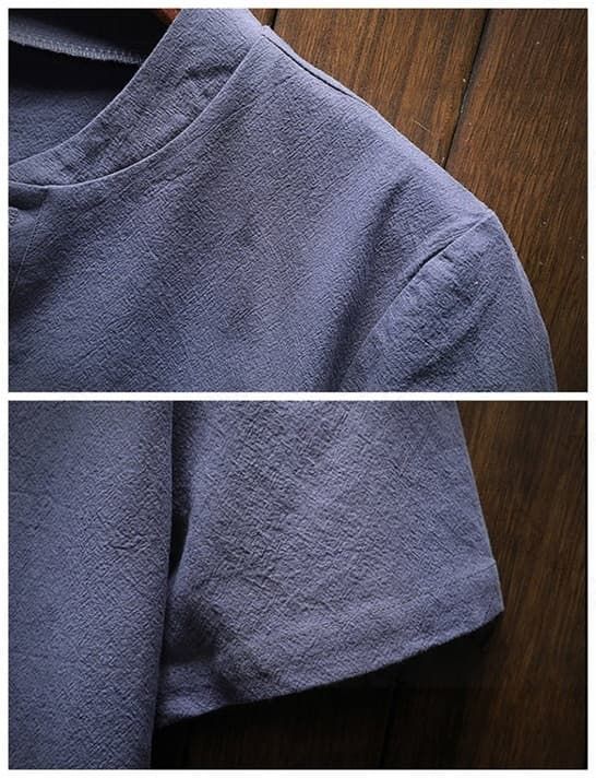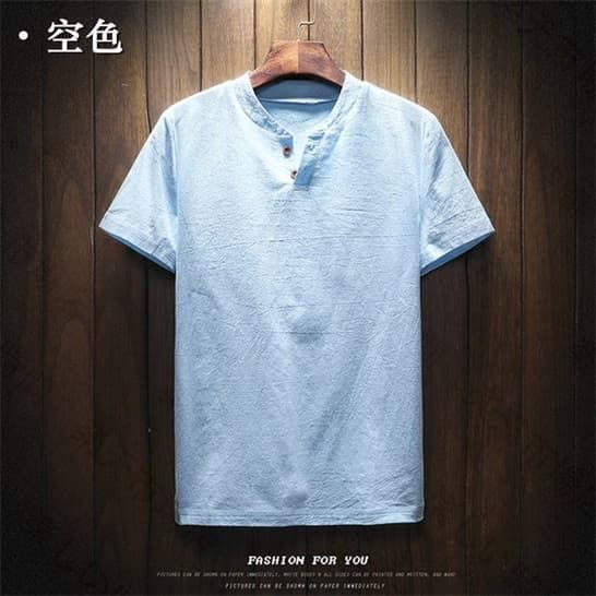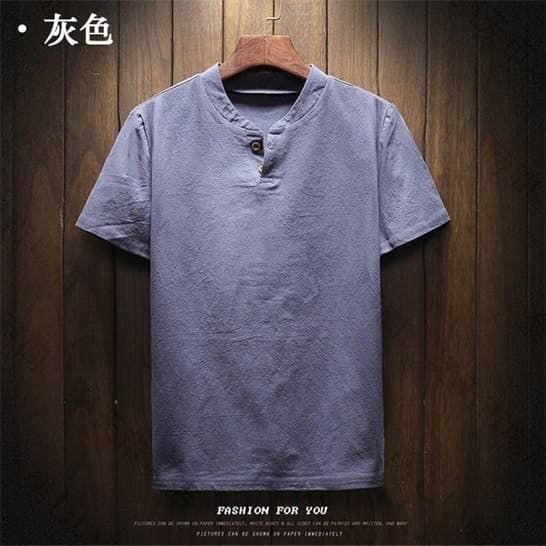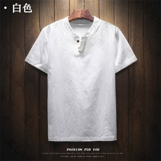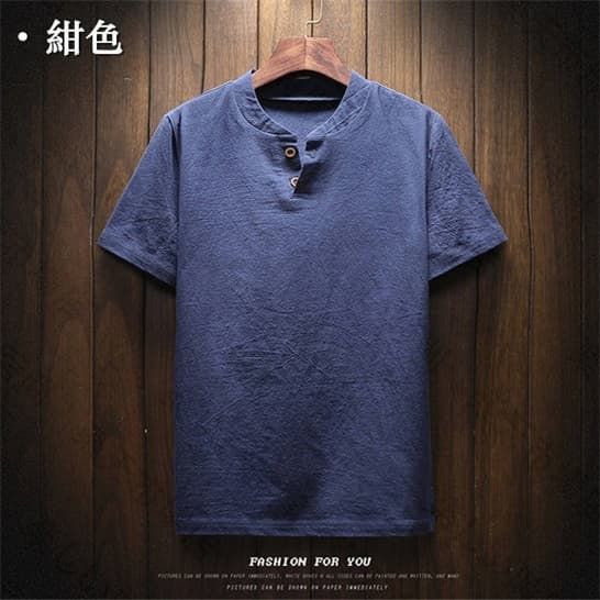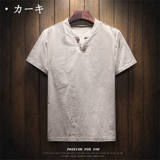 半袖Tシャツ リネンTシャツ メンズTシャツ ヘンリーネックTシャツ 薄手 カットソー 無地 シンプル カジュアルTシャツ綿麻Tシャツ 夏服 トップス