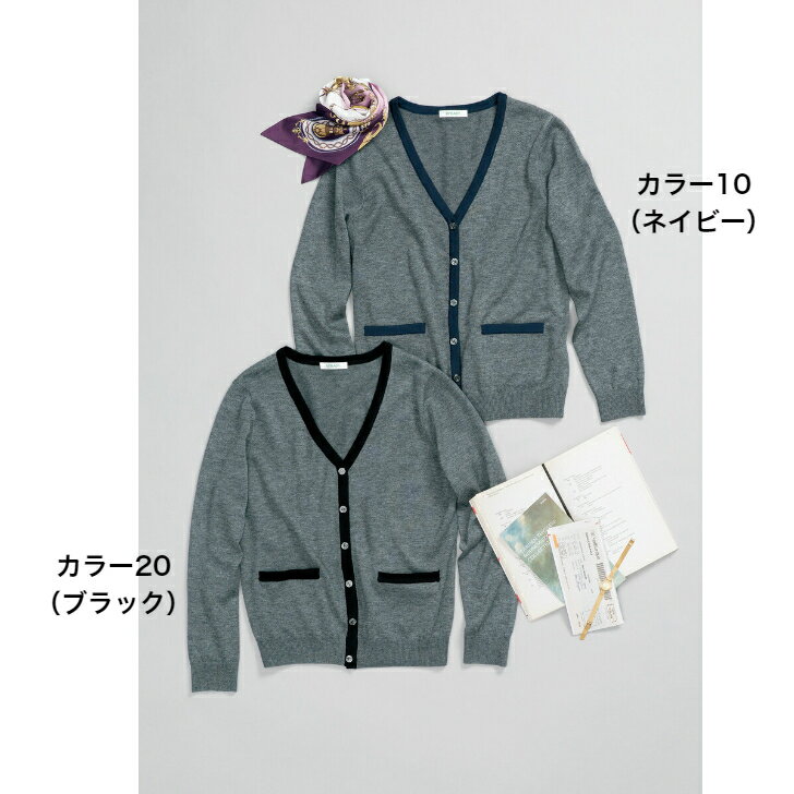 【営業日1〜2日発送】カーディガン ニットVネック ゆったり 温かい手洗い 帯電防止 毛玉防止両脇ポケットU1124 ネイビー ブラックヤギ ユニレディ