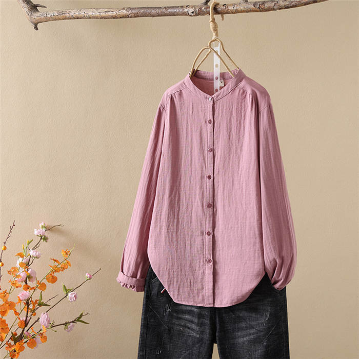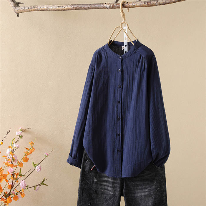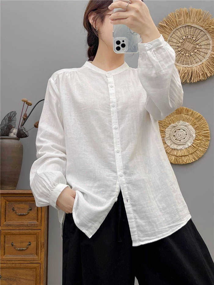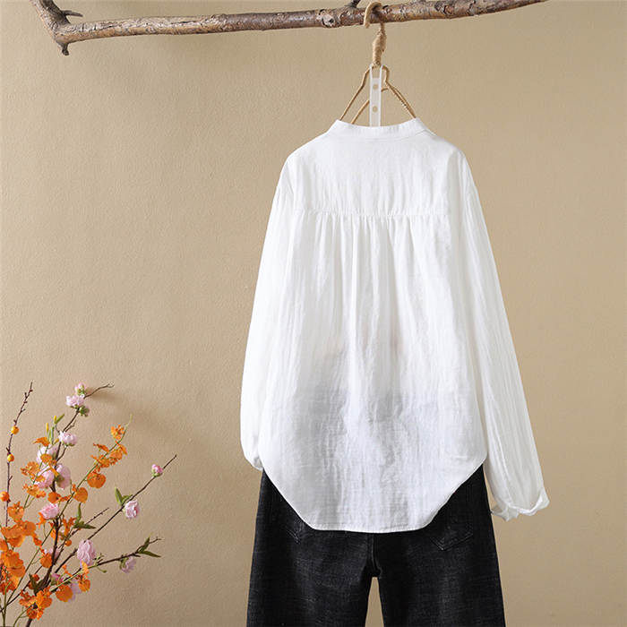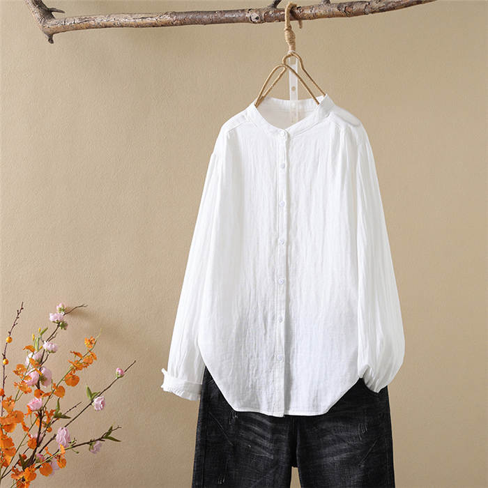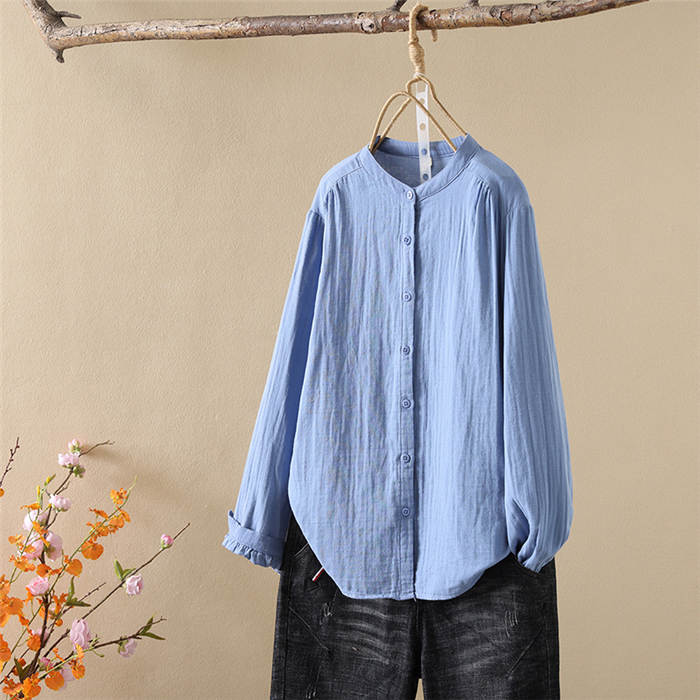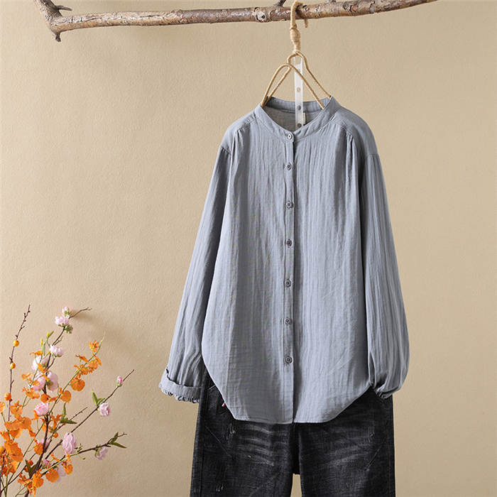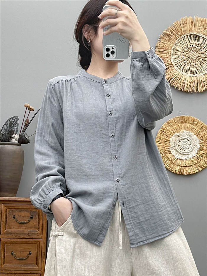 クーポンで2180円 バンドカラー ガーゼ シャツ ダブルガーゼ 綿100% 秋 春 シャツブラウス レディース ブラウス 長袖 ガーゼシャツ トップス ガーゼコットン カジュアル ナチュラル 無地 2重ガーゼ 大きいサイズ 通勤 春秋 秋冬 大人 シンプル ソフト ホワイト グレー