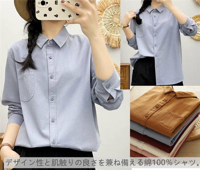シャツ 綿100% レディース ネルシャツ 微起毛 春 秋 冬 ブラッシュドコットン 大人 あったか シャツブラウス 長袖 シンプル トップス インナー 重ね着 カジュアル 無地 ゆったり 体型カバー 通勤 オフィス 秋冬 着回し 柔らかい 綿 コットン 暖かい 新作 送料無料