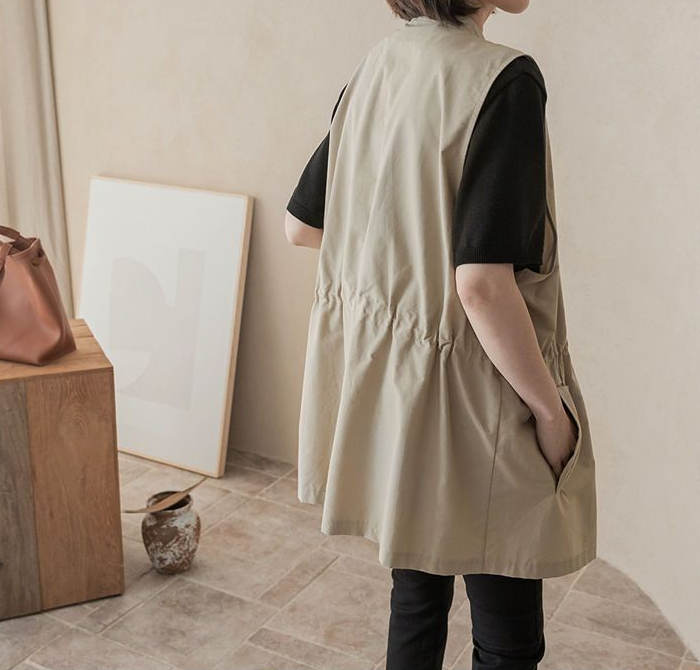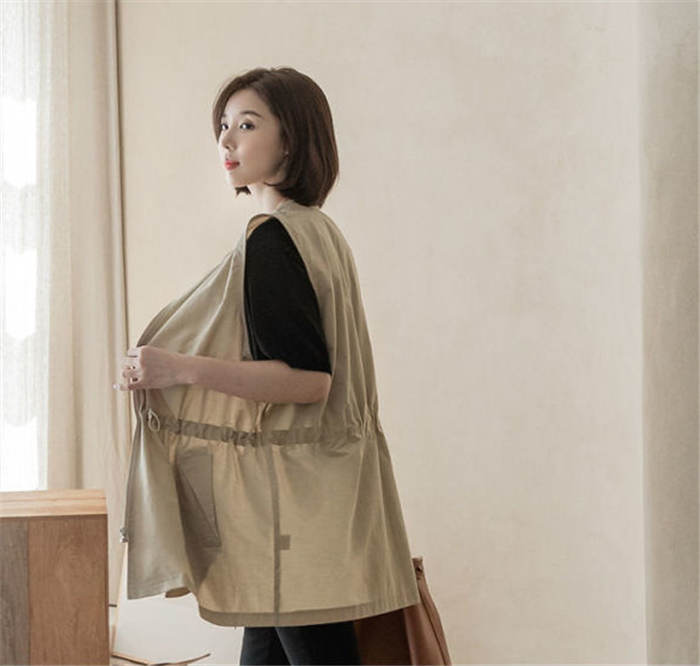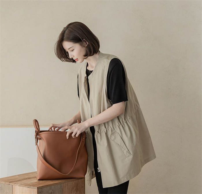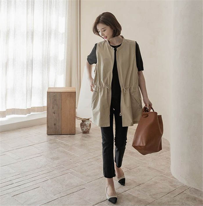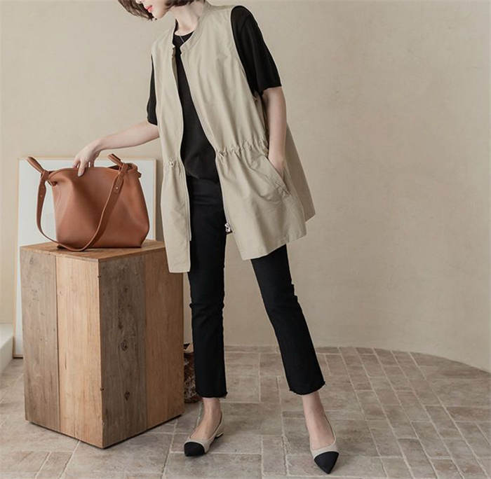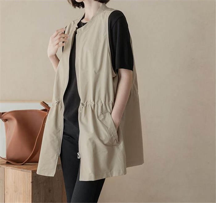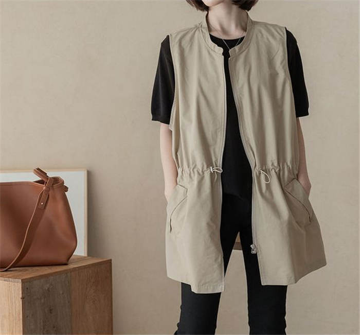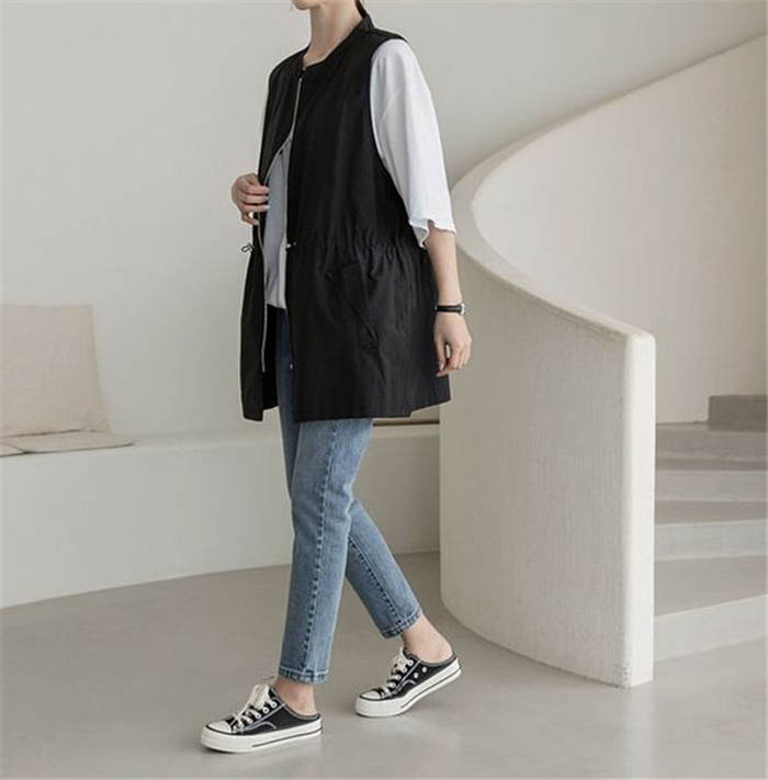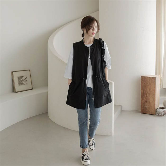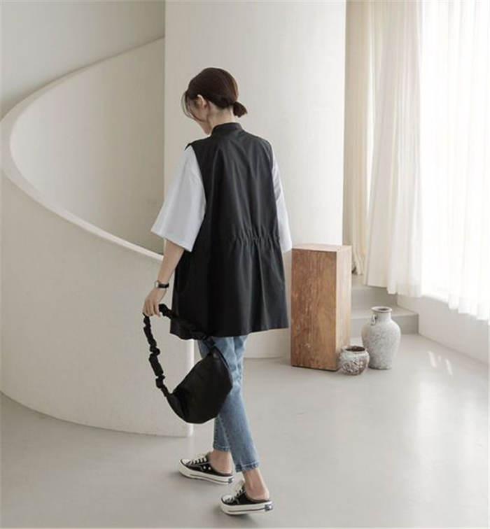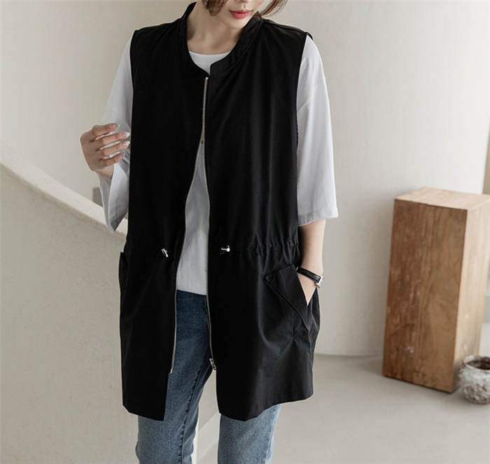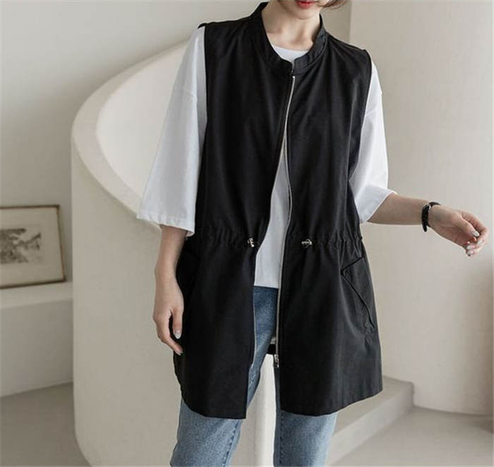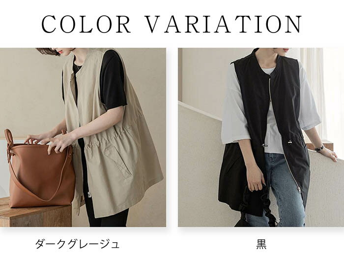 ジレ ベスト レディース 春夏 おしゃれ 前開き ジレ レディース 春 夏 秋 バンドカラー トップス ノースリーブ ノースリーブジャケット ファスナー ゆる ゆったり 体型カバー 大きいサイズ 大人 重ね着 レイヤード 黒 ブラック 送料無料