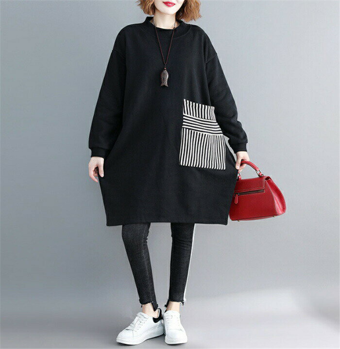 スウェット 裏起毛 冬 チュニックワンピース チュニック ワンピース チュニック 長袖 レディース ゆったり 秋冬 大きいサイズ ビッグシルエット トレーナー 体型カバー ナチュラル 通勤 秋 冬 春 シンプル 着回し 暖かい 30代 40代 50代 ポケット付き 無地 黒 送料無料