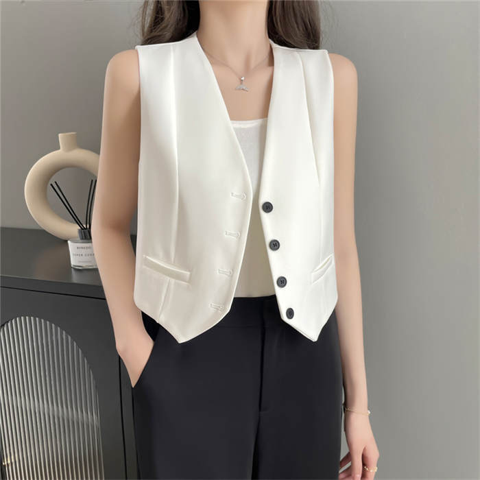 サマー ベスト レディース ショート丈 ジレ ベスト 春 夏 春夏 ノーカラー テーラードベスト vネック オシャレ フォーマル 前開き デザイン おしゃれ ジレベスト トップス 着回し レイヤード 無地 通勤 オフィス シンプル 重ね着 大人 定番 ブラック 黒 白 送料無料