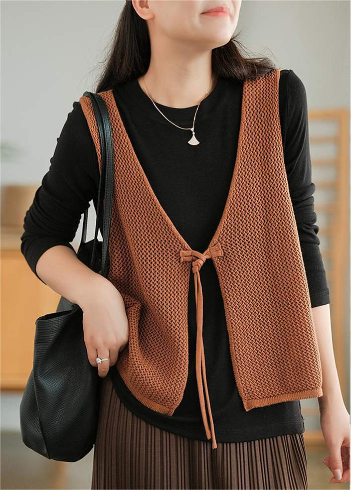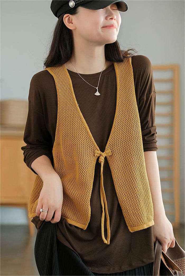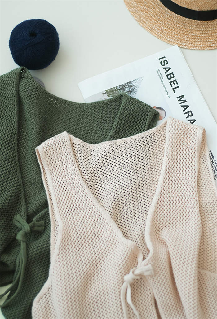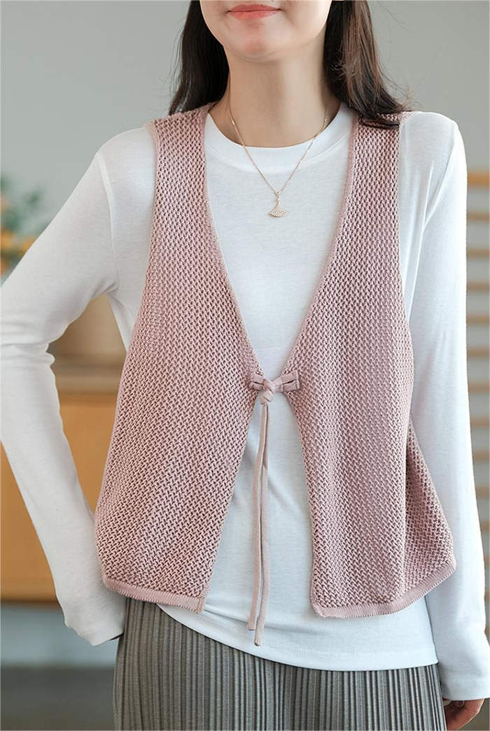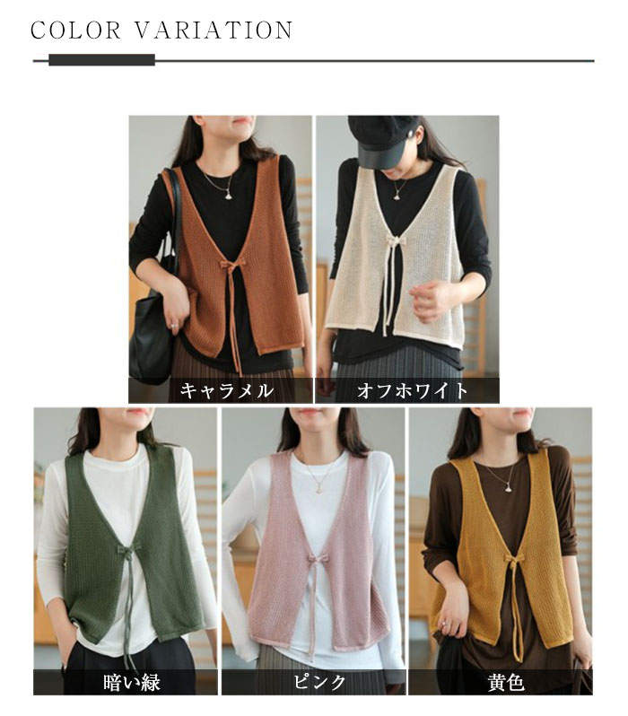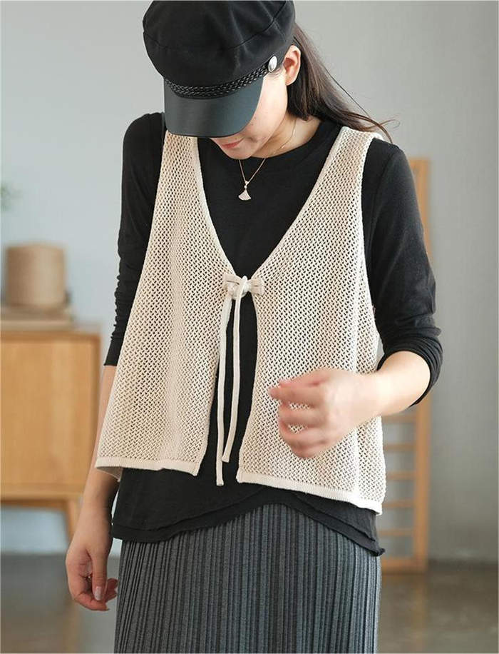 透かし編み ニット ベスト リボン ニットベスト レディース ゆったり 大人 森ガール ゆったり ショート ノースリーブ 大人可愛い コーデ 夏 春 秋 サマー ベスト 春夏 前開き 春ベスト おしゃれ トップス シンプル カジュアル レイヤード 重ね着 30代 40代 50代 送料無料