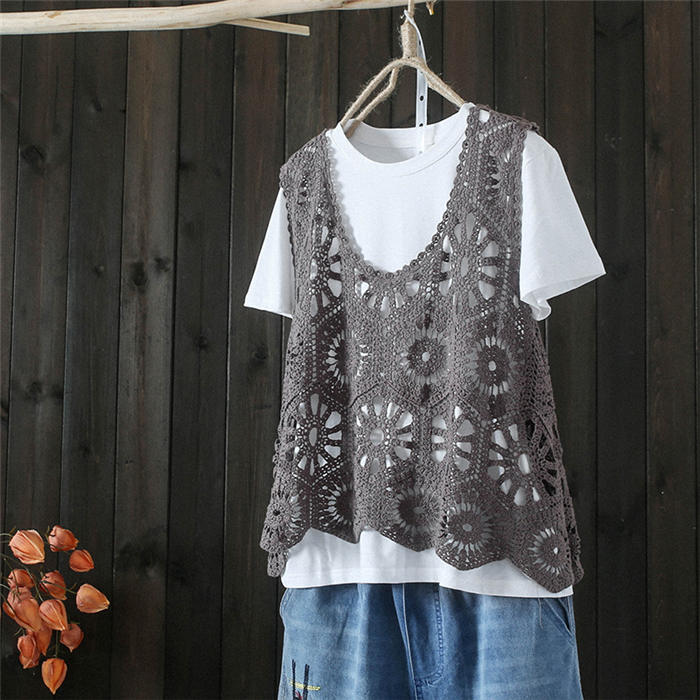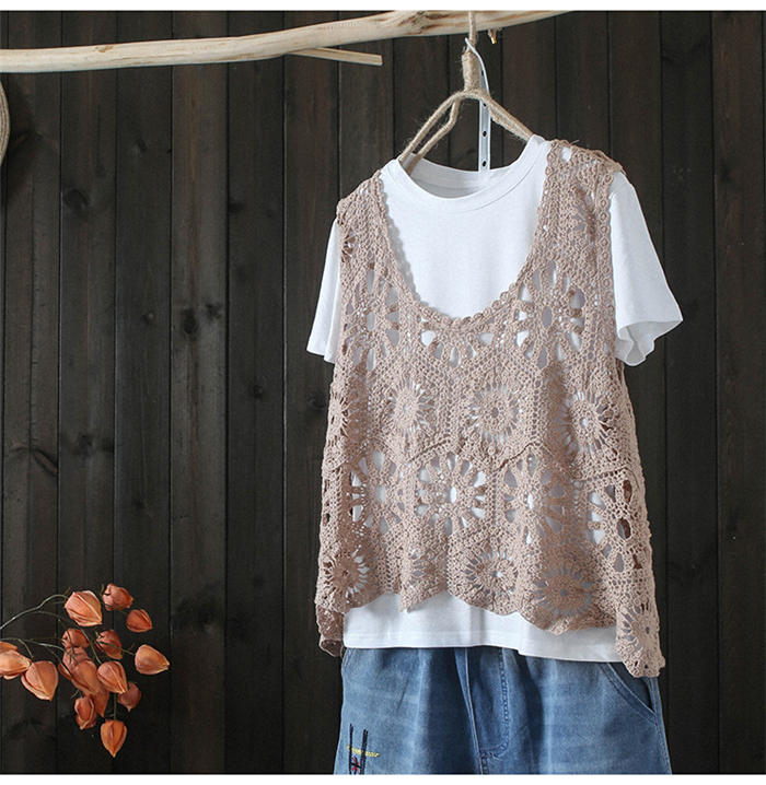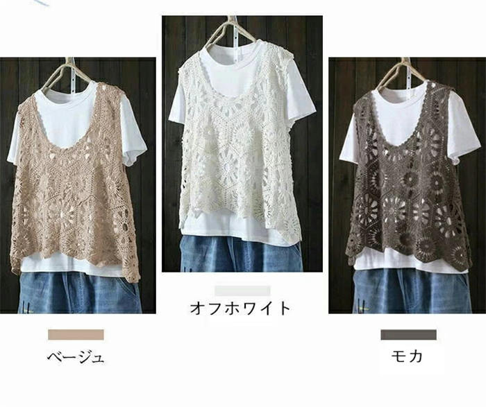 ベスト レディース Uネック プルオーバー サマー ベスト レース編み 夏 透かし編み レース ベスト 春ベスト おしゃれ 着回し 春 夏 秋 トップス 体型カバー ノースリーブ シンプル カジュアル ナチュラル レイヤード 重ね着 ショート丈 定番 30代 40代 50代 着回し
