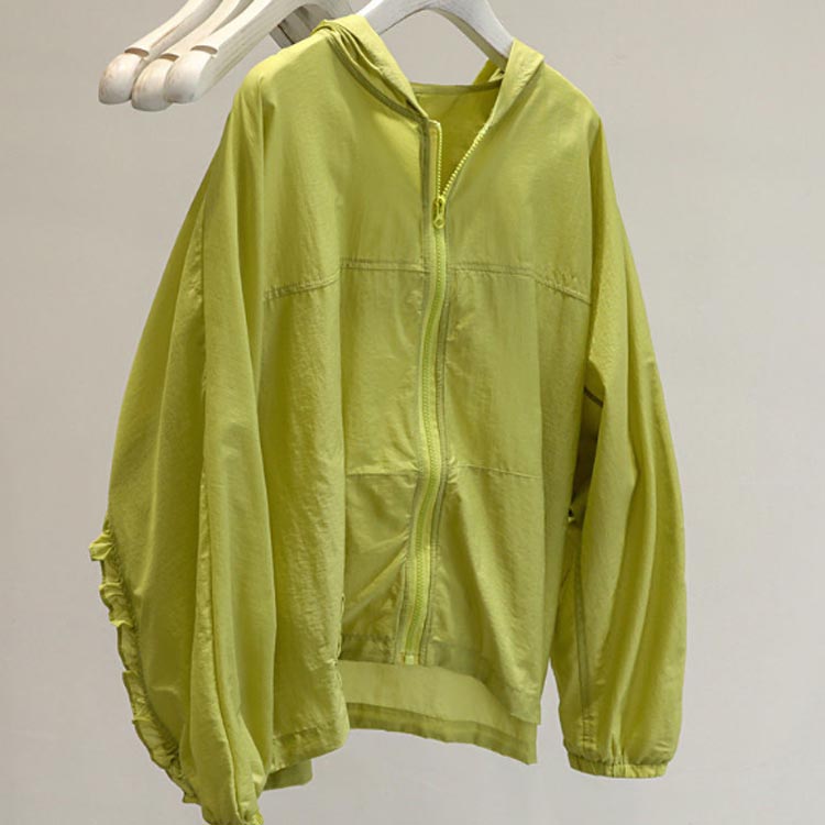 紫外線対策 アウター フリル ショート丈 カーディガン uvカット 涼しい 薄手 パーカー ライトアウター ジャケット uvカット 羽織り 春 夏 レディース 長袖 シアー フード付き 通気性 冷房対応 UV対策 日焼け止め きれいめ