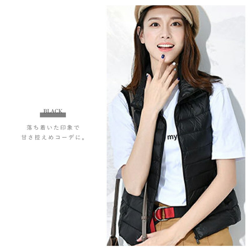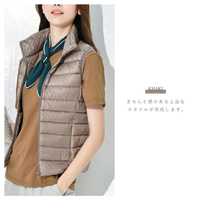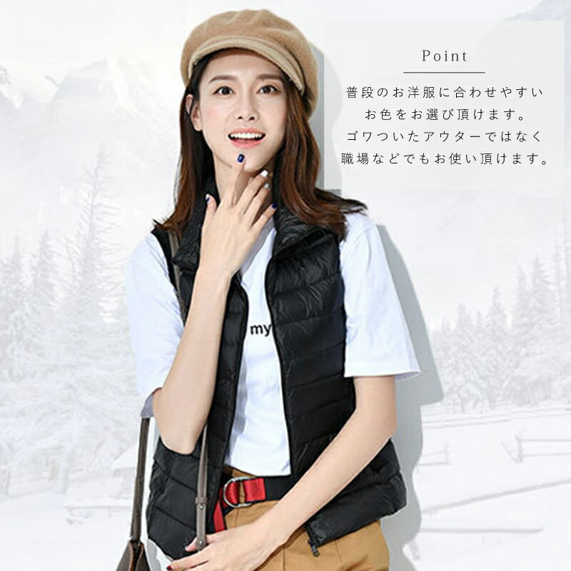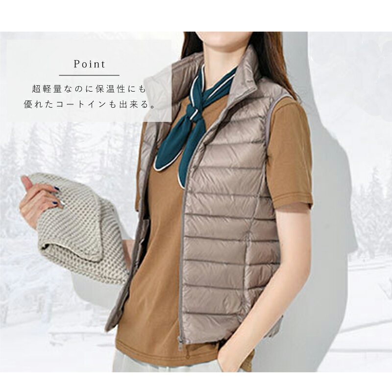 おしゃれ 暖かい シンプル ダウンベスト 薄型 ライトダウン 軽量 レディース インナーダウン 春 秋 冬 S-XL 防寒 無地 コンパクト ベスト ダウンジャケット ウルトラ 可愛い エコ ダウン 収納 トップス 大きいサイズ 大人 コーデ カジュアル ライトアウター ファッション