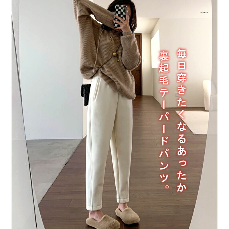 裏起毛 テーパードパンツ 伸び レディース [裏ボア ストレッチ 裏起毛ストレッチ あったか 楽ちん 伸縮性 ウエストゴム 体型カバー オフィス お出掛け アウトドア 30代 40代 パンツ ズボン カジュアル ポケット付き 動きやすい 防寒 暖かい 暖パン 秋冬 冬用 すっきり]