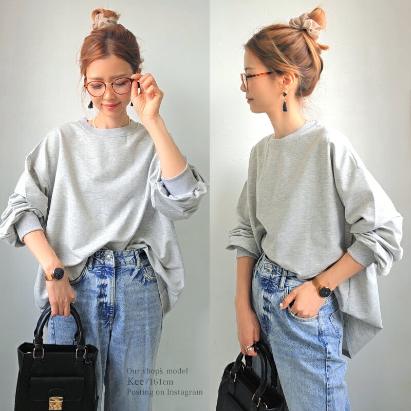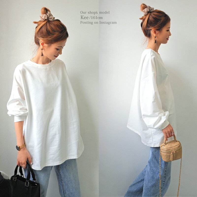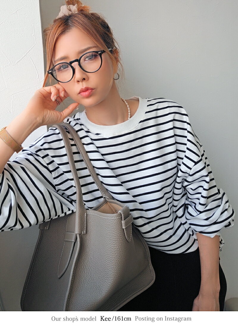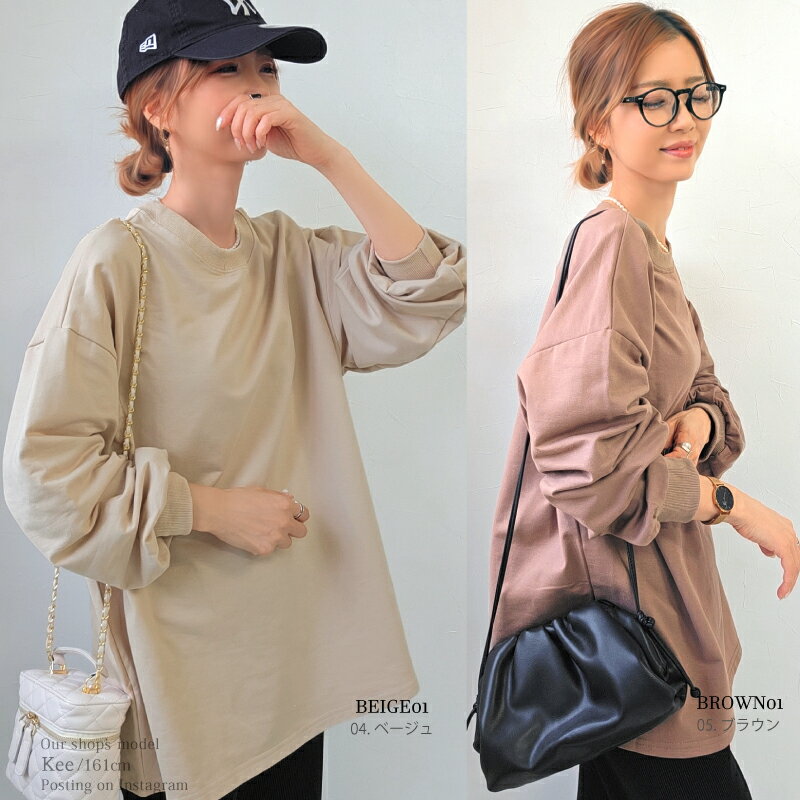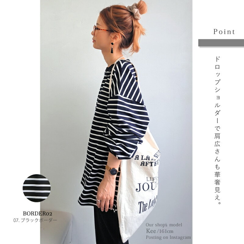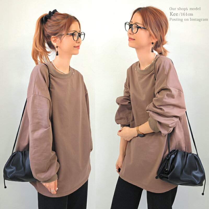 【クーポンで2380円】Tシャツ 長袖 ボリューム袖 ゆったり スウェット レディース プルオーバー ボーダー [コットン 袖リブ 厚手 M L 綿 ぽわん袖 きれいめ オーバーサイズ ビッグシルエット 大きい 抜け感 アースカラー ゆるシルエット カジュアル ルーム ウェア ]