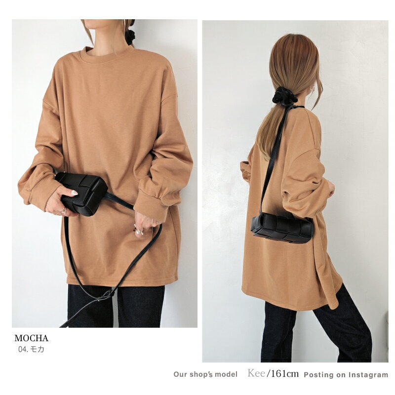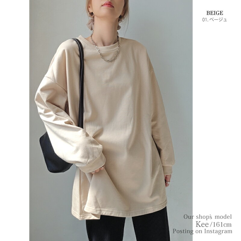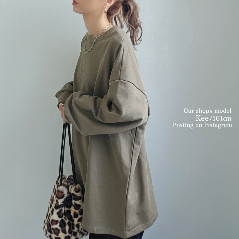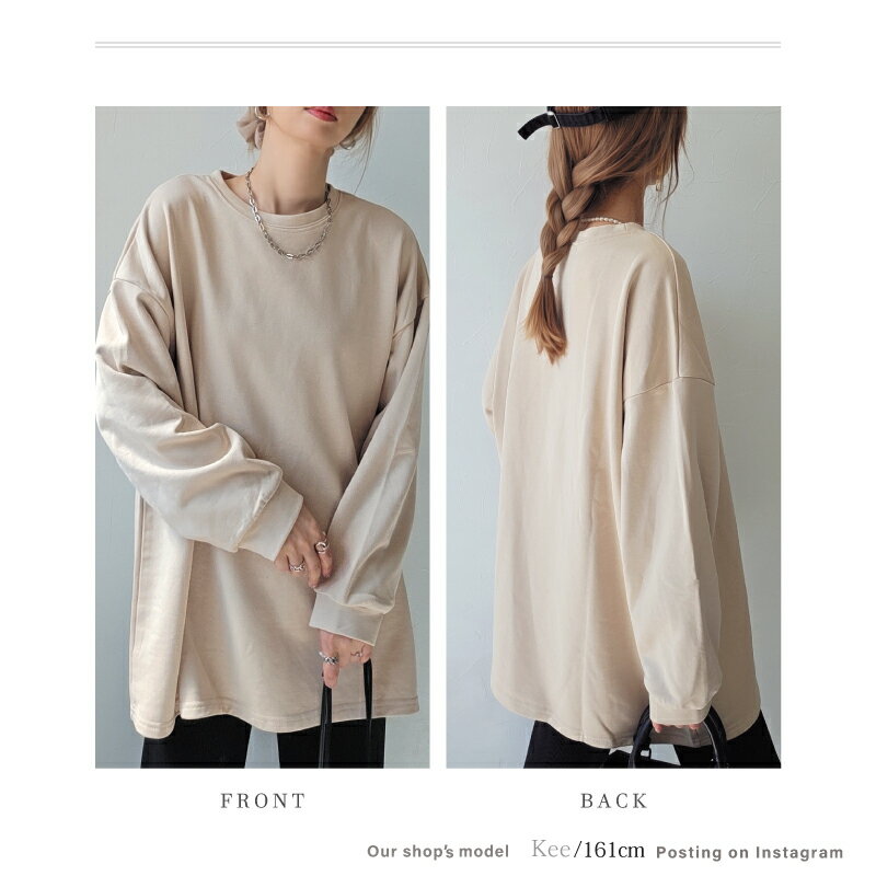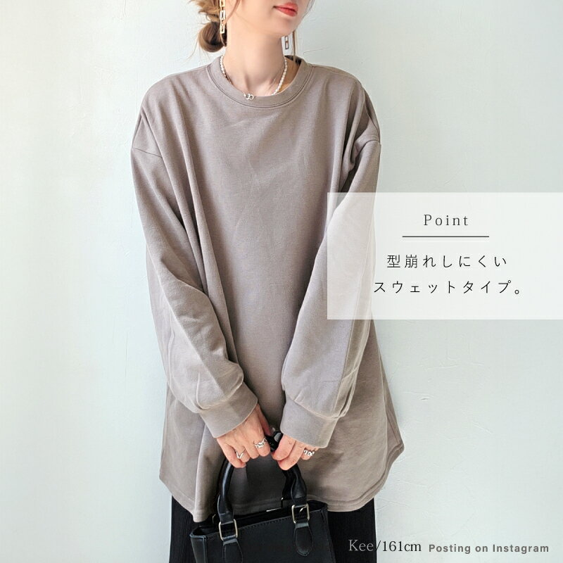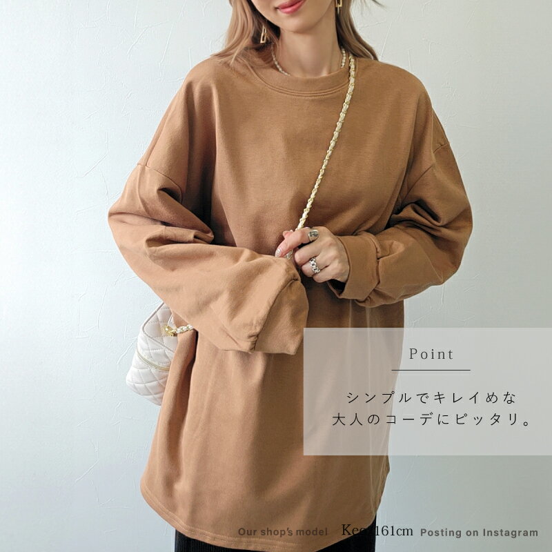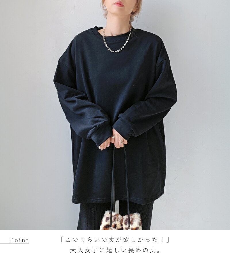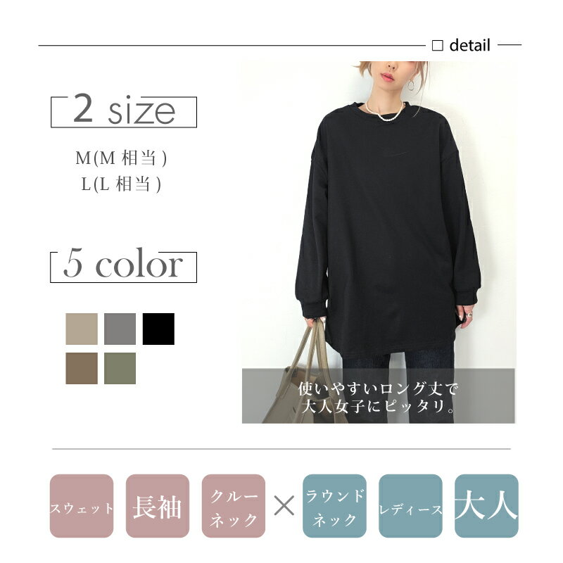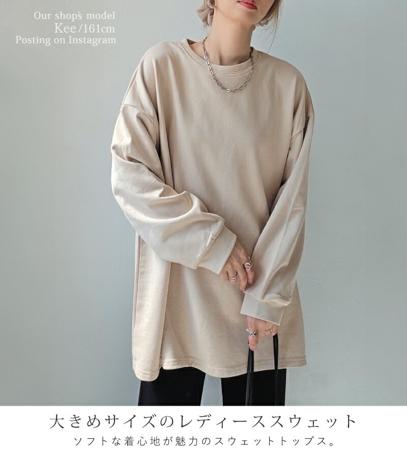 きれいめ ゆったり スウェット レディース プルオーバー 袖 リブ 長袖 薄手 M L [ロング トレーナー ビッグシルエット 大きいサイズ 抜け感 アースカラー ゆるシルエット 春 秋 冬 シンプル スエット カジュアル リラックス ルーム ウェア おしゃれ 可愛い 20 30 40 代]