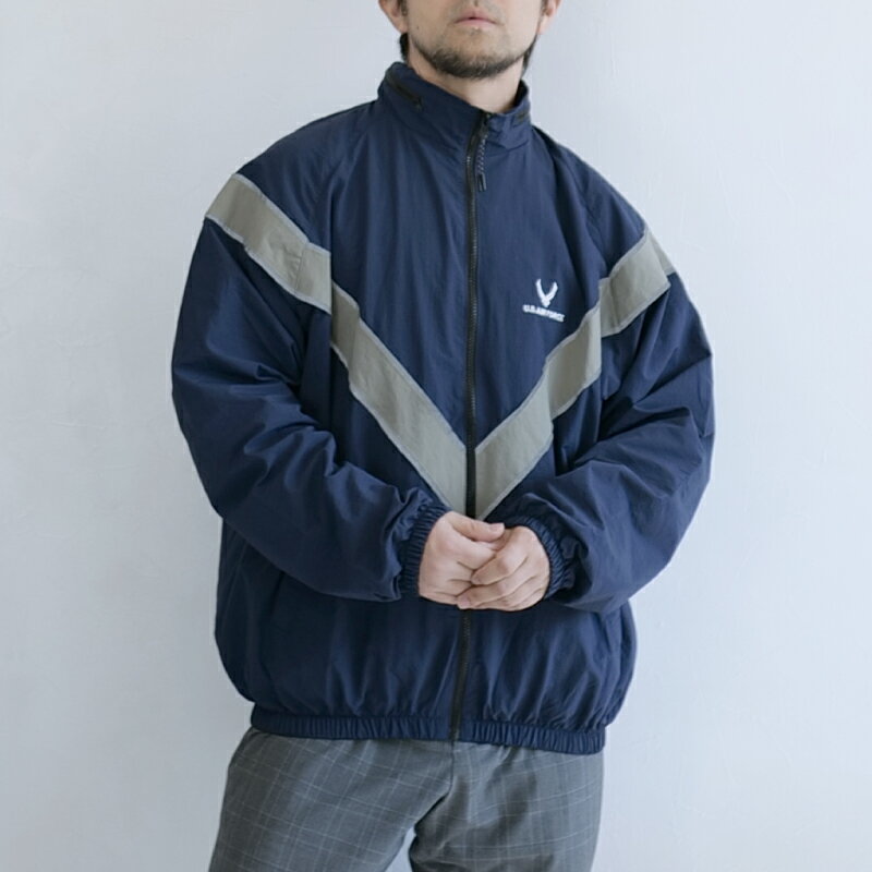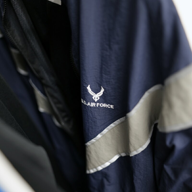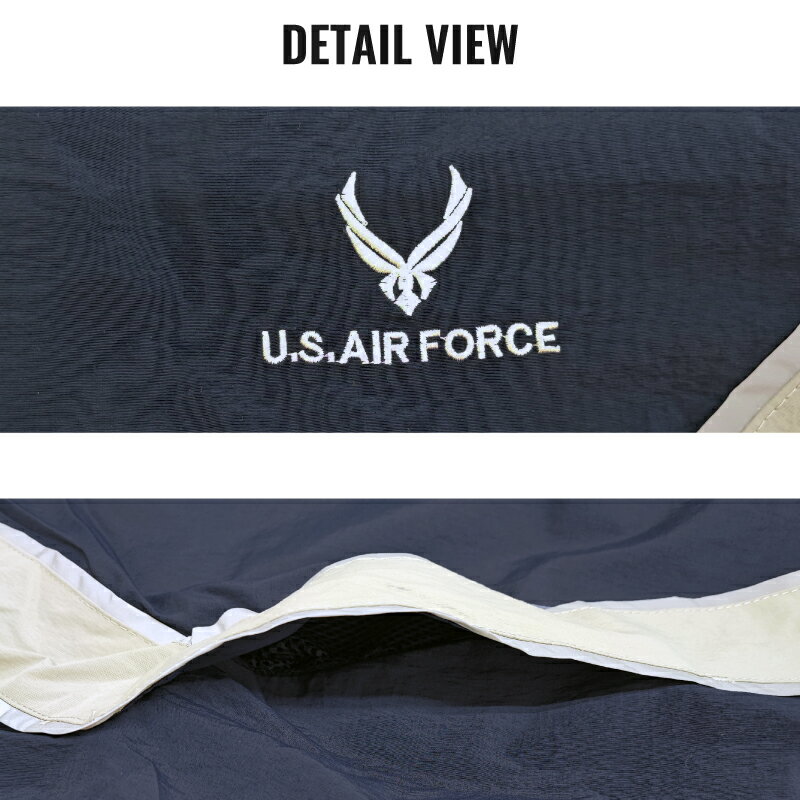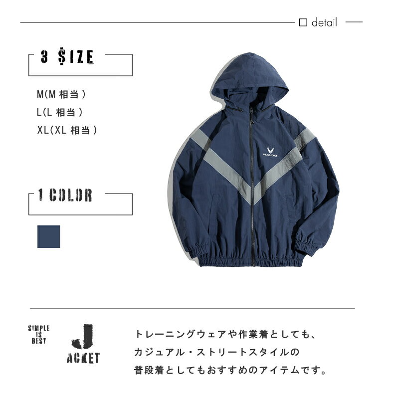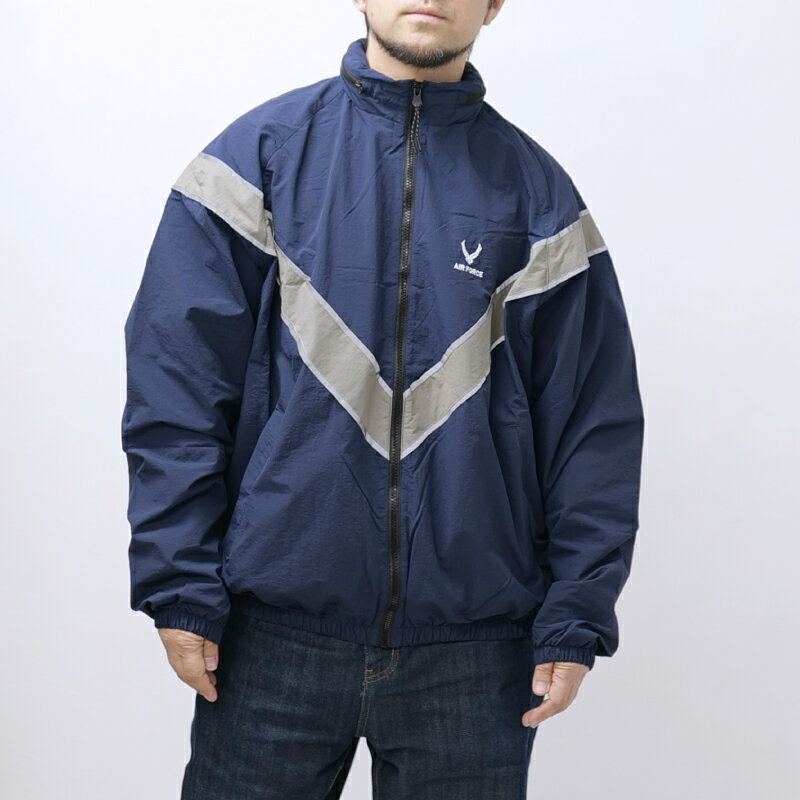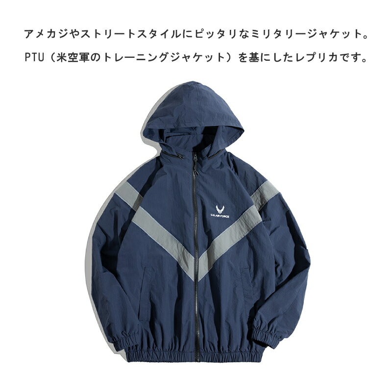 U.S.AIR FORCE PTU ミリタリージャケット メンズ レプリカ ウインドブレーカー フード 前開き ファスナー ネイビー [米空軍 USAF アウター トップス フィットネス ナイロンジャケット カジュアル ベーシック スタイリッシュ コンパクト 軽量 薄手 アウトドア スポーツ]