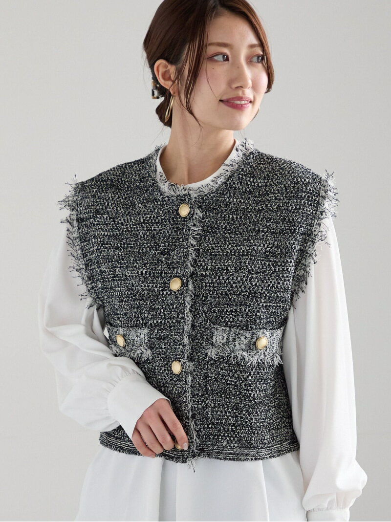 【SALE/30%OFF】カノコ金釦フリンジニットベスト Te chichi テチチ トップス ニット ブラック グレー【RBA_E】【送料無料】[Rakuten Fashion]