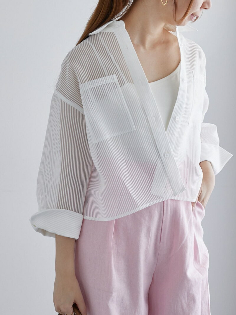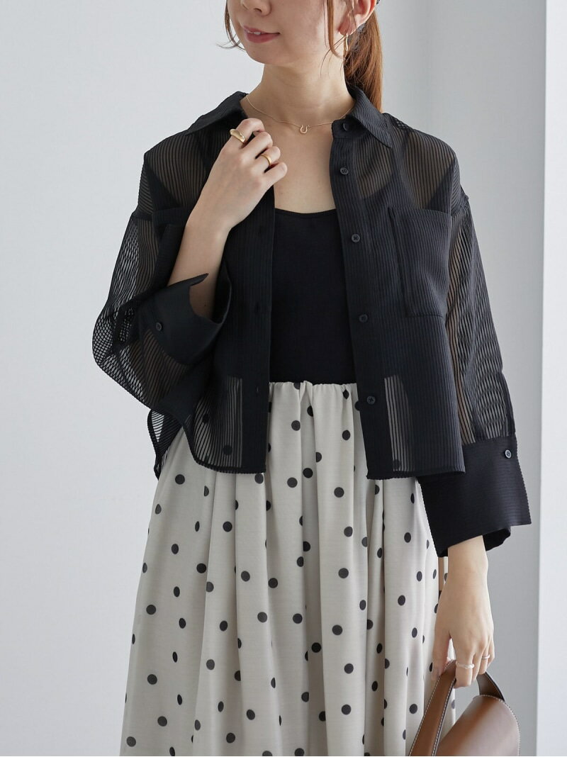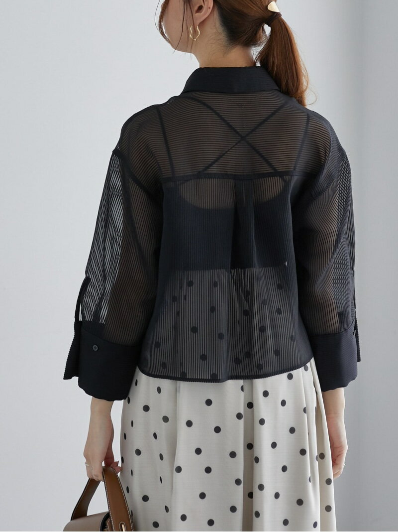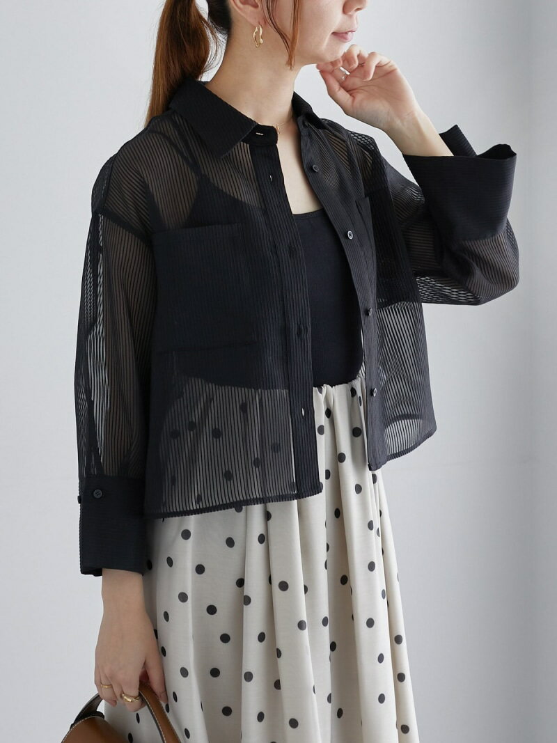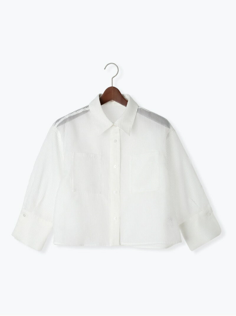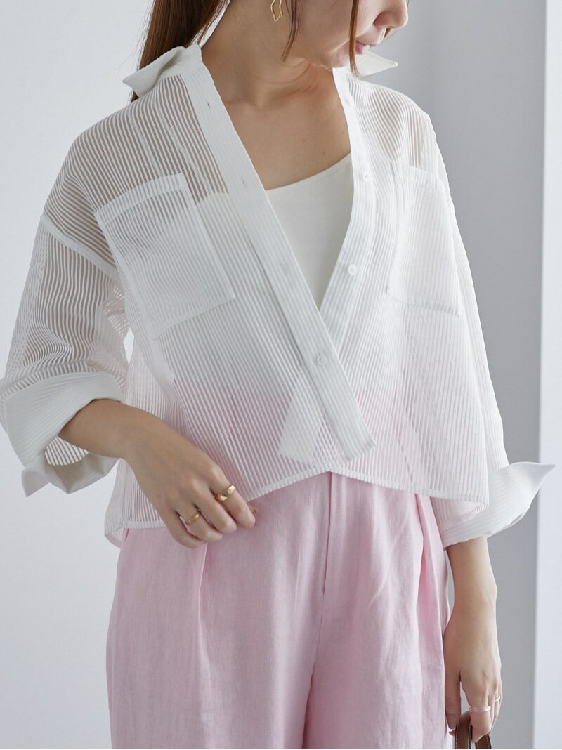 【SALE/30%OFF】シアーコードストライプシャツジャケット Te chichi テチチ ジャケット・アウター ノーカラージャケット ホワイト ブラック【RBA_E】【送料無料】[Rakuten Fashion]