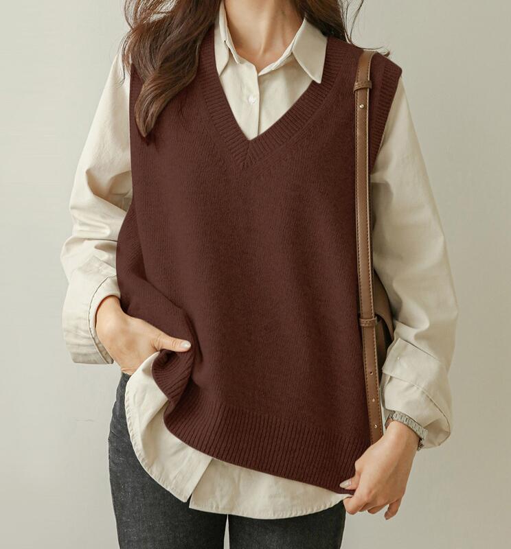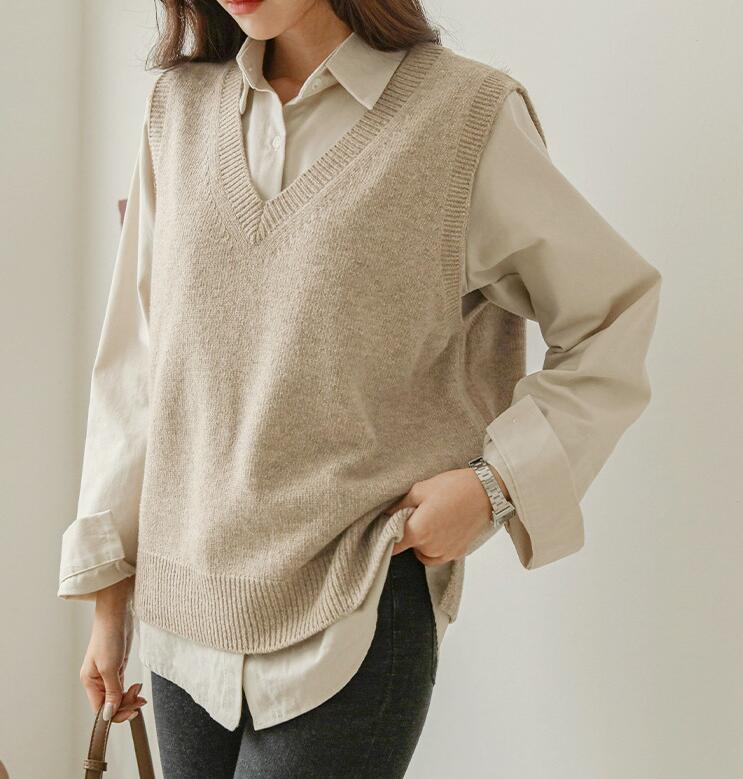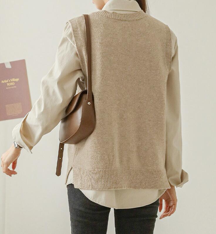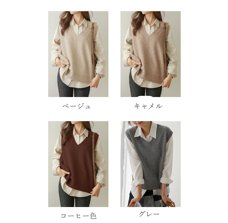 ベスト レディース 春夏 ニット vネック ニットベスト トップス ノースリーブ 重ね着風 韓国風 ニット レイヤード シンプル プルオーバー おしゃれ 無地 カジュアル 大人 可愛い ナチュラル 暖かい