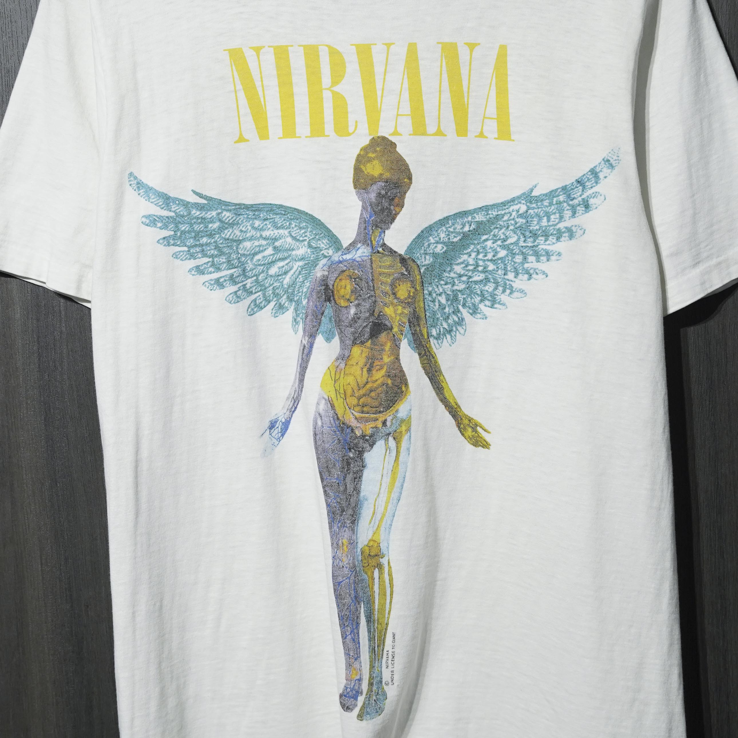 90s VINTAGE TEE Nirvana "In Utero Blue Wings " anvil L ニルヴァーナ 半袖 Tシャツ ホワイト