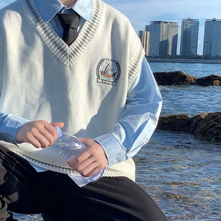ニットベスト メンズ Vネック 学院風 配色ライン チョッキ スクールベスト 男子 学生服 制服 中学生 高校生 スクールセーター ノースリーブ 通学 ゆったり カジュアル 春秋冬 コスプレ ストリート系 送料無料
