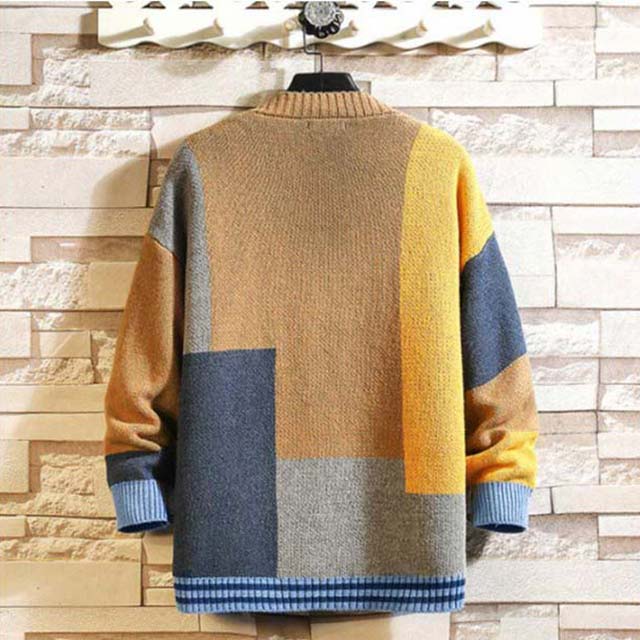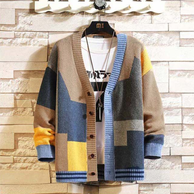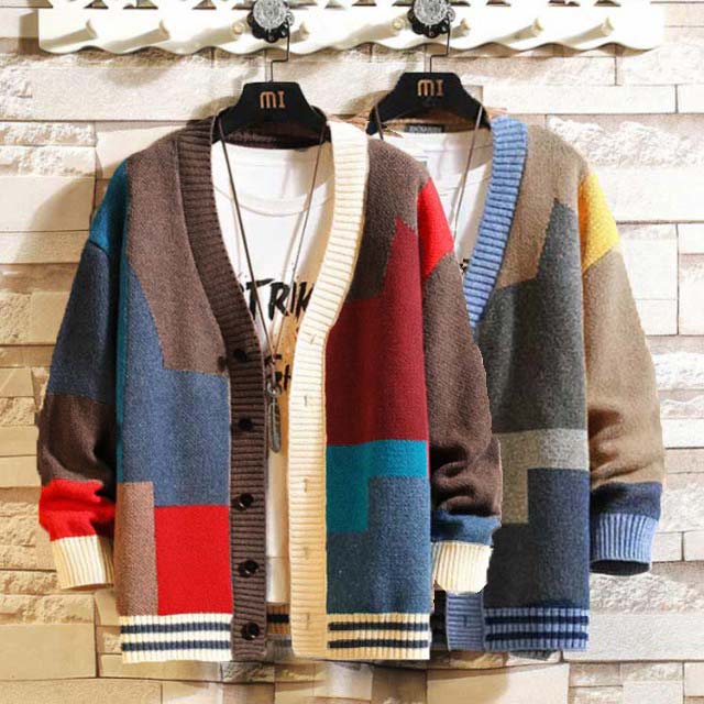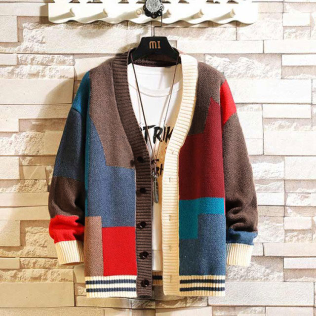 カーディガン メンズ カラフル ニットカーディガン Vネック 前開き 配色 カジュアル 春秋 アウター 大きいサイズ ストリート お出かけ 羽織り ゆったり お洒落 送料無料