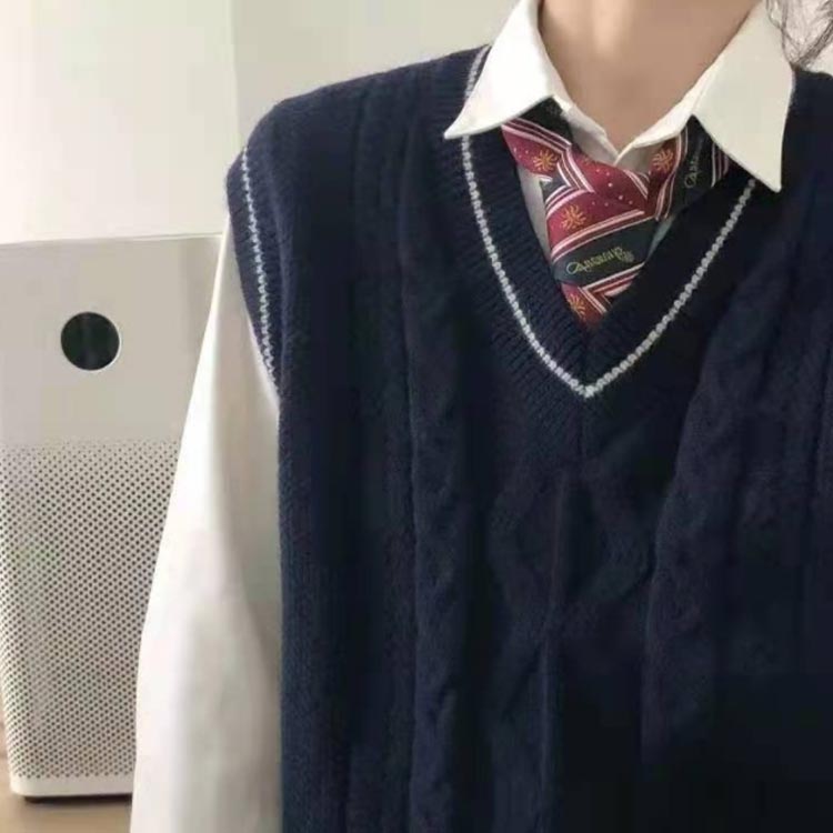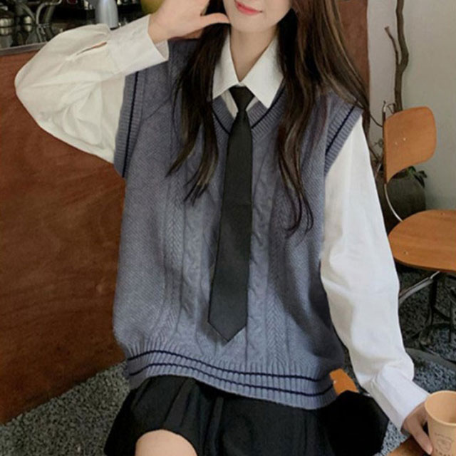 ニットベスト スクール ベスト 制服 Vネック ライン入り ケーブル編み 制服 ベスト コットン 女子高生 入学 通学 女子 中校生 高校生 学生服 春 夏 冬 レディース ニットベスト トップス ゆったり グレー ベージュ ネイビー 紺 【送料無料】