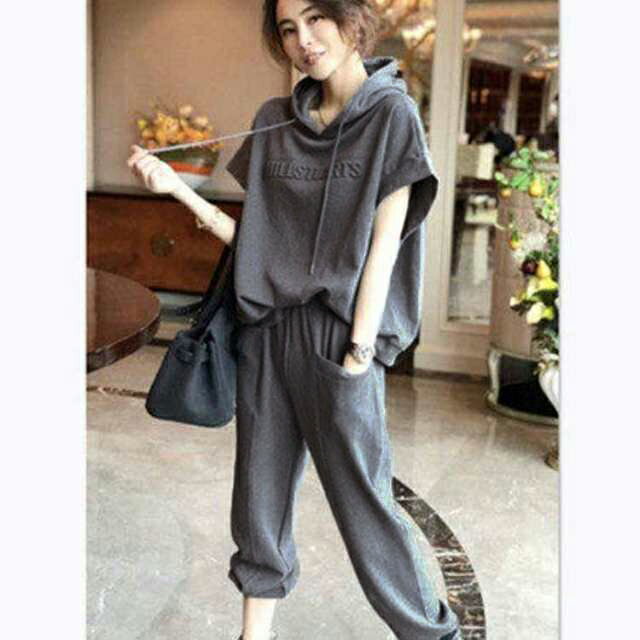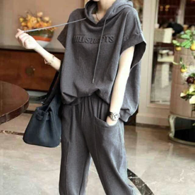 スウェット 上下セット 半袖 7分丈パンツ ジャージ レディース セットアップ トップス ゆったり 春 夏 秋 着瘦せ カジュアル フード付き 部屋着 パンツ 2点セット おしゃれ 着痩せ 大きいサイズ ジョガーパンツ ルームウェア 送料無料