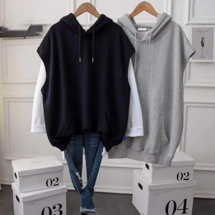 ノースリーブ フード付き パーカー ベスト レディース プルオーバー おしゃれ ゆったり 重ね着 レイヤード トップス お洒落 カジュアル 春 夏 秋 薄手 サマーベスト スウェット パーカーベスト グレー ホワイト ブラック 送料無料
