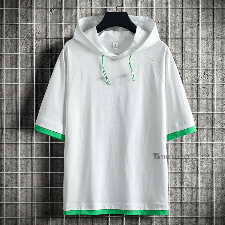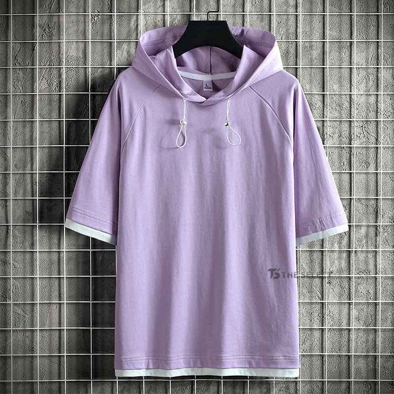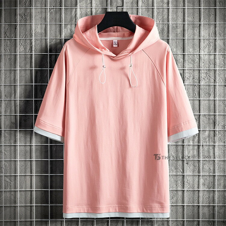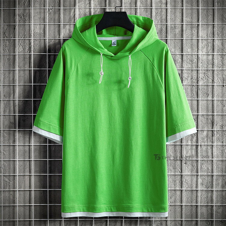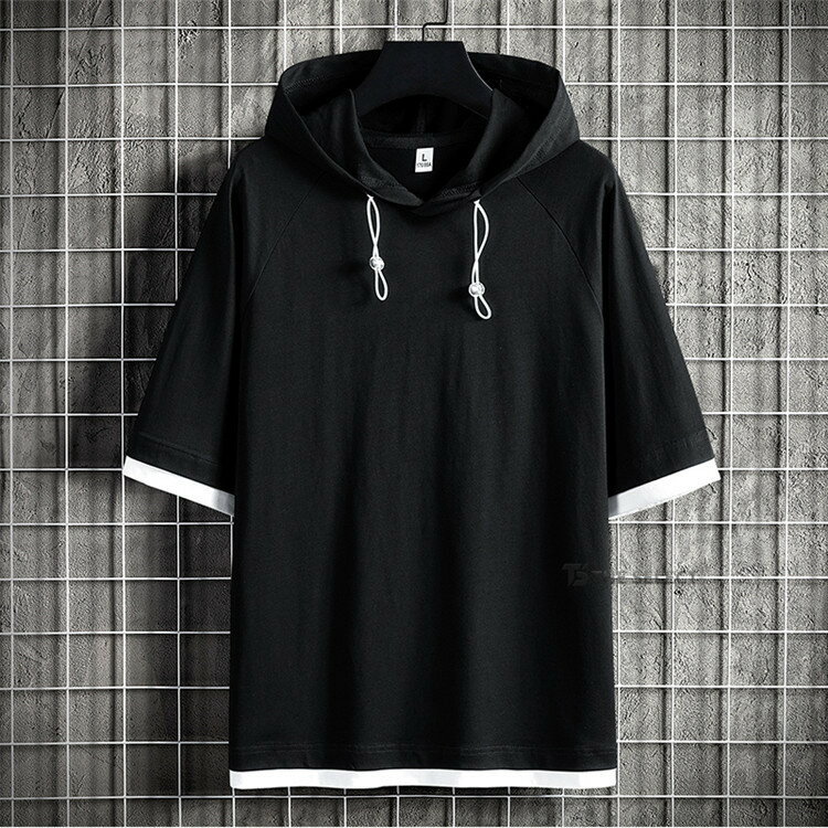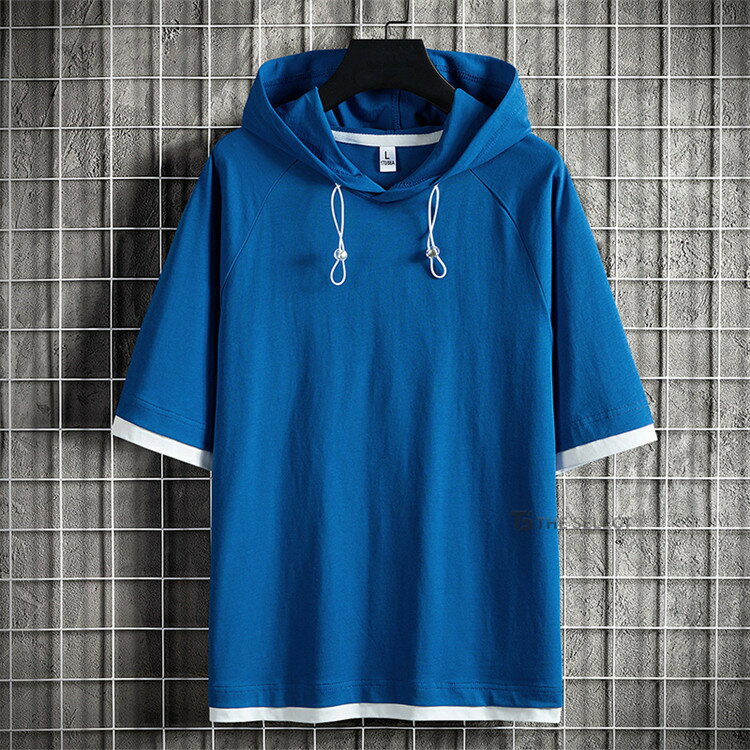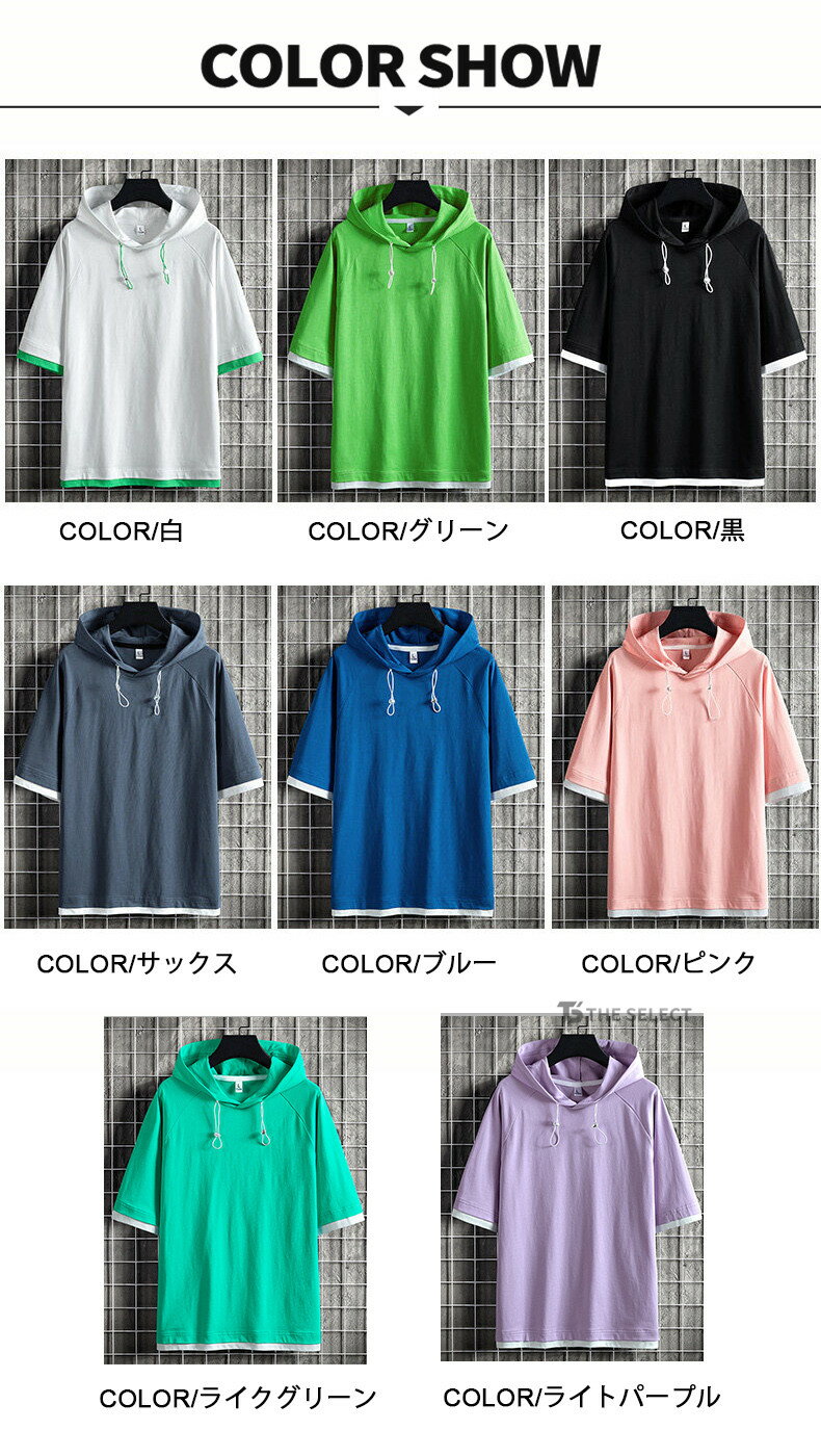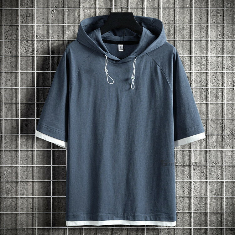 無地パーカー メンズ 半袖 パーカー トップス プルオーバー 夏 サマー 重ね着風 夏服 メンズ服 スポーツ お兄系 夏服 メンズファッション