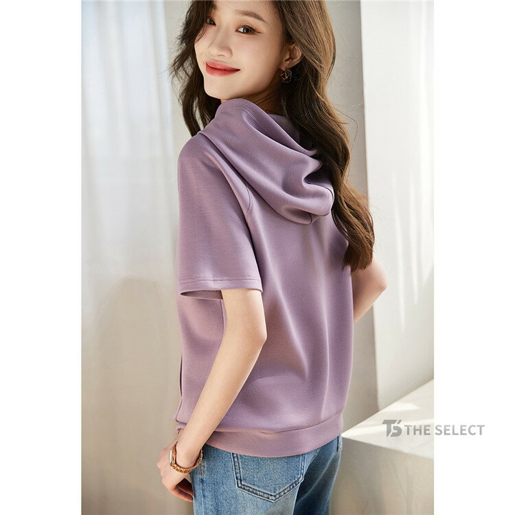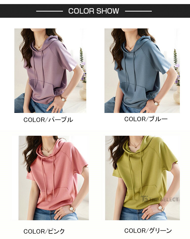 パーカー レディース 半袖 無地パーカー プルオーバー おしゃれ カットソー トップス 夏用パーカー 半袖パーカー 夏服 通勤 ルームウェア パーカ ゆったり フード付き 夏着 フェミニン 可愛い 大人 シンプル デイリー カジュアル ルーズフィット 新作