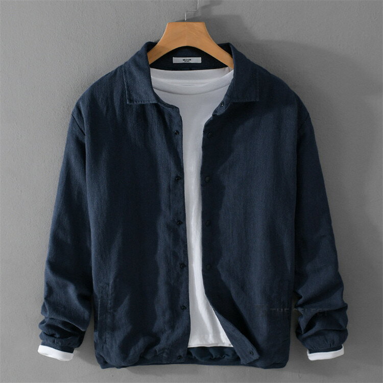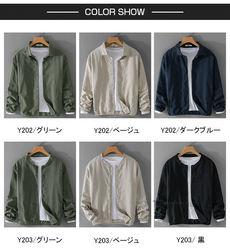 麻 ジャケット メンズ 綿麻 リネンジャケット MA1 スタジャン サマージャケット 長袖 スナップボタン 無地 春夏 春物 コーチジャケット リネンジャンパー アウター 折襟 シャツジャケット ビジネス 作業着 オフィス テレワーク コットンリネン