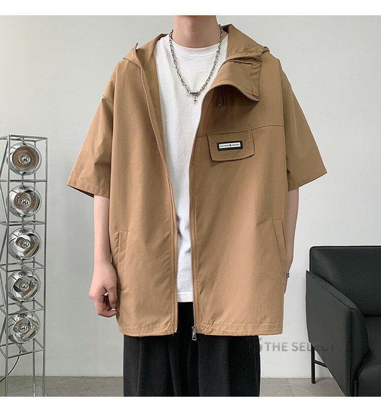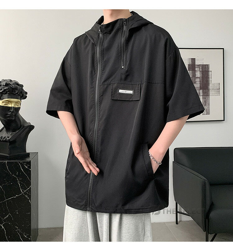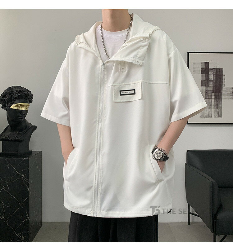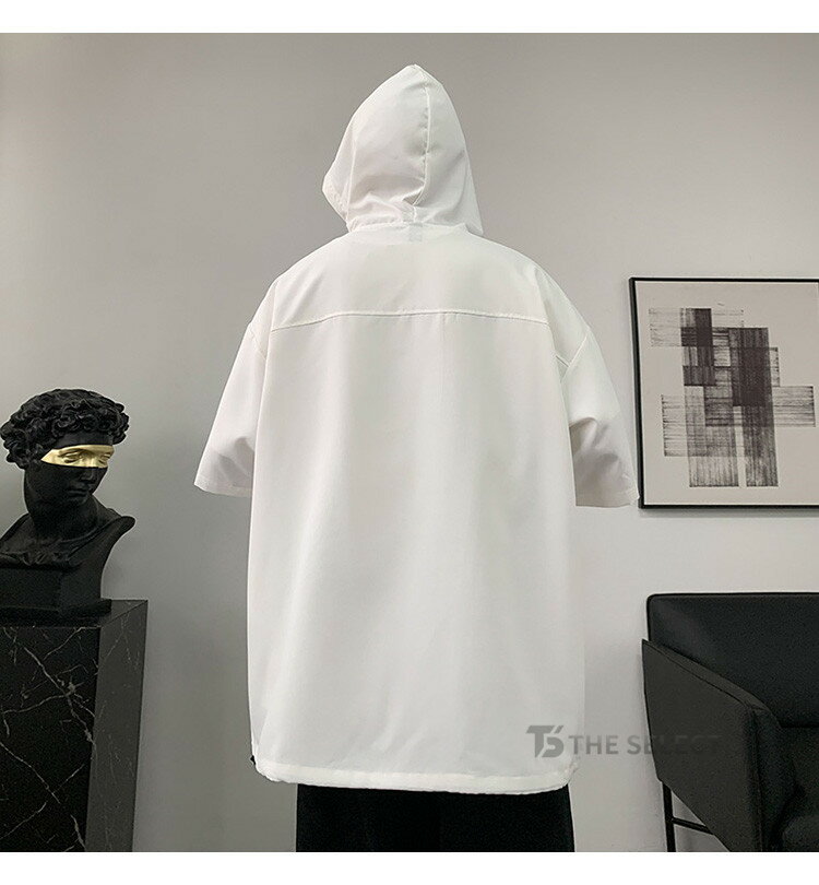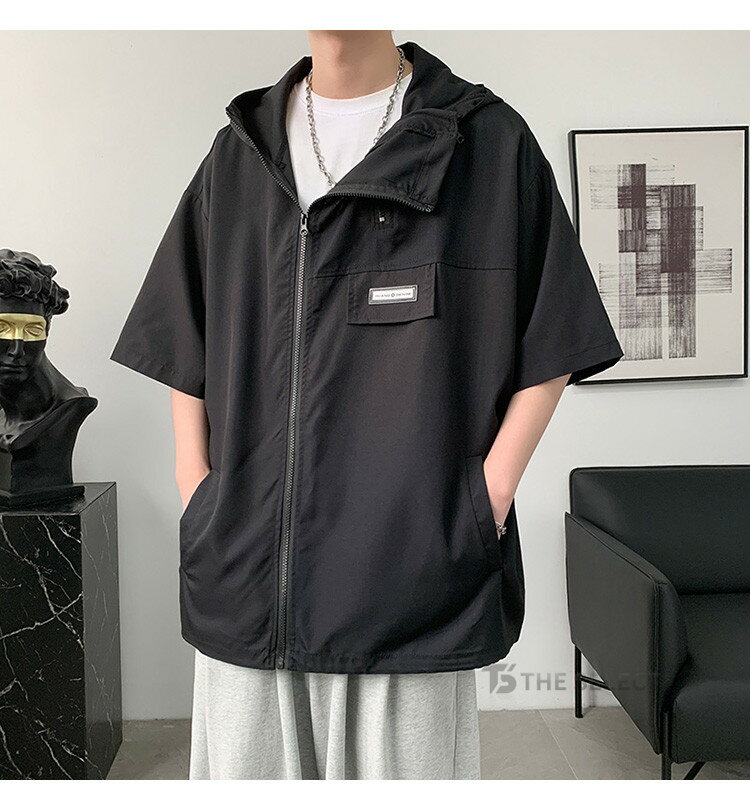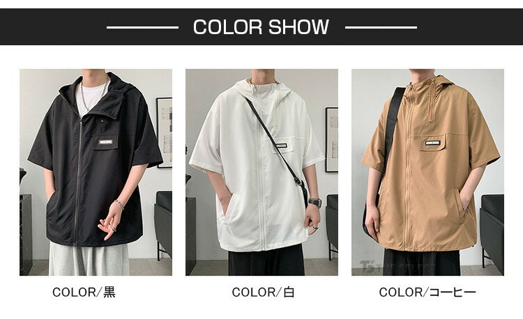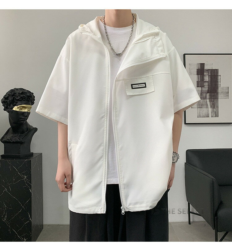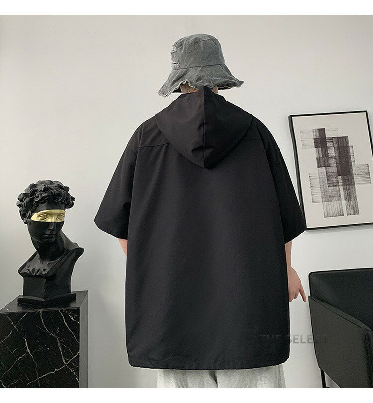 ジップアップ パーカー サマーパーカー メンズ カジュアルシャツ フード付きシャツ はおり UVカット ジップシャツ 夏 夏服 半袖 ハイネック トップス 無地 オーバーサイズ ビッグサイズ カジュアル キャンプ ゴルフ 通学 普段着 シャツジャケット 父の日 プレゼント
