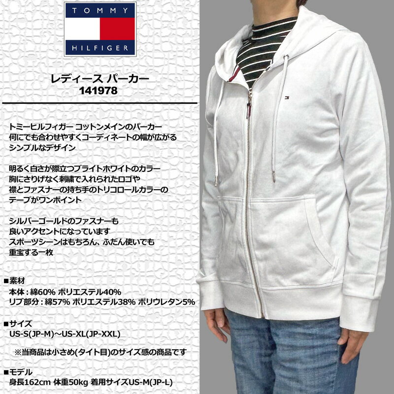 TOMMY HILFIGER トミーヒルフィガー レディース フルジップ パーカー 141978 ブライトホワイト 【新品】TCBR フーディー フード付き トップス レディースファッション ゴルフウェア スポーツウェア