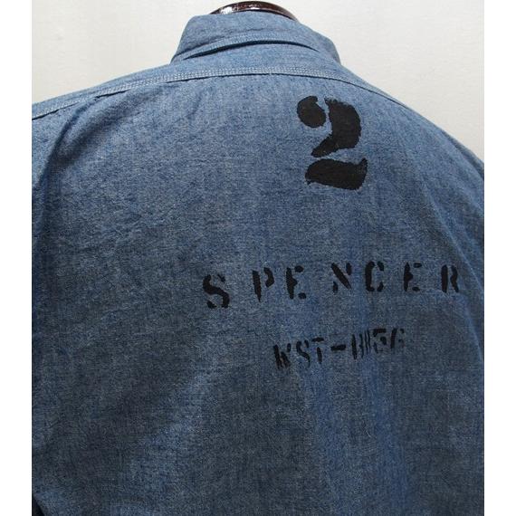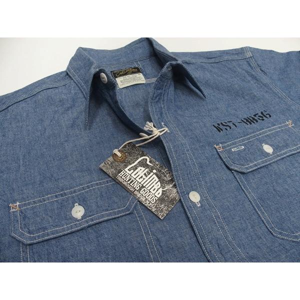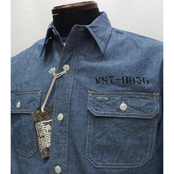 【2025春夏 新作】COLIMBO(コリンボ)[Hillhead Work Shirt/Custom-Mighty W]ヒルヘッド ワークシャツ シャンブレーシャツ プリント エルボパッチ 日本製
