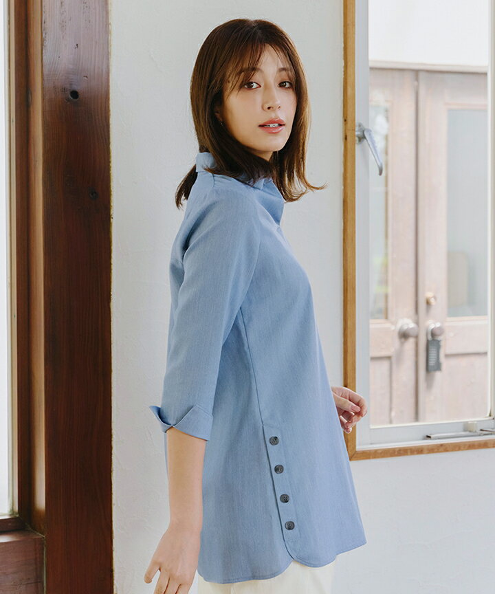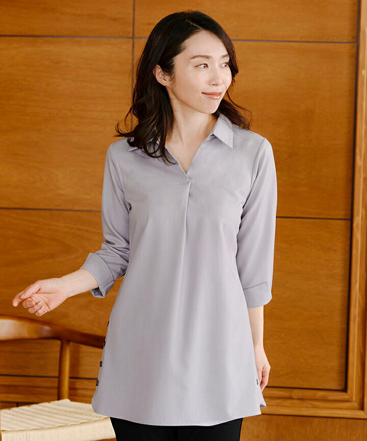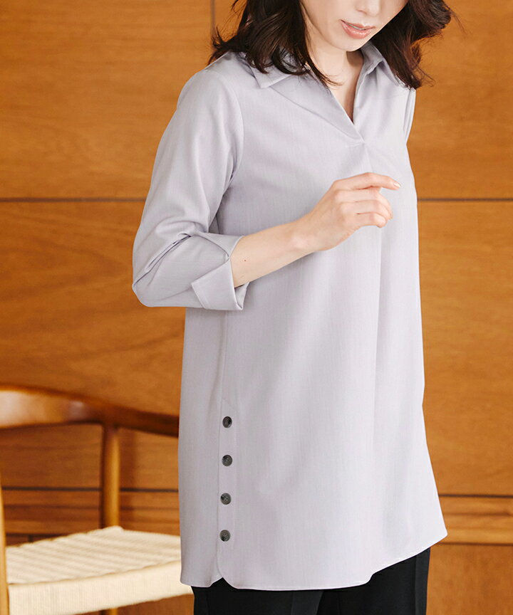 サイドボタンシャツチュニック ブラウス シャツ トップス きれいめ スキッパー オフィスカジュアル プルオーバー 大人ブラウス レディース ファッション 40代 30代 きれいめ 上品 洗える ウォッシャブル 体型カバー 大きいサイズ XL シワにならない イージーケア