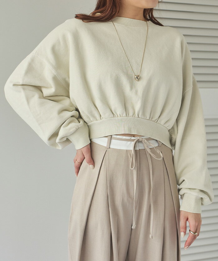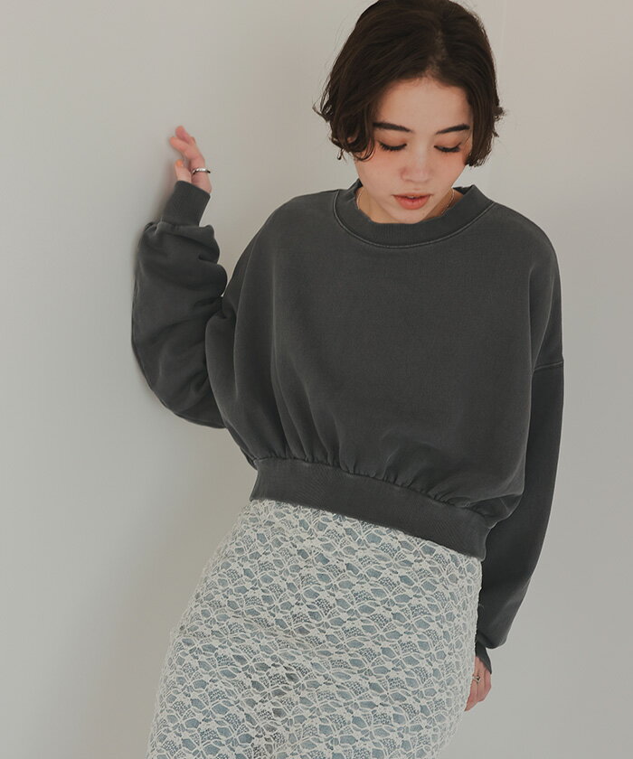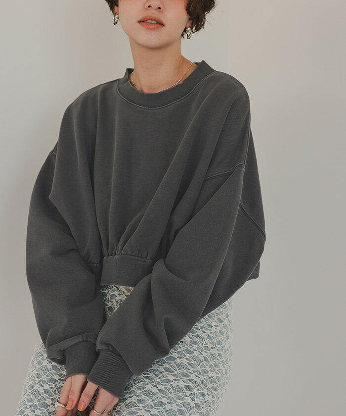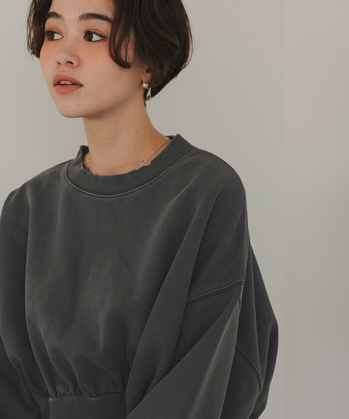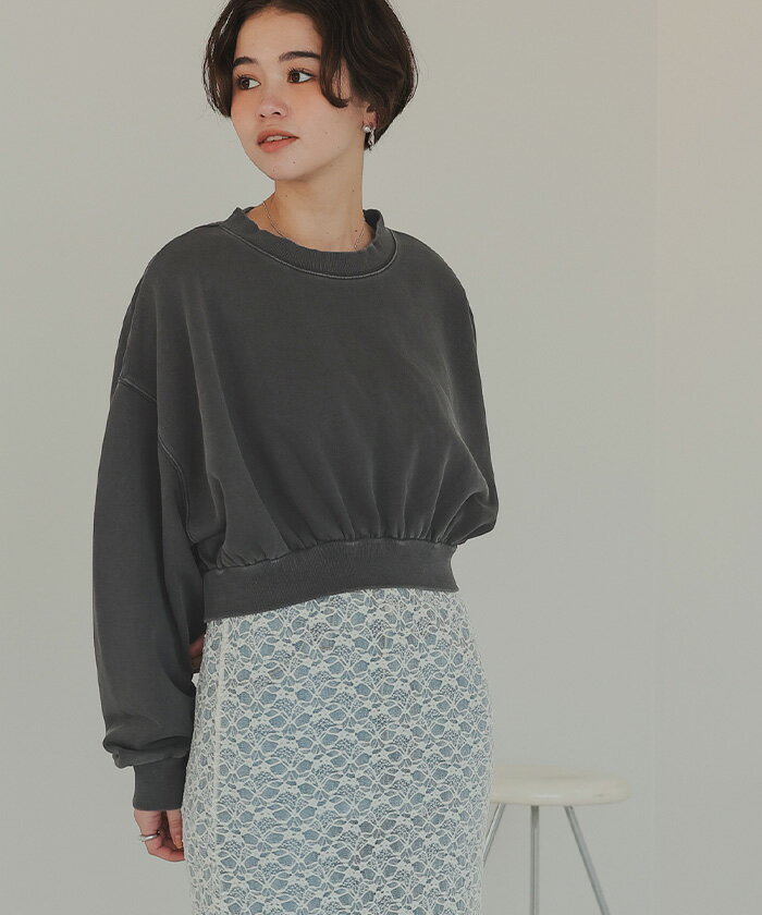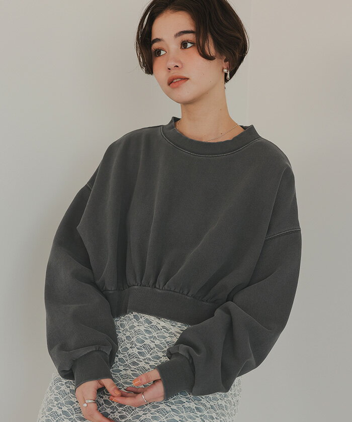 【店内全品30%OFFクーポン発行】3/5 23:59まで■ ピグメント裏毛カットソースウェット トップス レディース カットソー スウェット トレーナー クルーネック 長袖 ショート丈 クロップド丈 リブ カジュアル シンプル