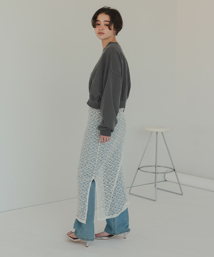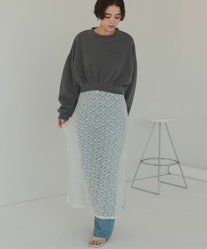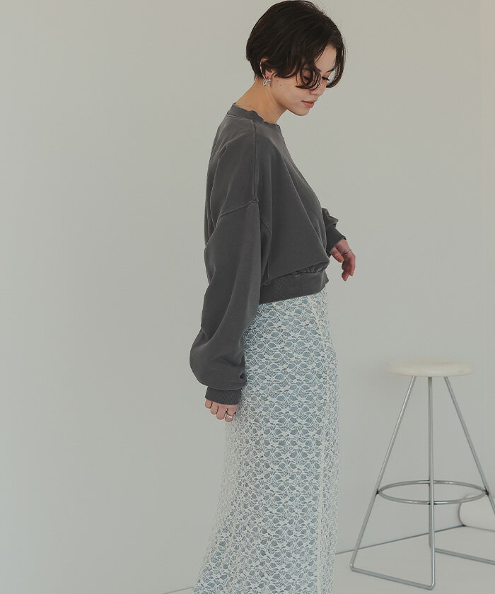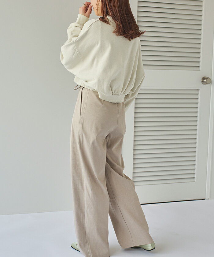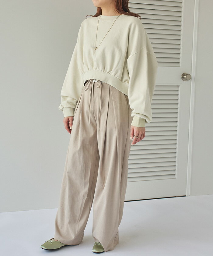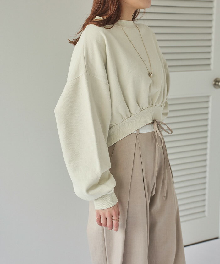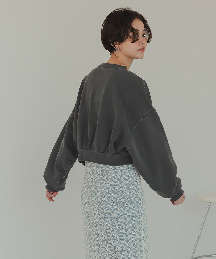 【店内全品30%OFFクーポン発行】3/5 23:59まで■ ピグメント裏毛カットソースウェット トップス レディース カットソー スウェット トレーナー クルーネック 長袖 ショート丈 クロップド丈 リブ カジュアル シンプル