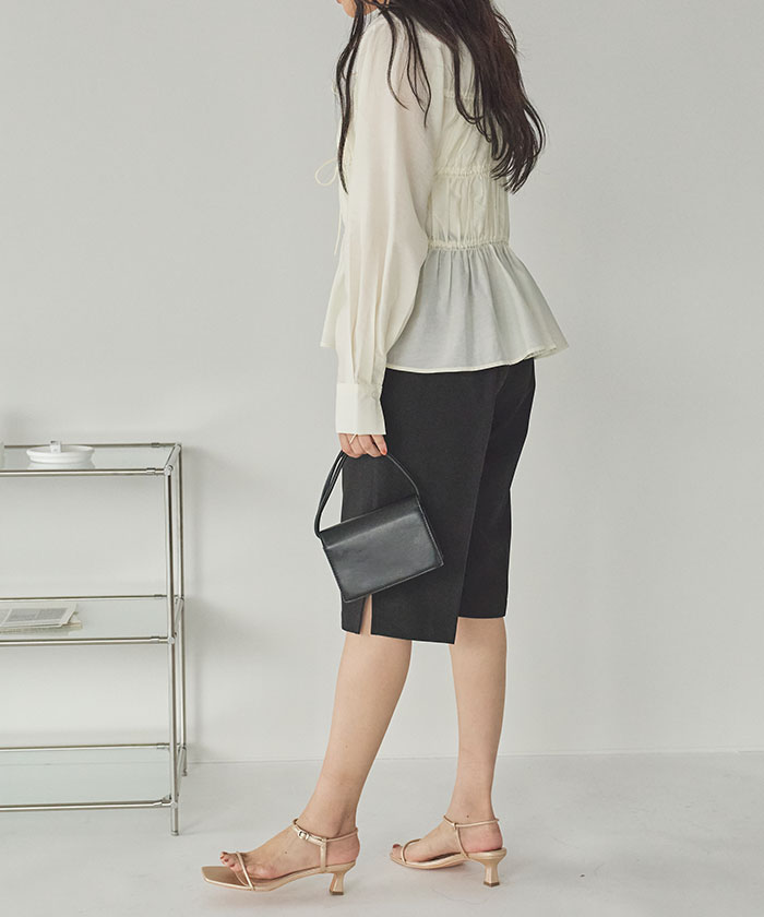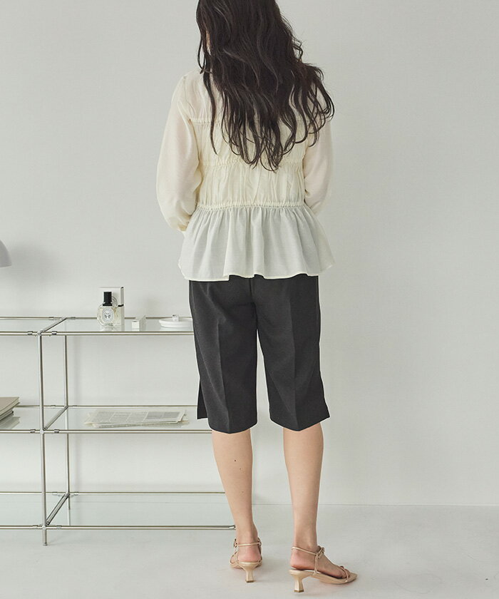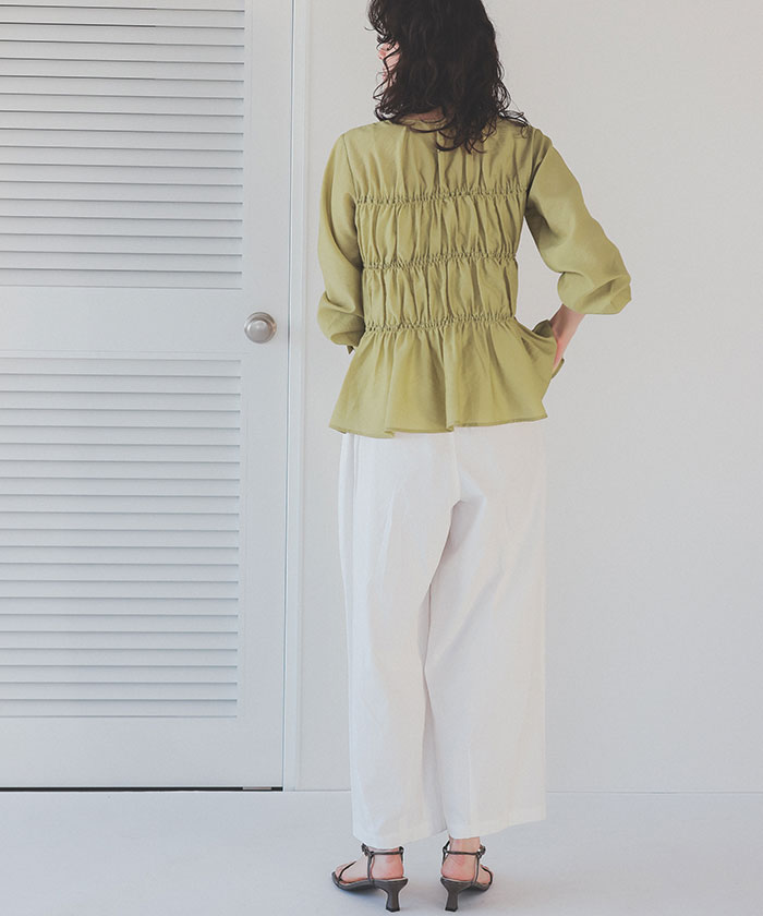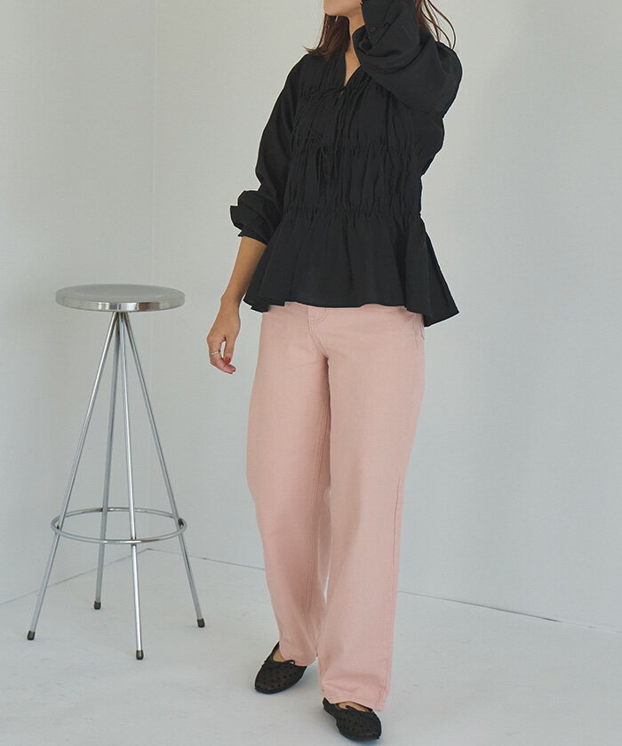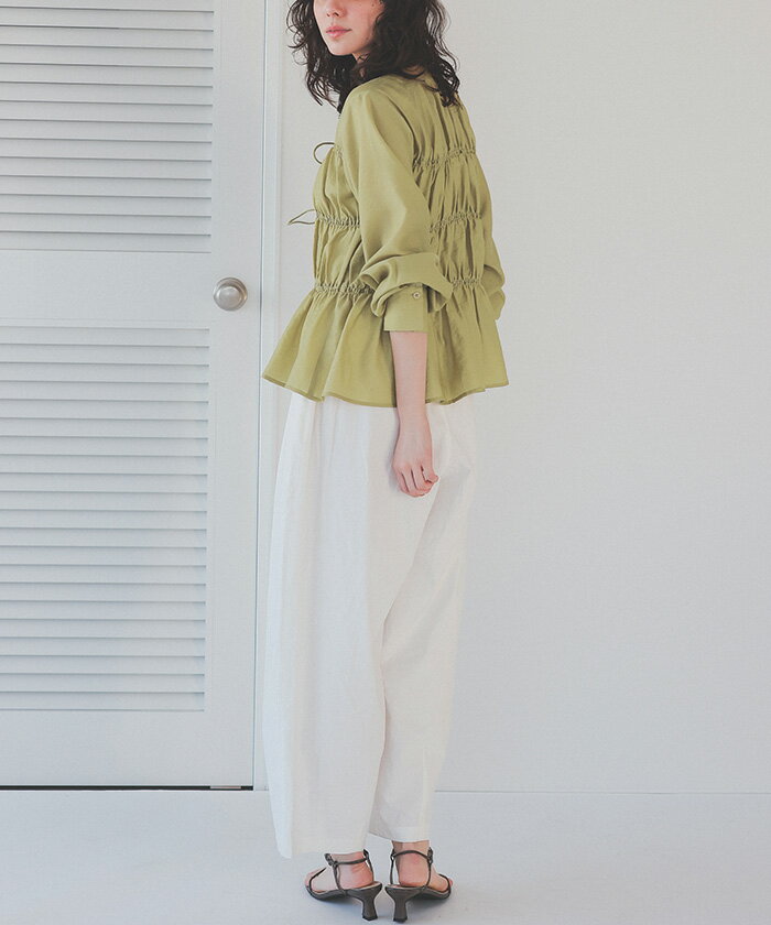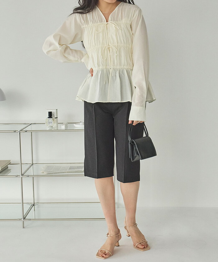 【店内全品20%offクーポン】2/23 1:59まで■ シャーリングギャザーリボンブラウス トップス レディース シャツ ブラウス リボン シャーリング 大人可愛い 羽織り ギャザー気映え トレンド