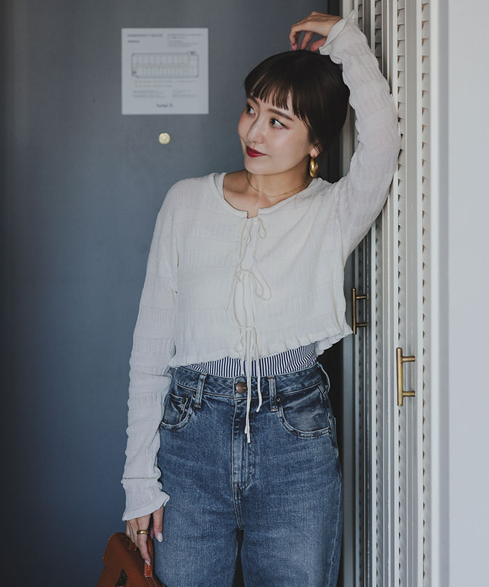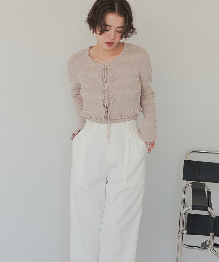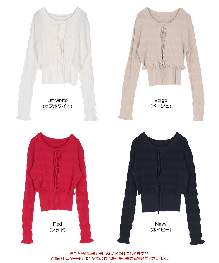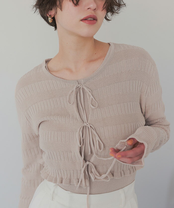 リボンデザインカーディガン/ノースリーブニットセット トップス レディース ニット カーディガン ノースリ 大人可愛い シンプル レイヤード トレンド