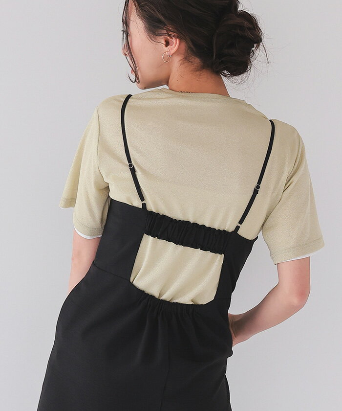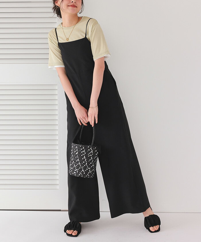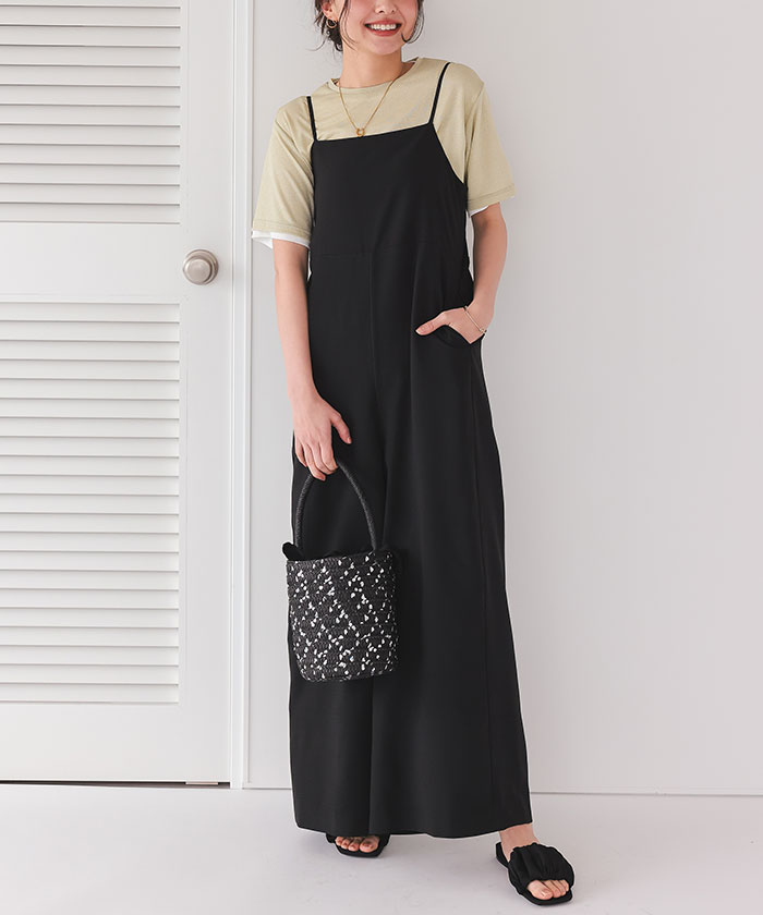 バックデザインルーズキャミソールオールインワン オールインワン レディース サロペット アジャスター付き ウエストゴム トレンド 大人可愛い