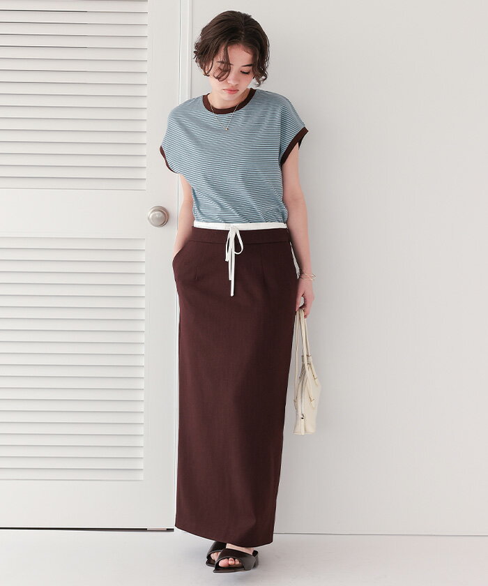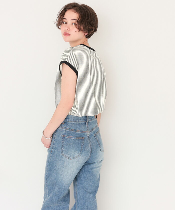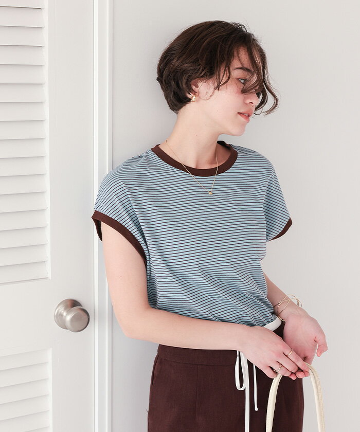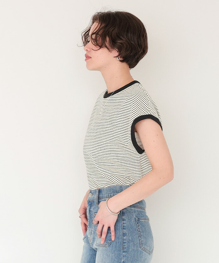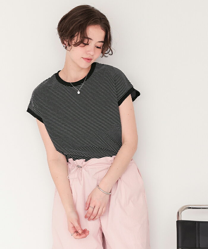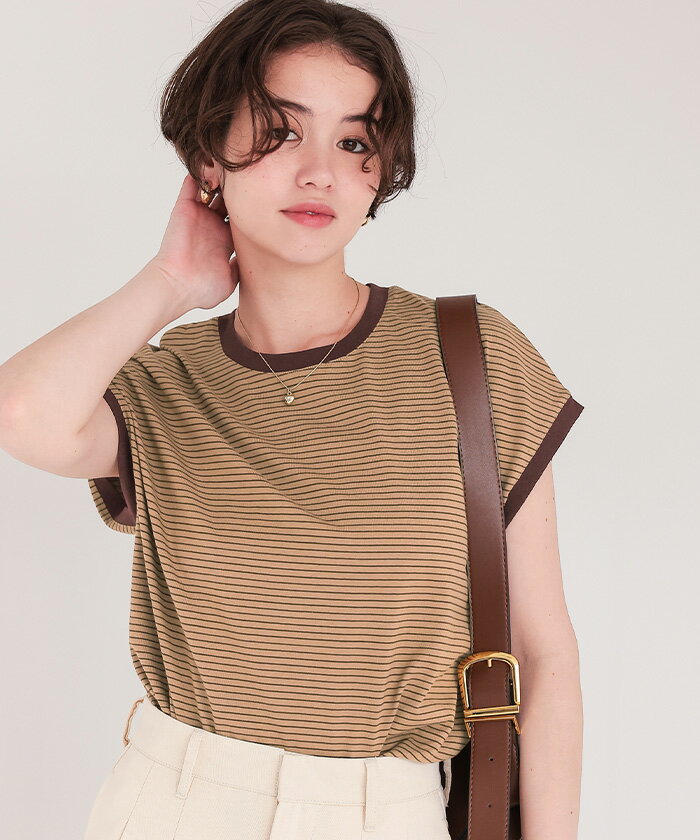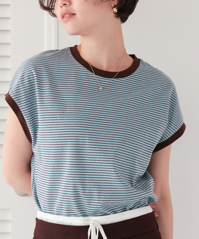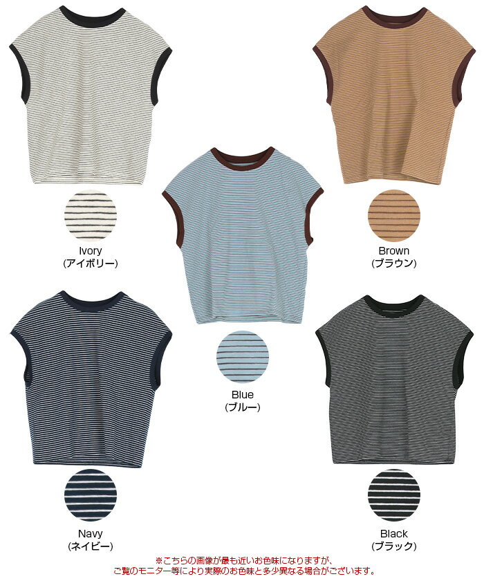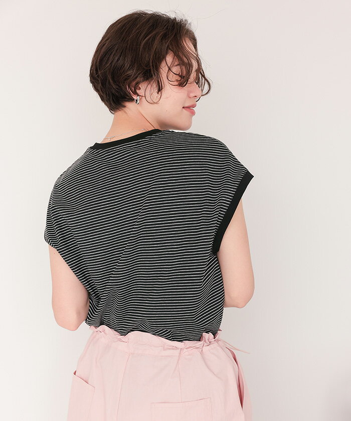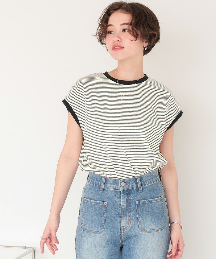 【店内全品20%OFFクーポン】4/27 9:59まで■ボーダーリンガーTシャツ トップス レディース カットソー クルーネック フレンチスリーブ ノースリーブ バイカラー ボーダー 柄 カジュアル【メール便可/60】