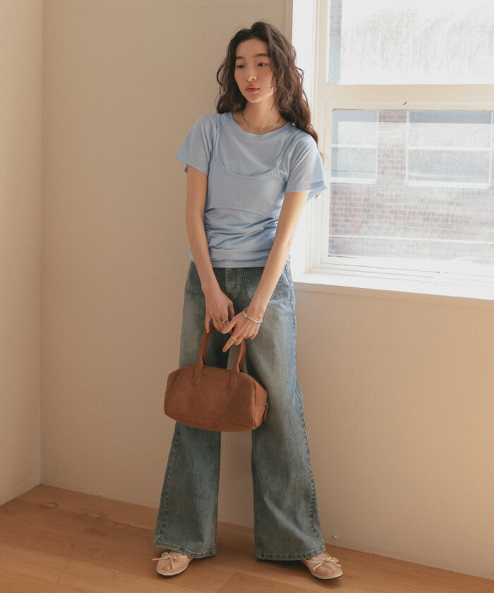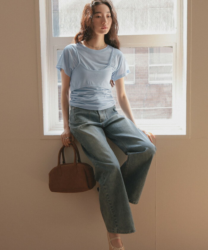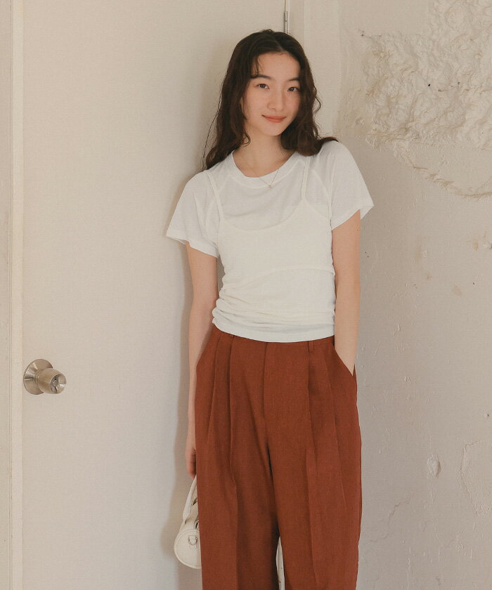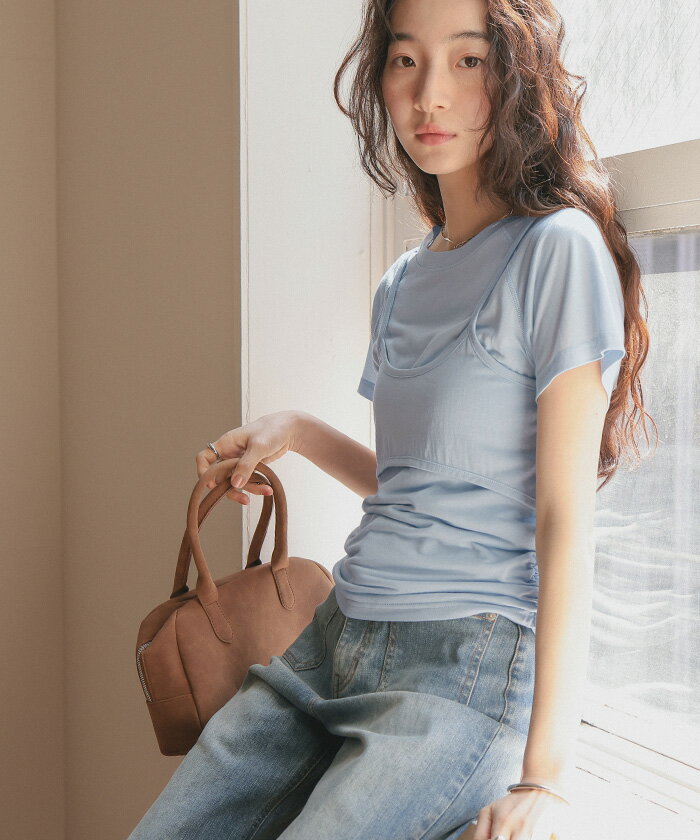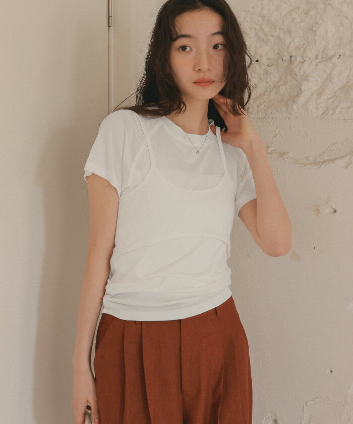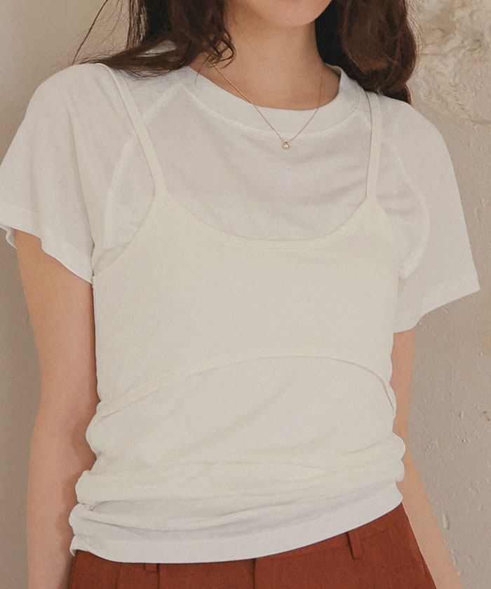 【店内全品20%OFFクーポン】4/27 9:59まで■レイヤードキャミソールセットTシャツ トップス レディース カットソー 半袖 キャミソール レイヤード 薄手 シンプル【メール便可/80】