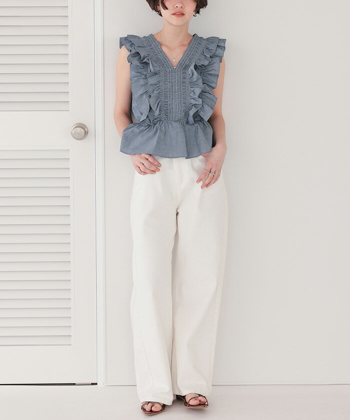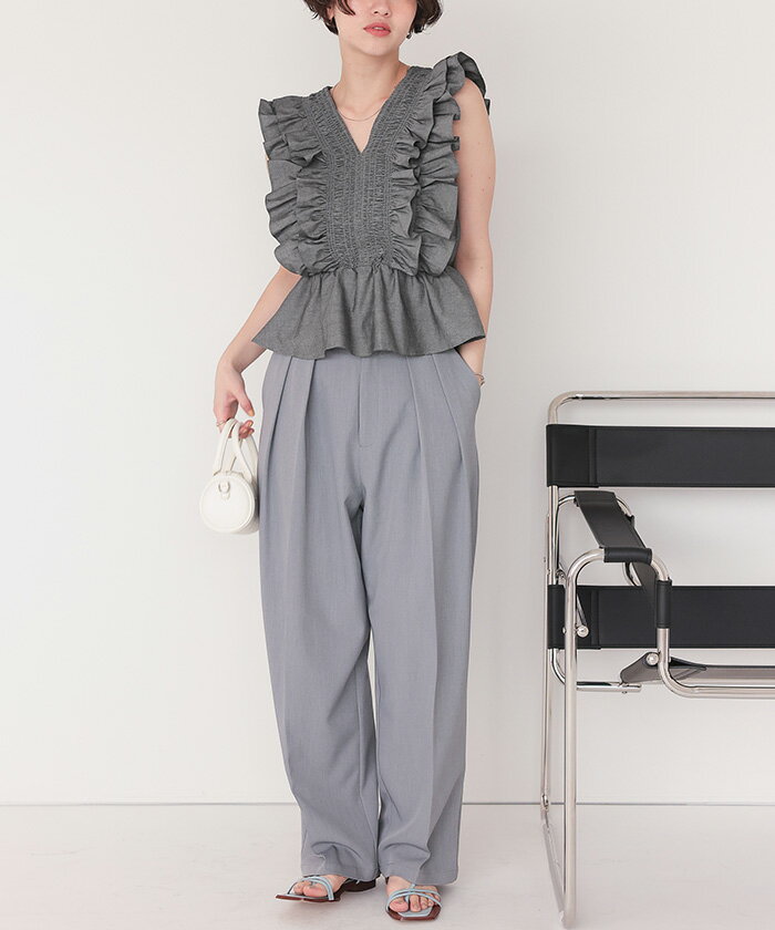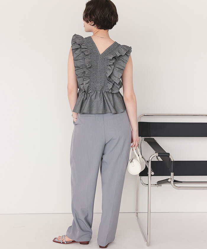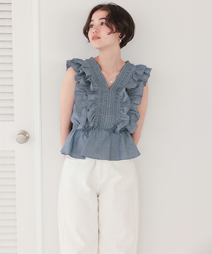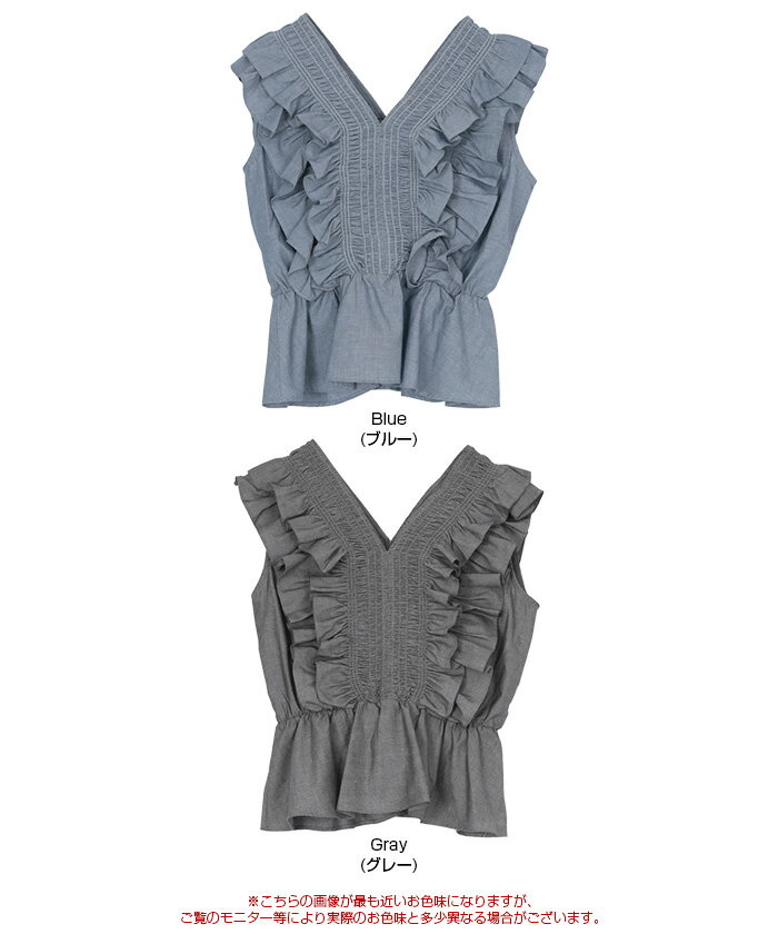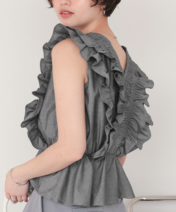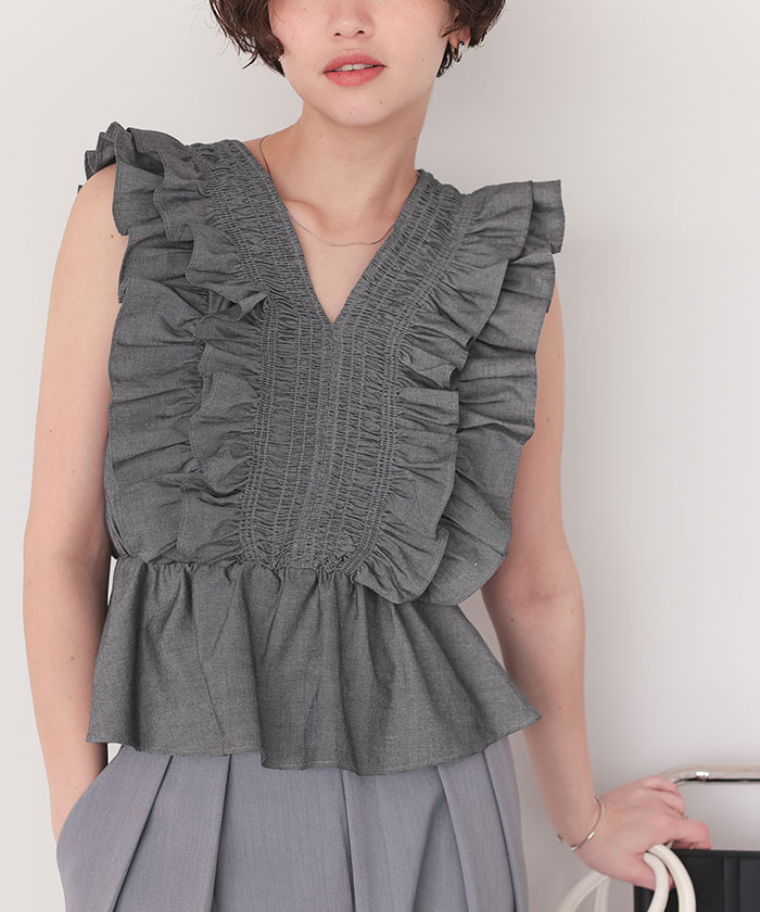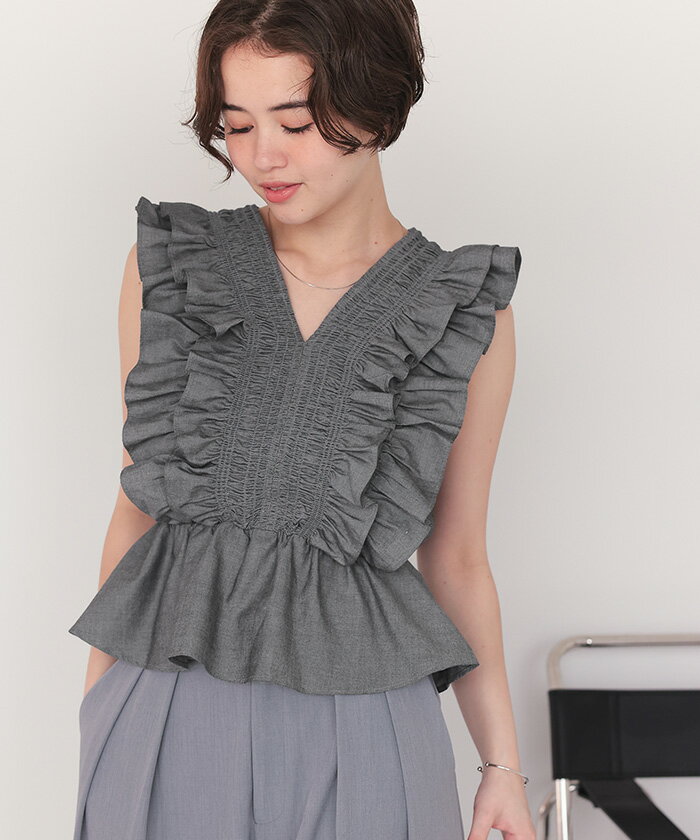 【新作24h限定10%OFFクーポン発行】4/29 10:59まで■シャーリングフリルノースリーブブラウス トップス レディース ブラウス シャツ フリル ノースリーブ ペプラム 大人可愛い 大人カジュアル