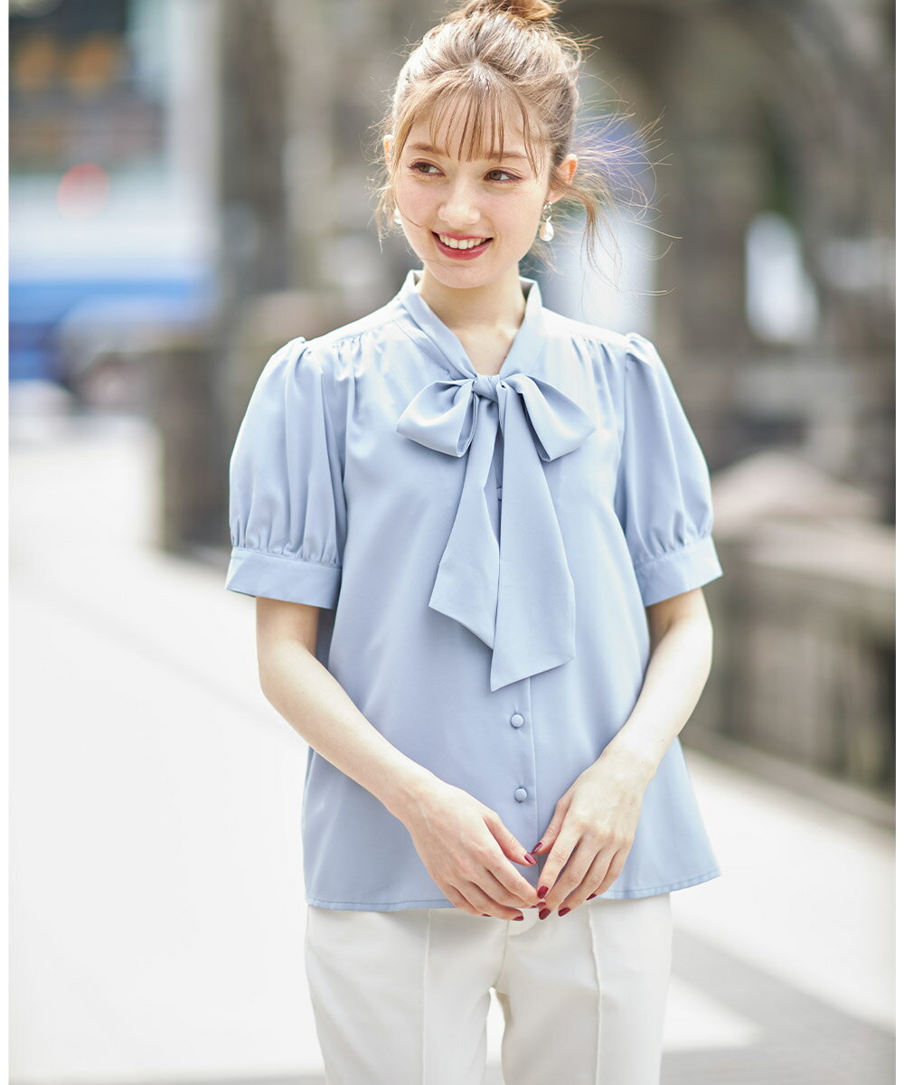 レディな気品たっぷり♪好感度上昇ボウタイりぼん半袖ブラウス【vinorte ヴィノート】tocco closet(トッコクローゼット)※オフホワイト ピンク ブルー ベージュ