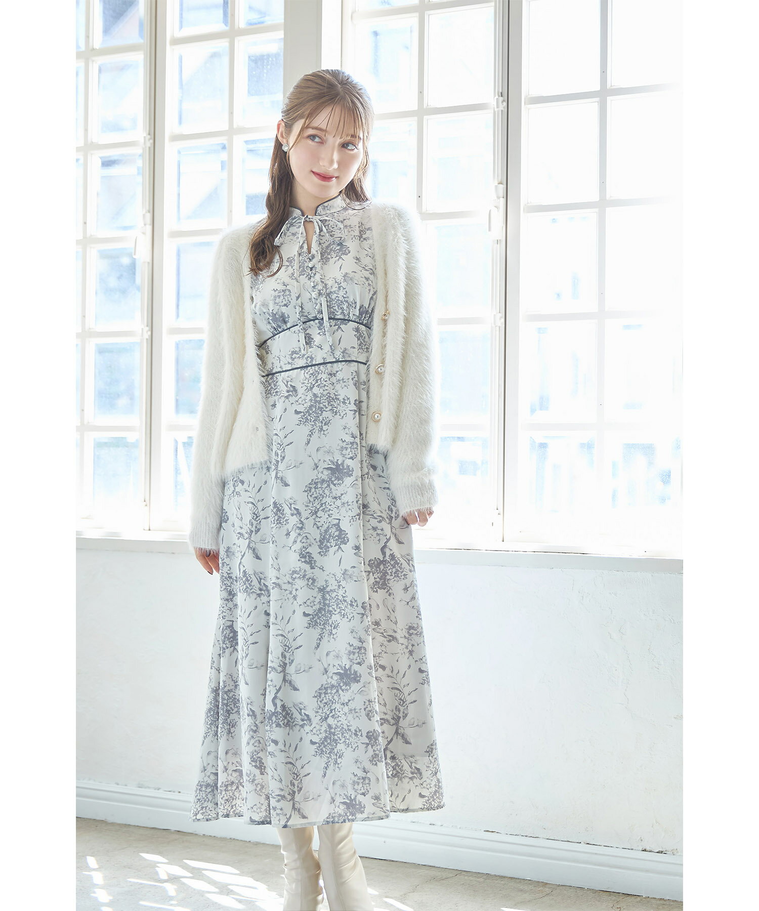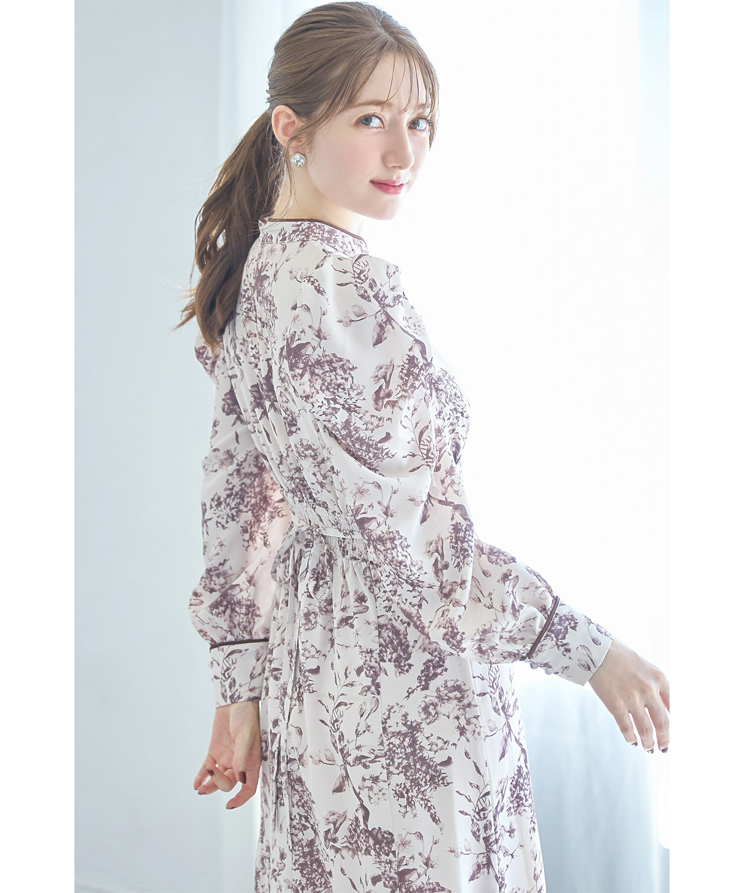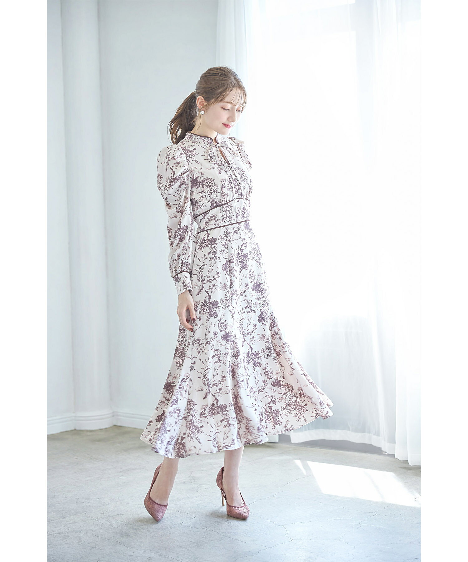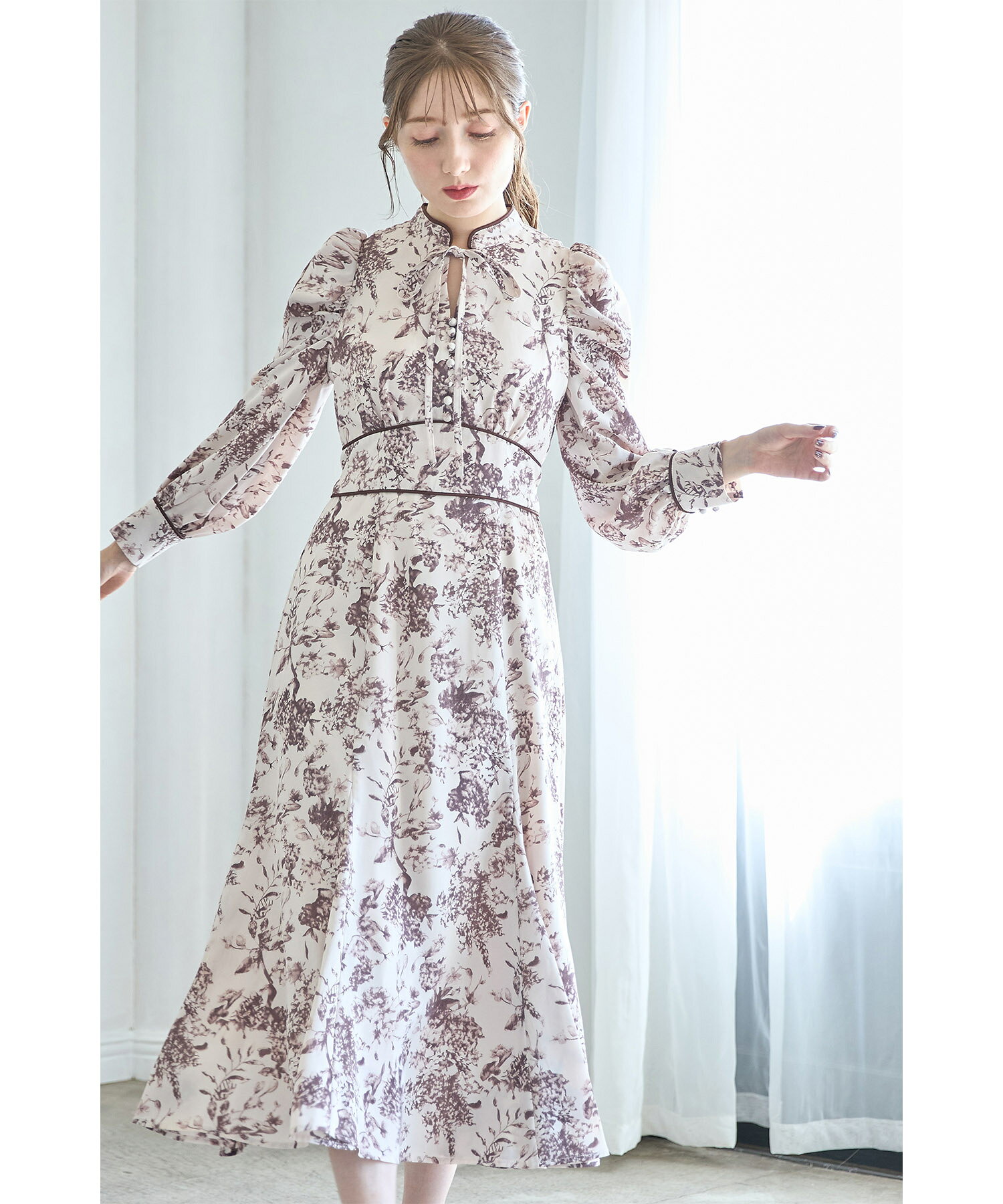りぼん付きスタンドカラークラシカルフラワープリントマーメイドワンピース【refos レフォス】tocco closet(トッコクローゼット) ピンク アイスグレー 商品番号:186-179461