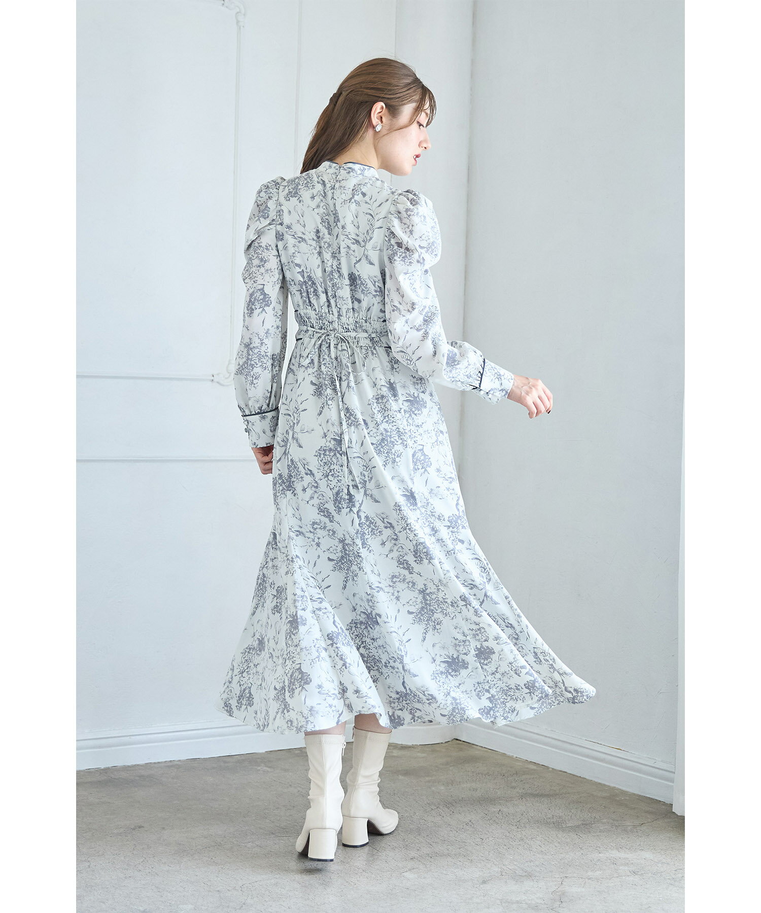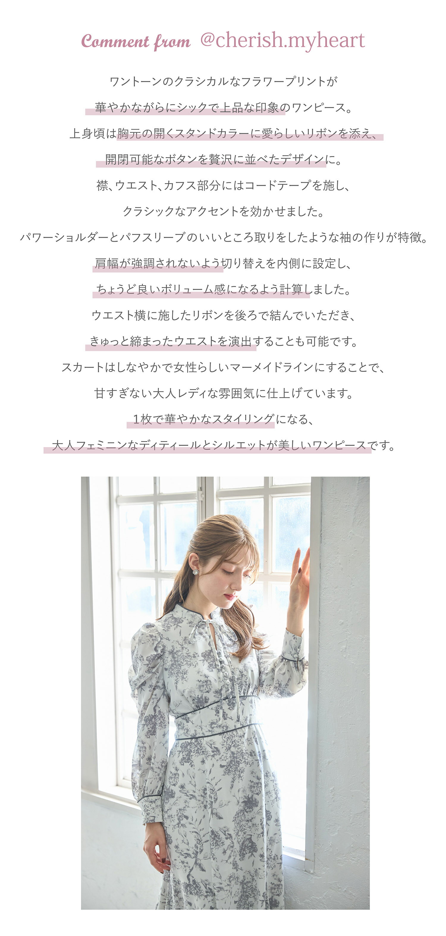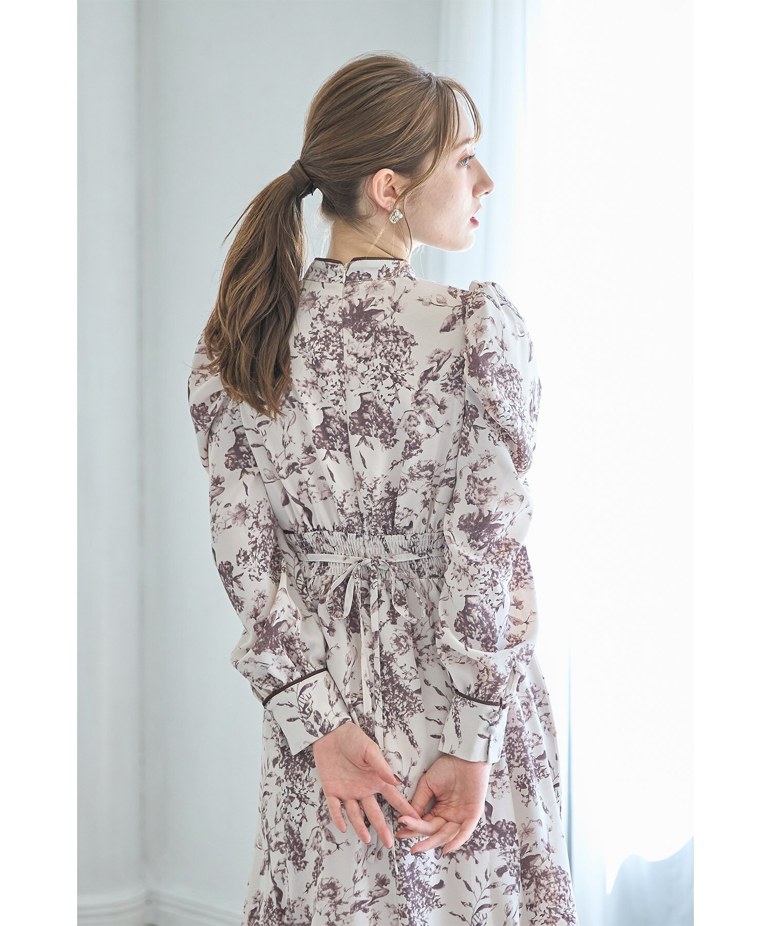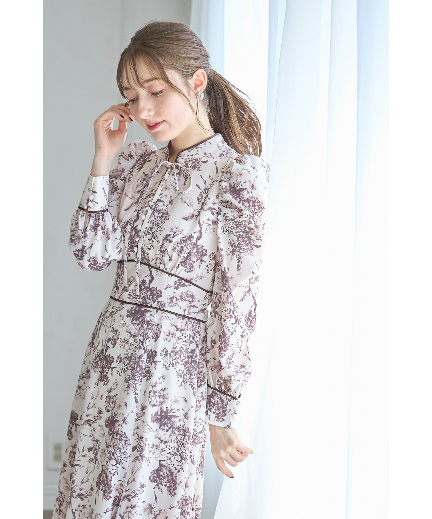 りぼん付きスタンドカラークラシカルフラワープリントマーメイドワンピース【refos レフォス】tocco closet(トッコクローゼット) ピンク アイスグレー 商品番号:186-179461
