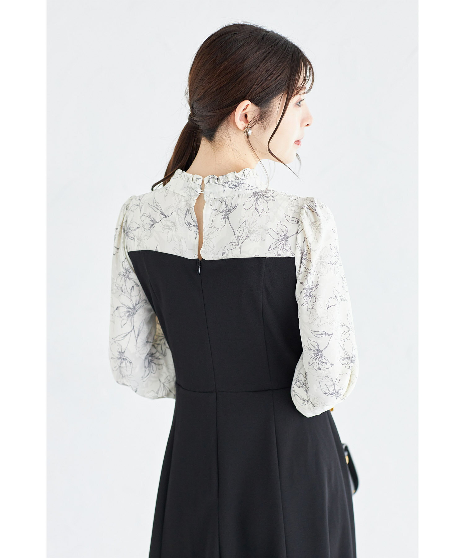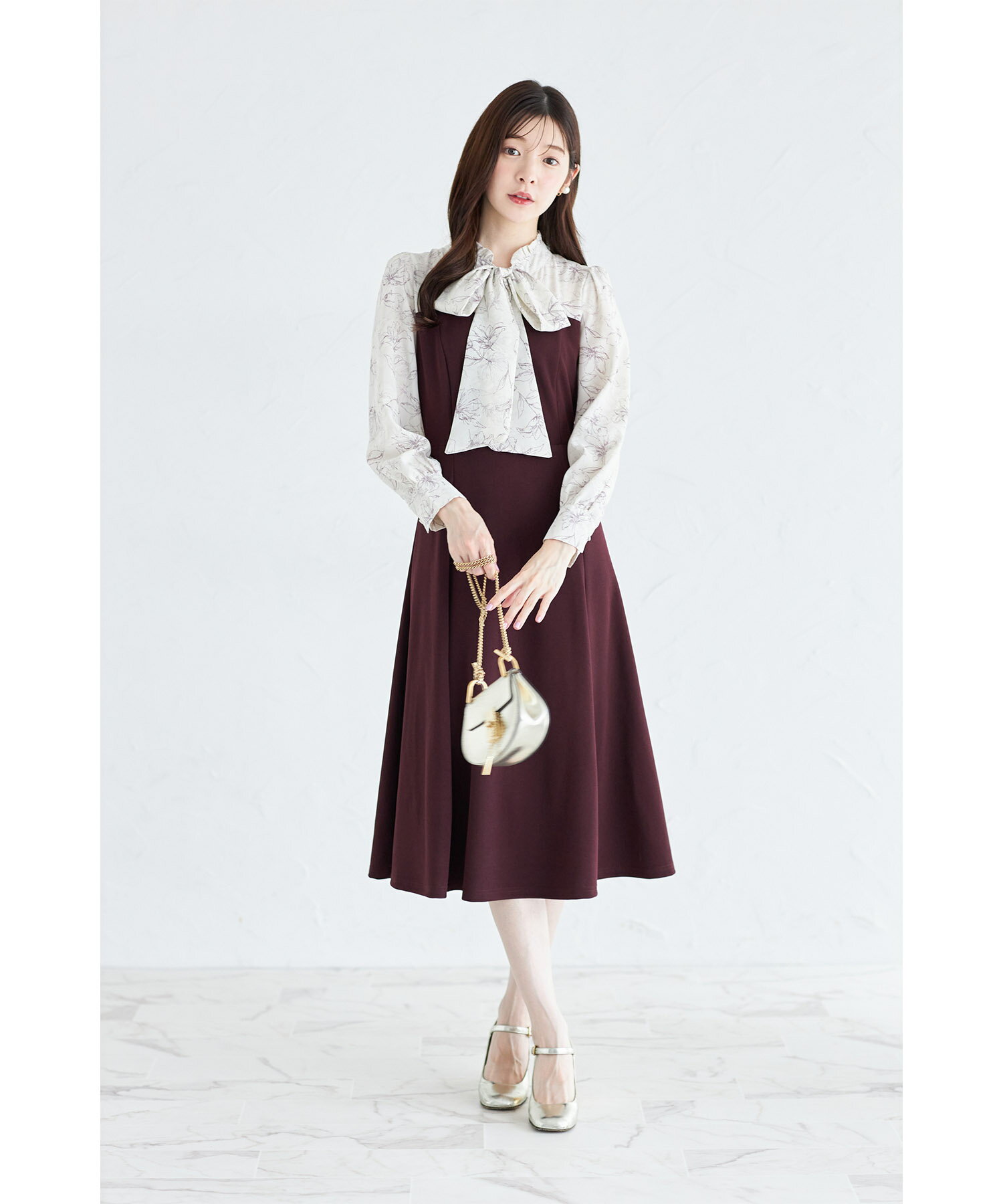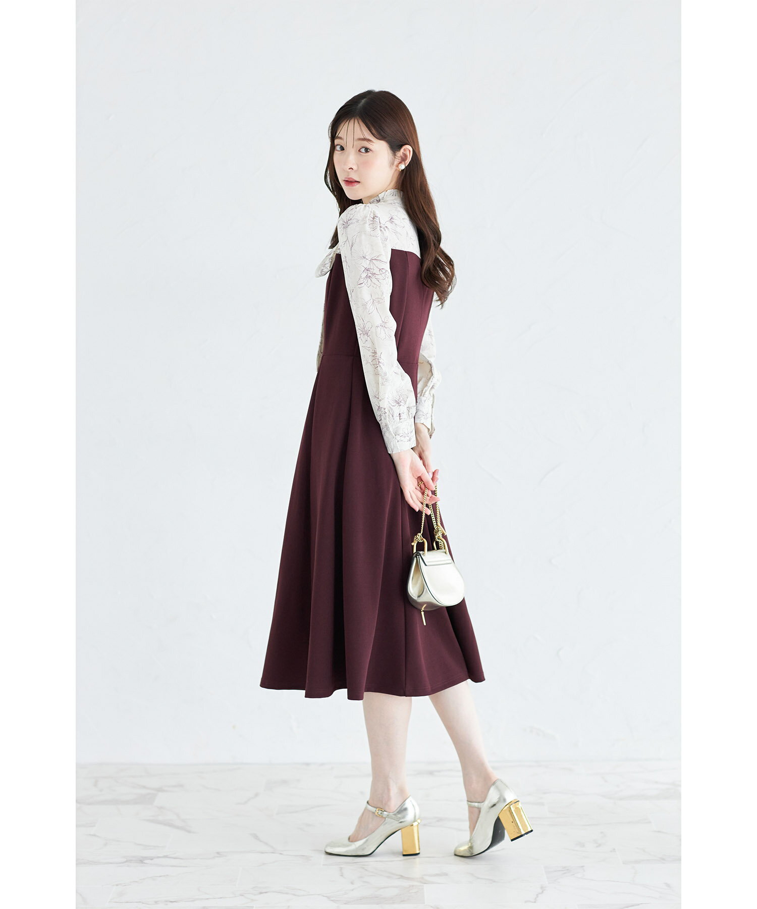 ボウタイリボンフラワープリントドッキングワンピース【jenive ジェニーヴ】tocco closet(トッコクローゼット) ※宇垣美里さんはバーガンディ着用 バーガンディ ブラック 商品番号:186-179495