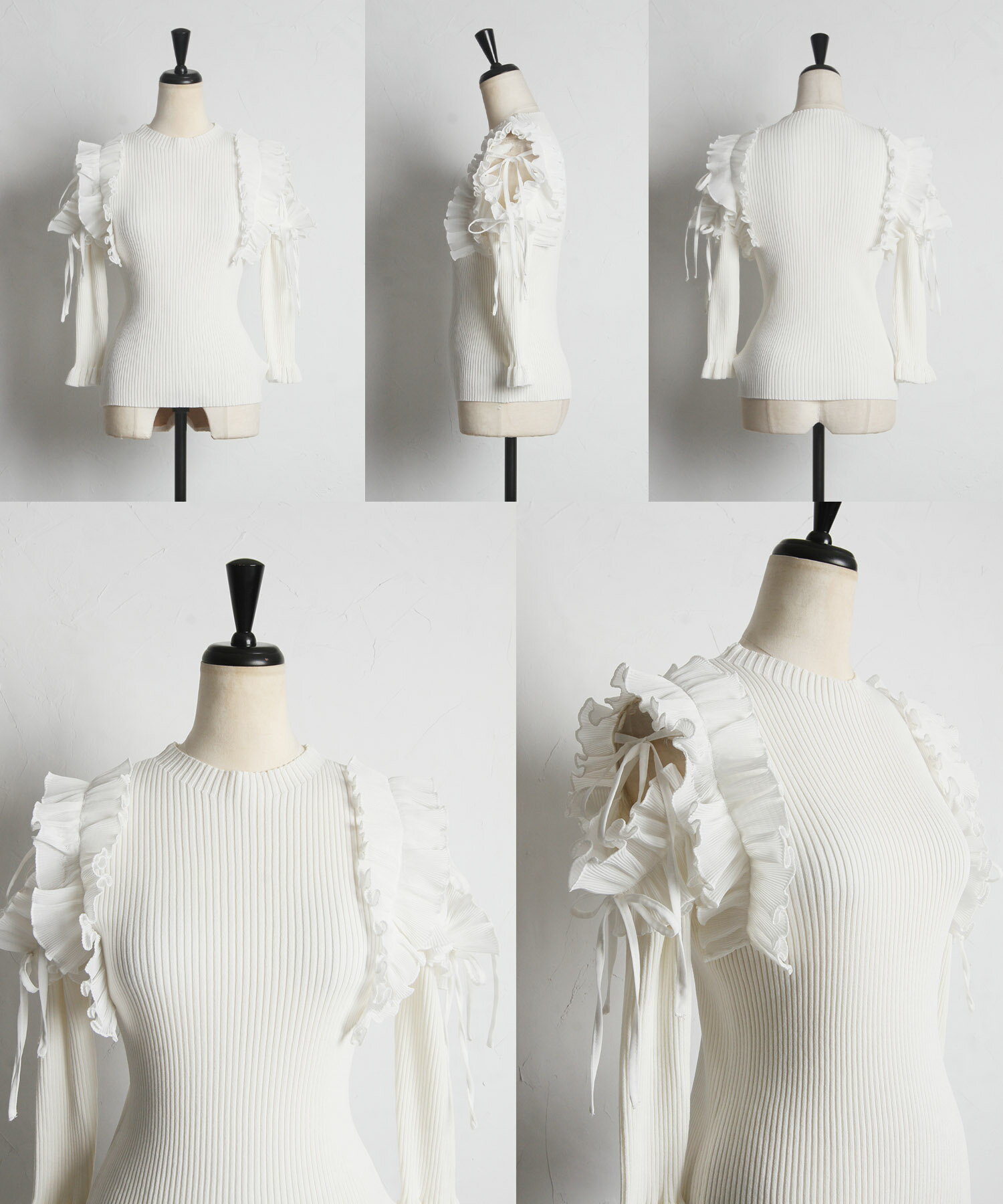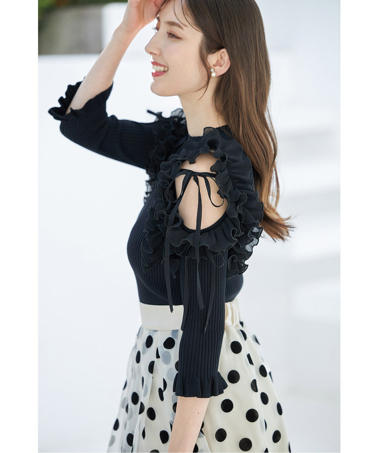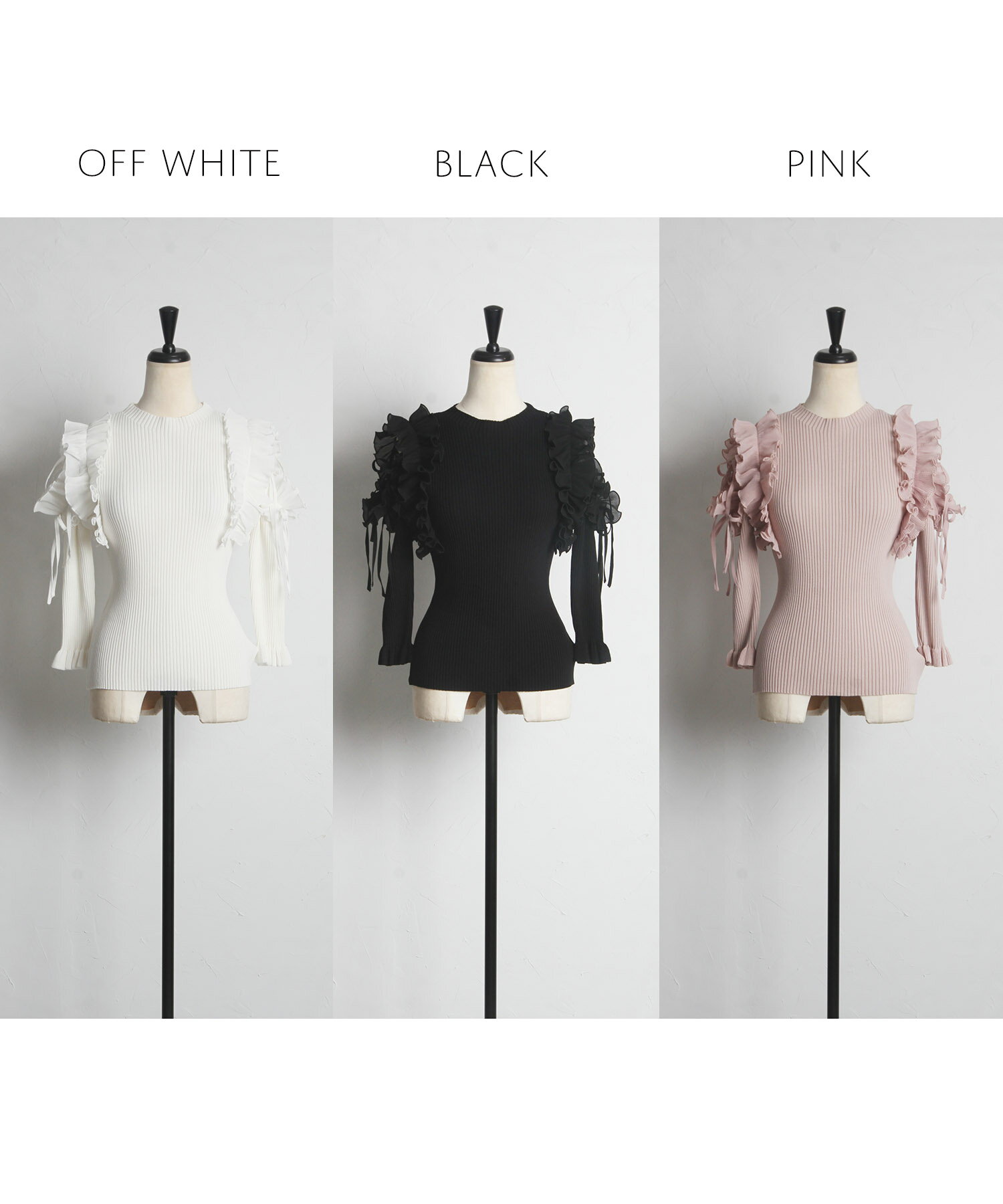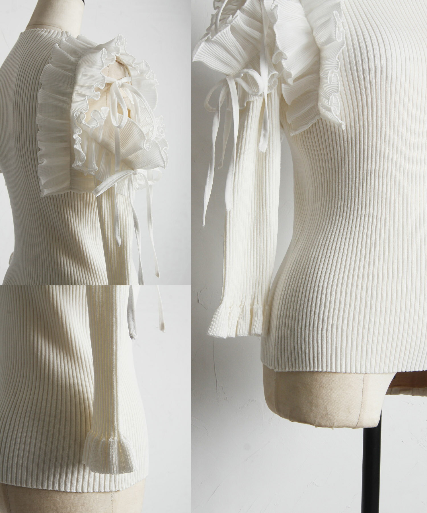 りぼん付きシフォンプリーツ切り替えリブニットプルオーバー【falily ファリリィ】tocco closet(トッコクローゼット)オフホワイト ブラック ピンク 商品番号:186-182495