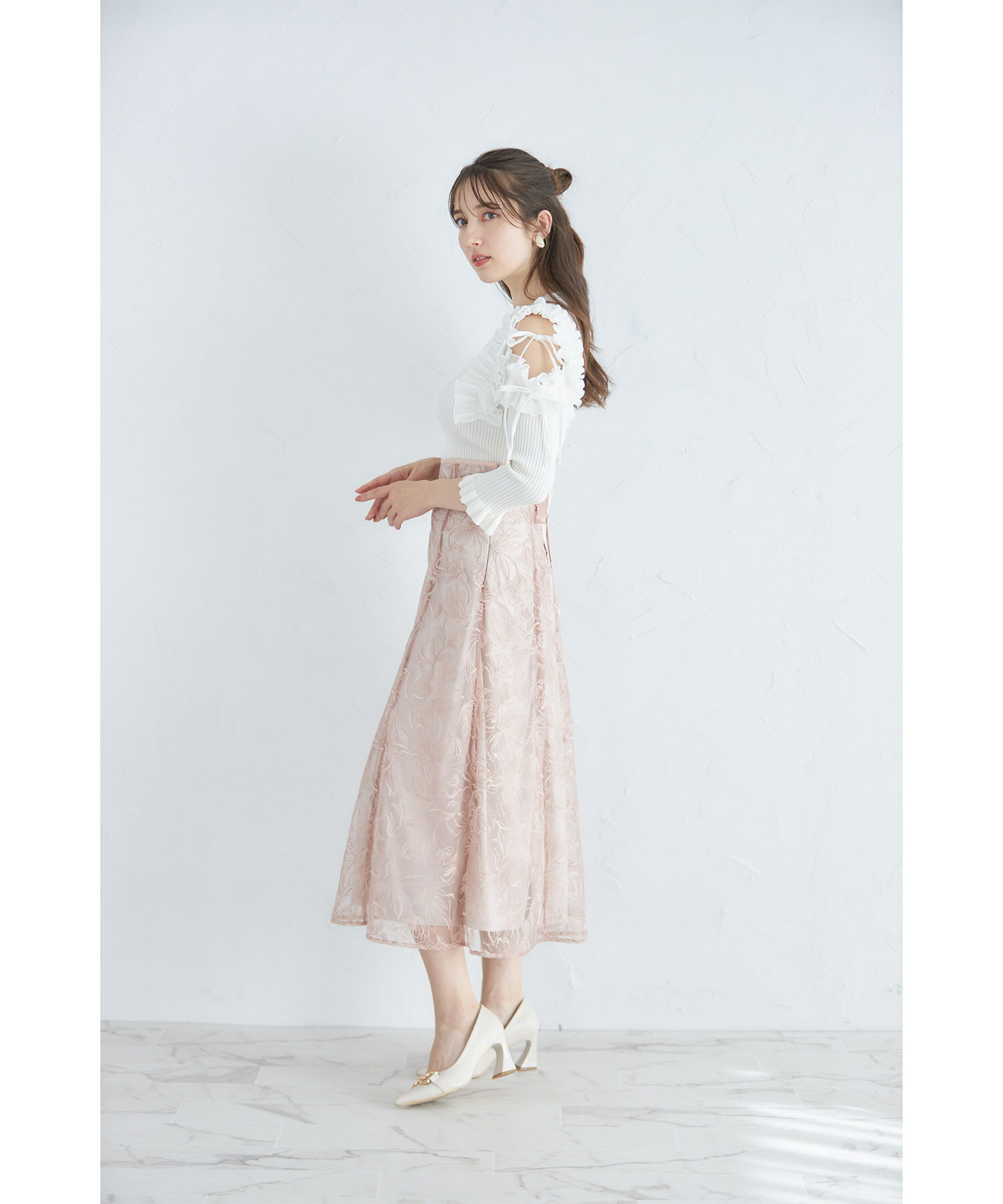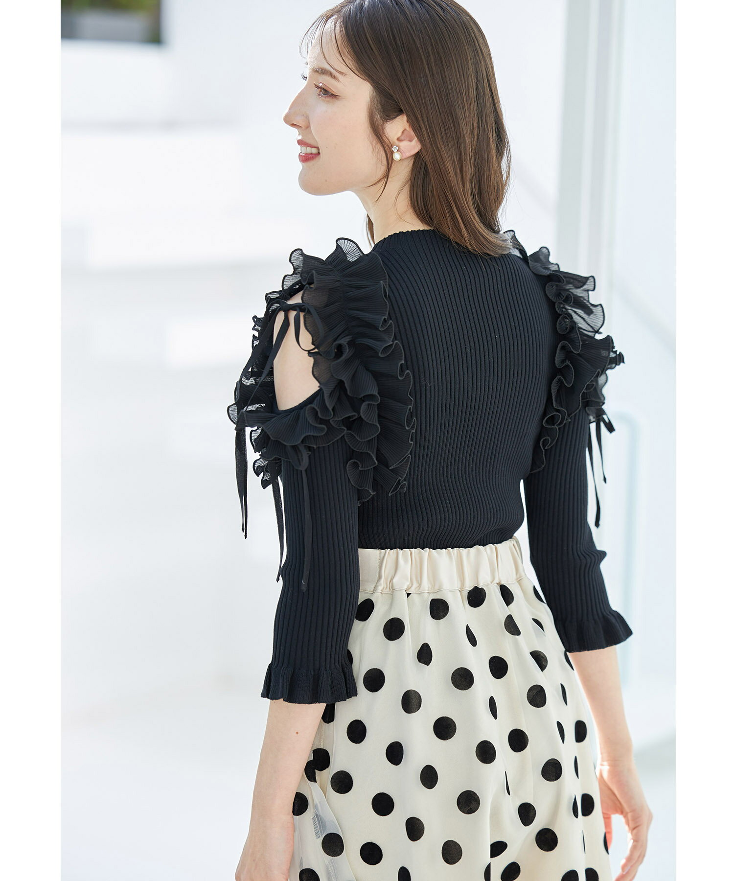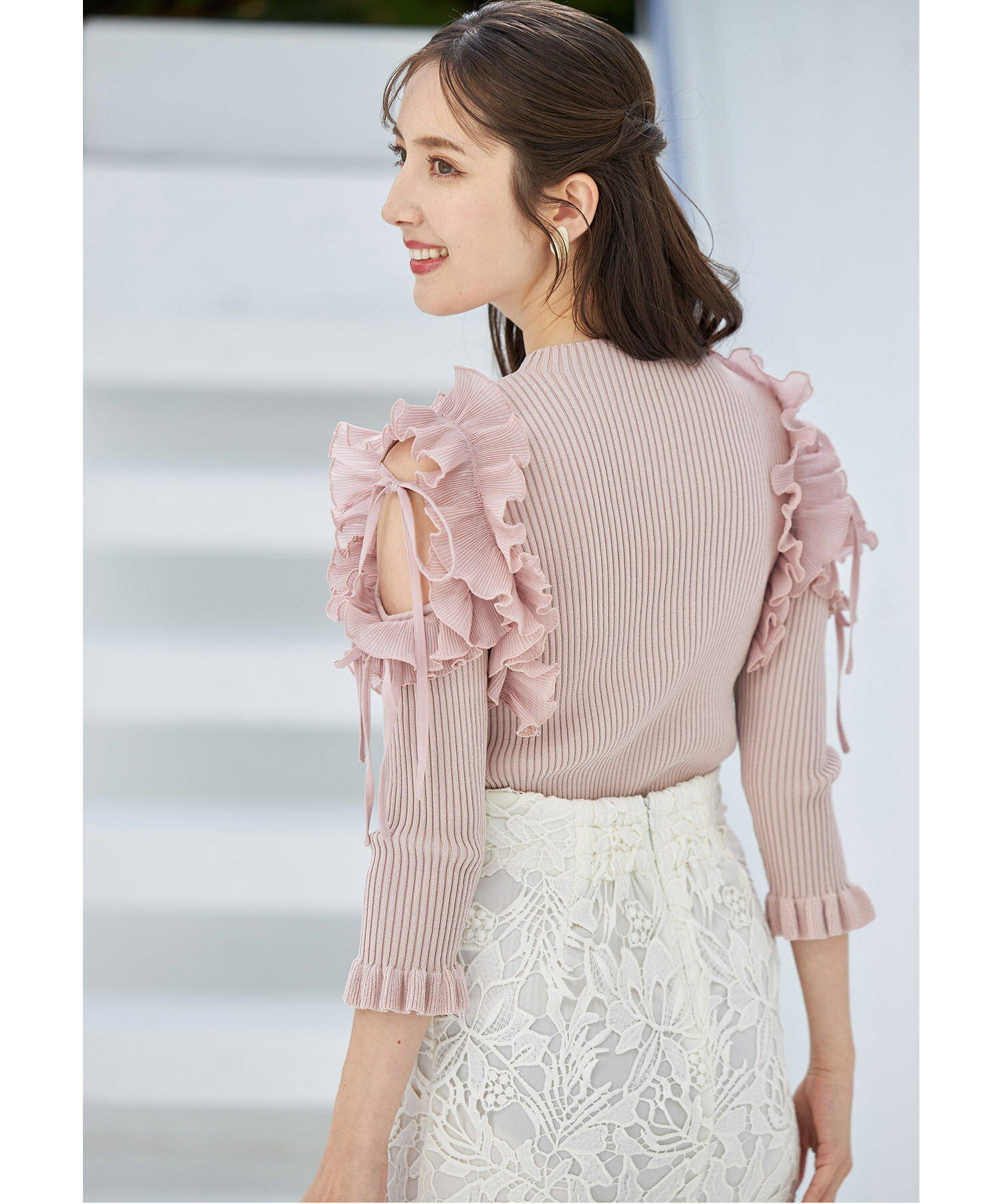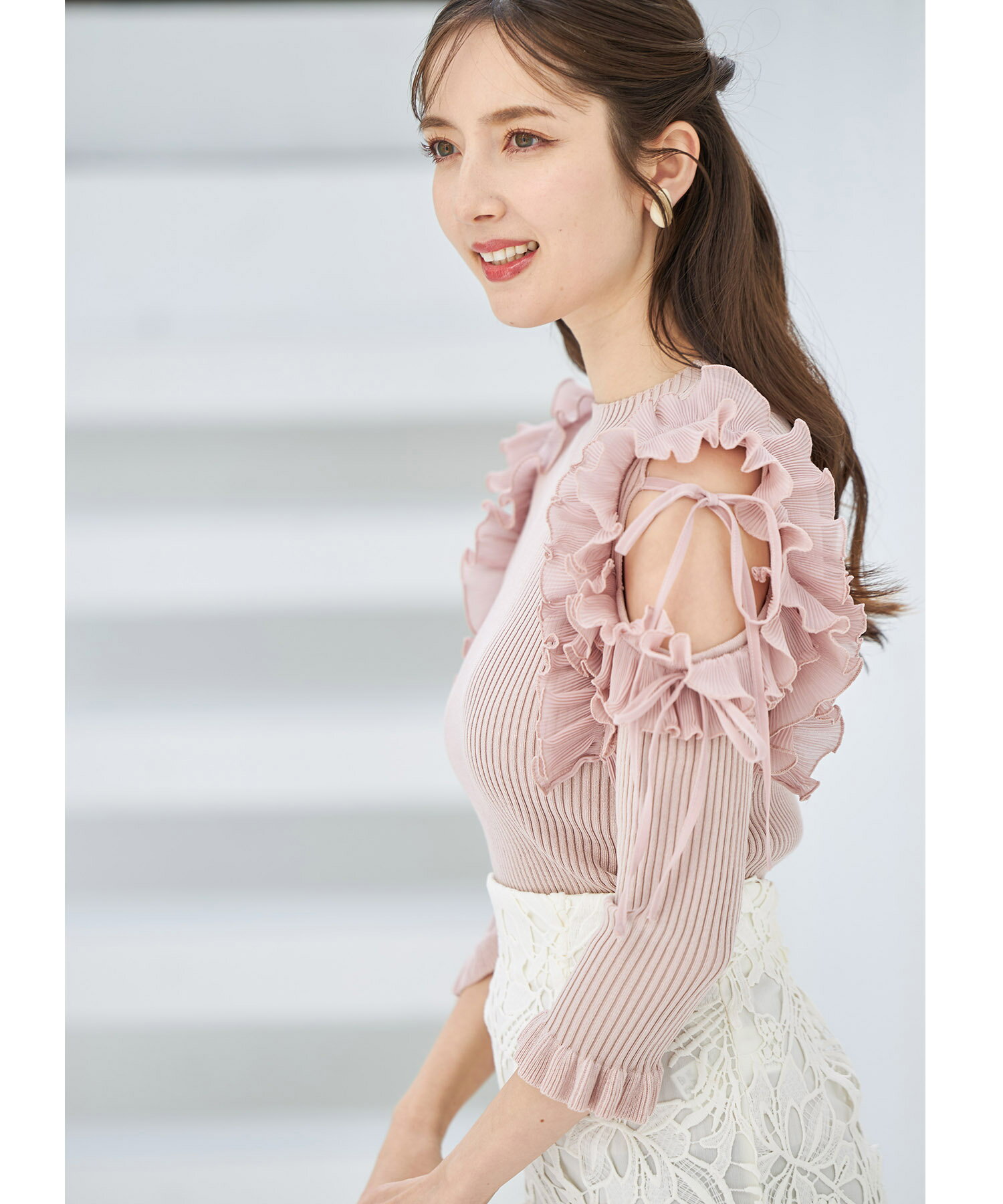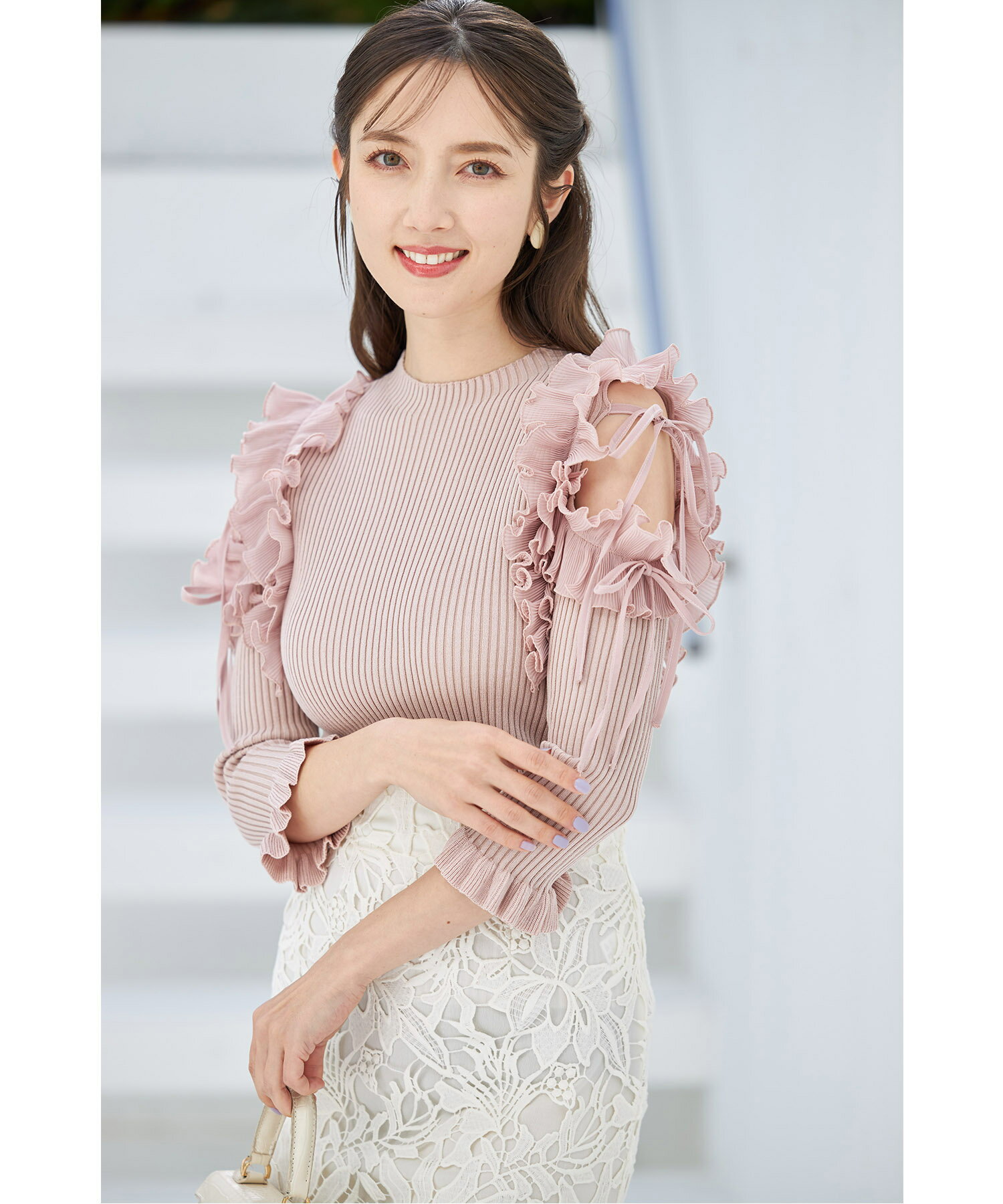 りぼん付きシフォンプリーツ切り替えリブニットプルオーバー【falily ファリリィ】tocco closet(トッコクローゼット)オフホワイト ブラック ピンク 商品番号:186-182495