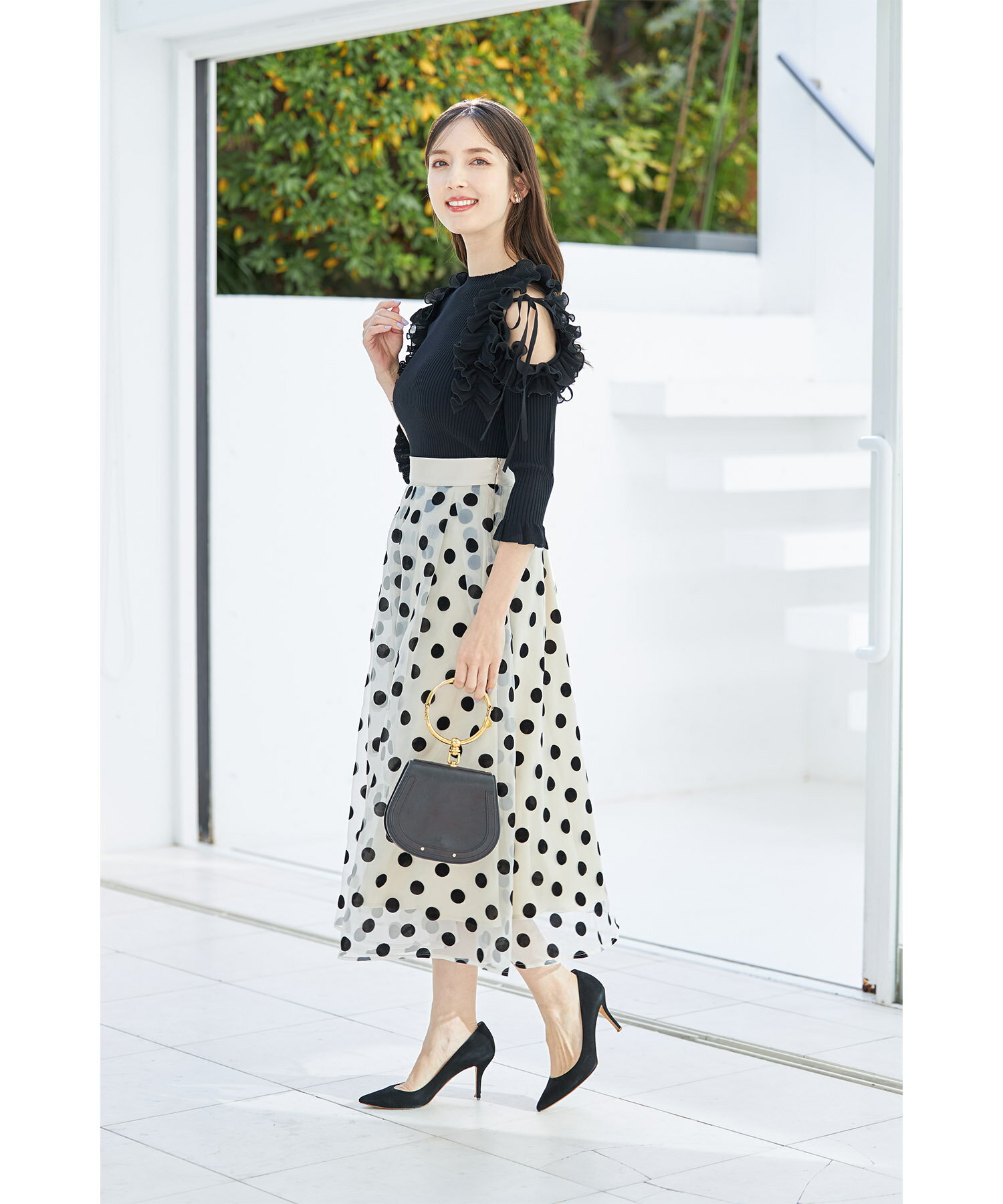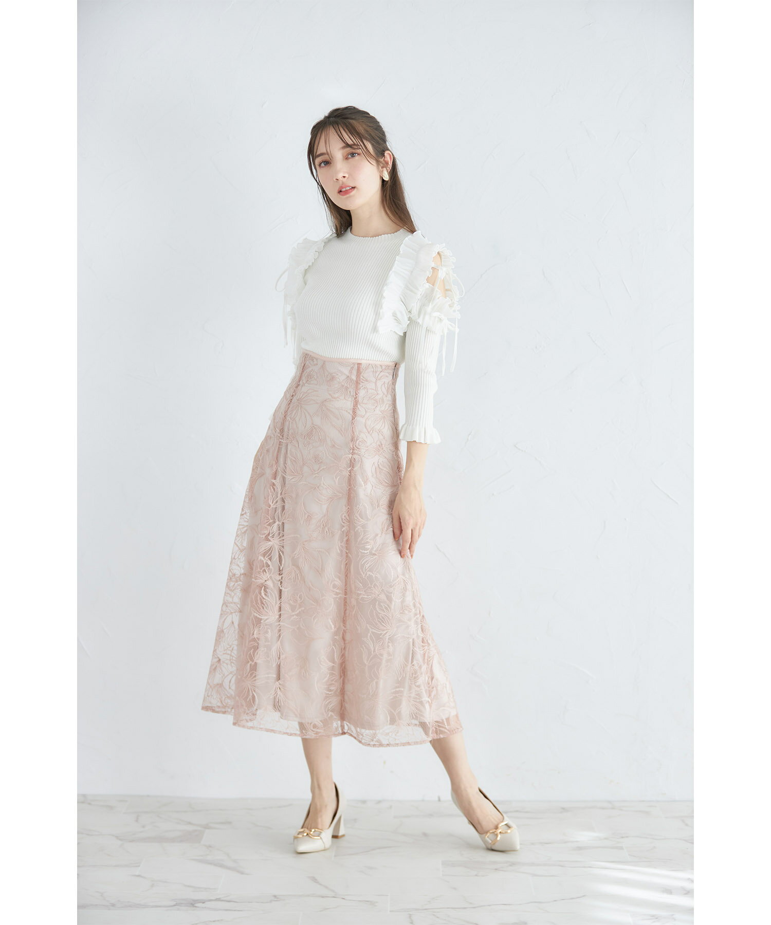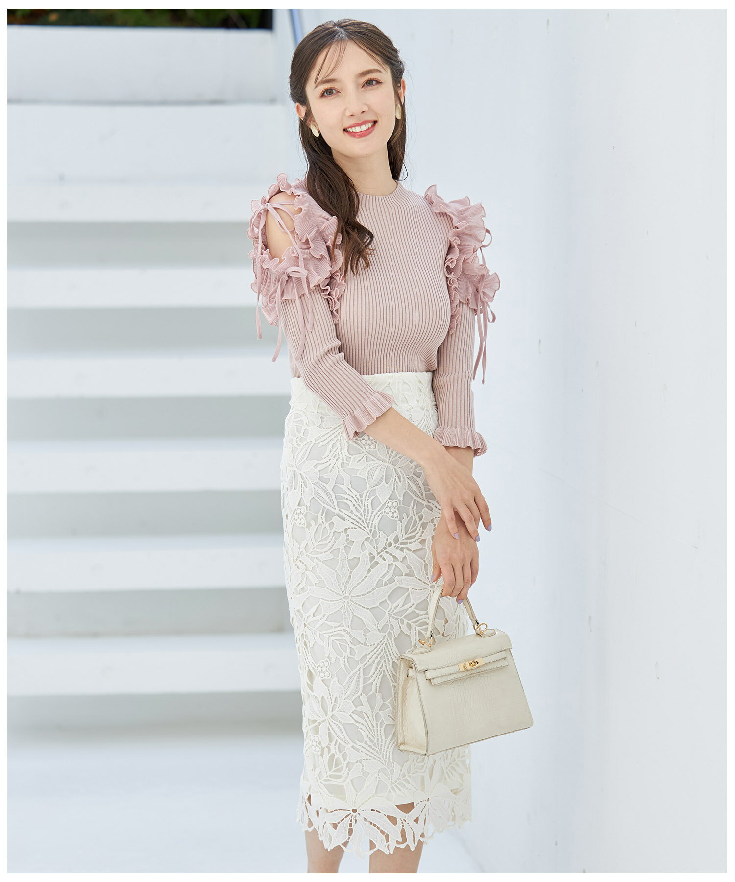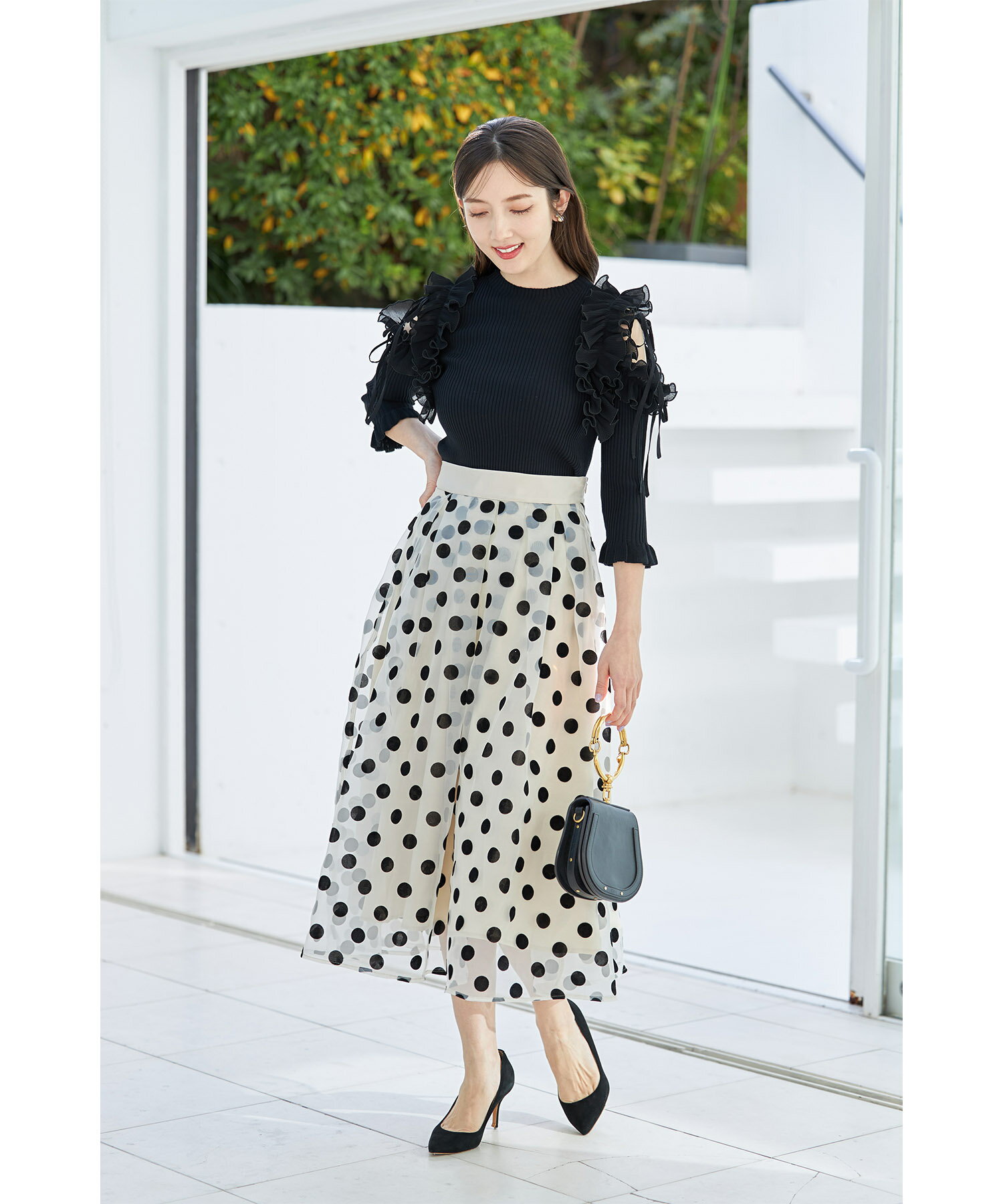 りぼん付きシフォンプリーツ切り替えリブニットプルオーバー【falily ファリリィ】tocco closet(トッコクローゼット)オフホワイト ブラック ピンク 商品番号:186-182495
