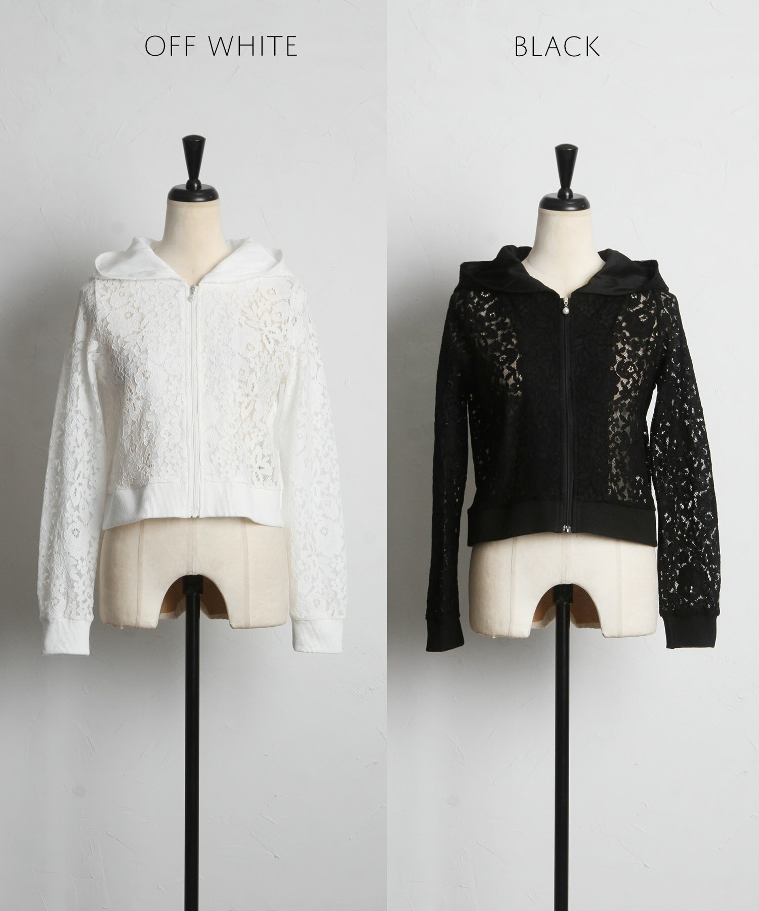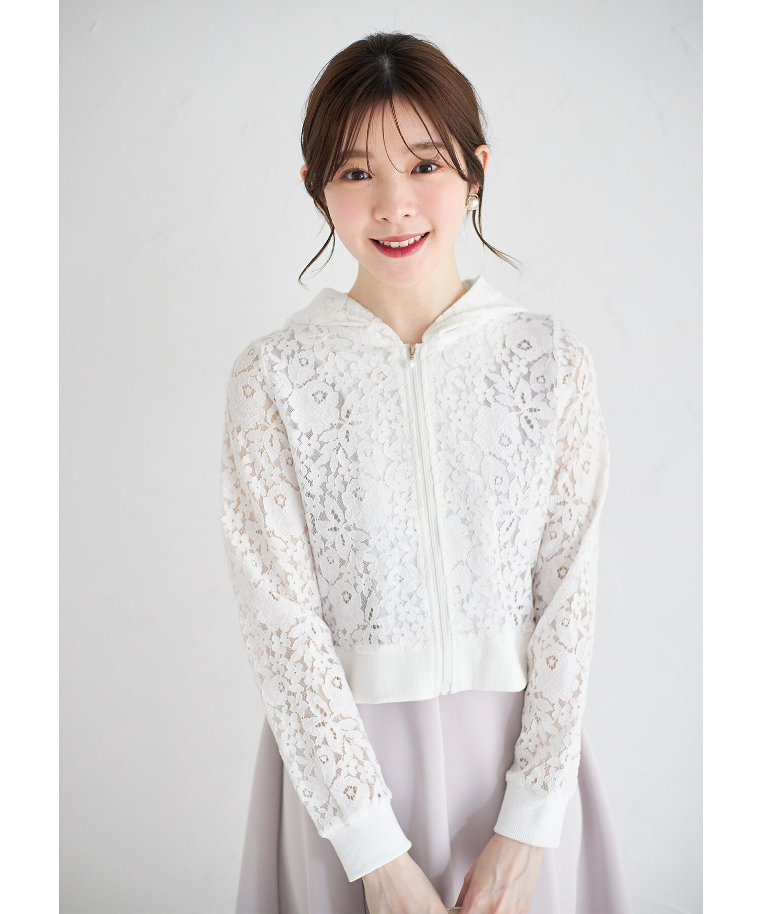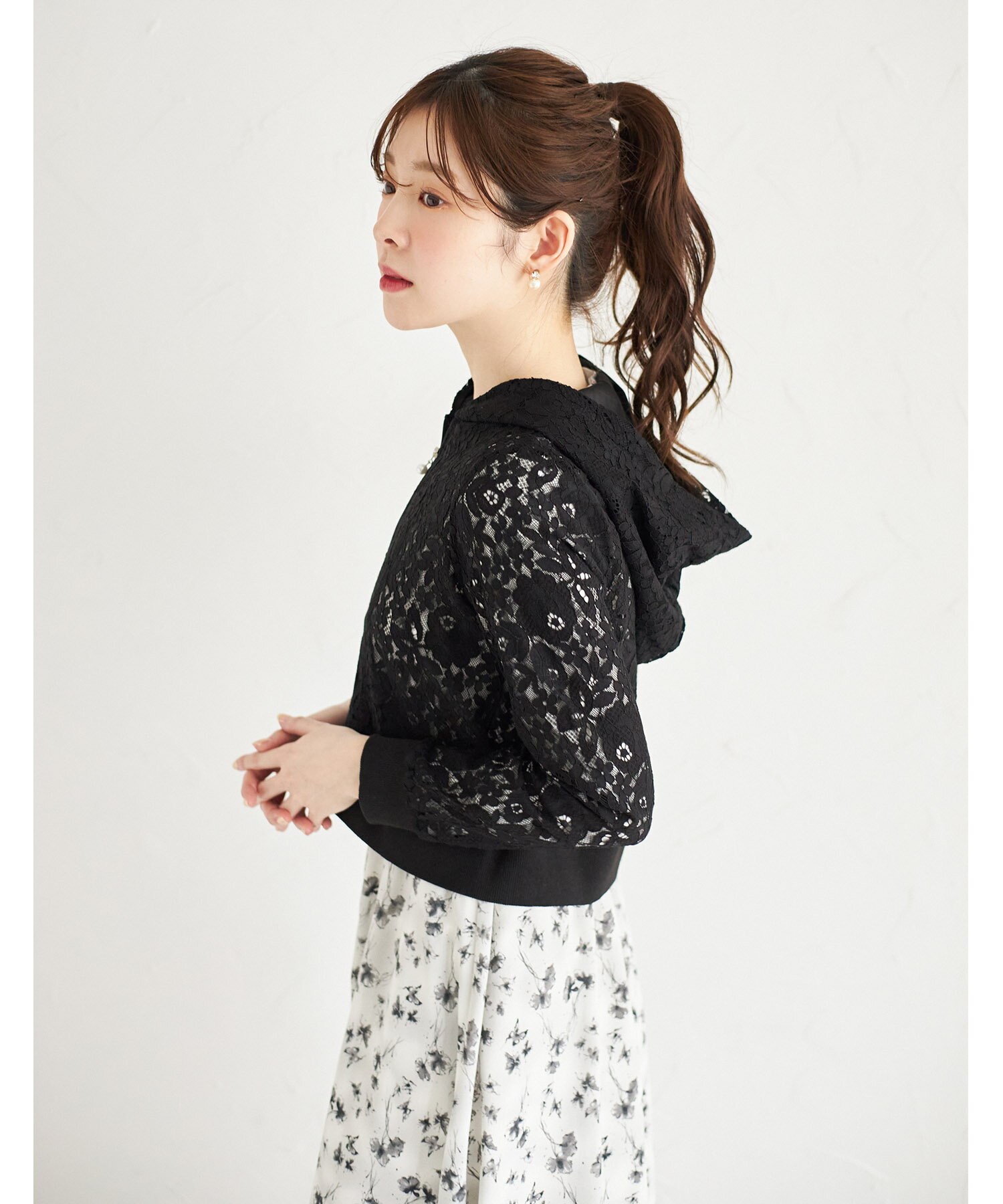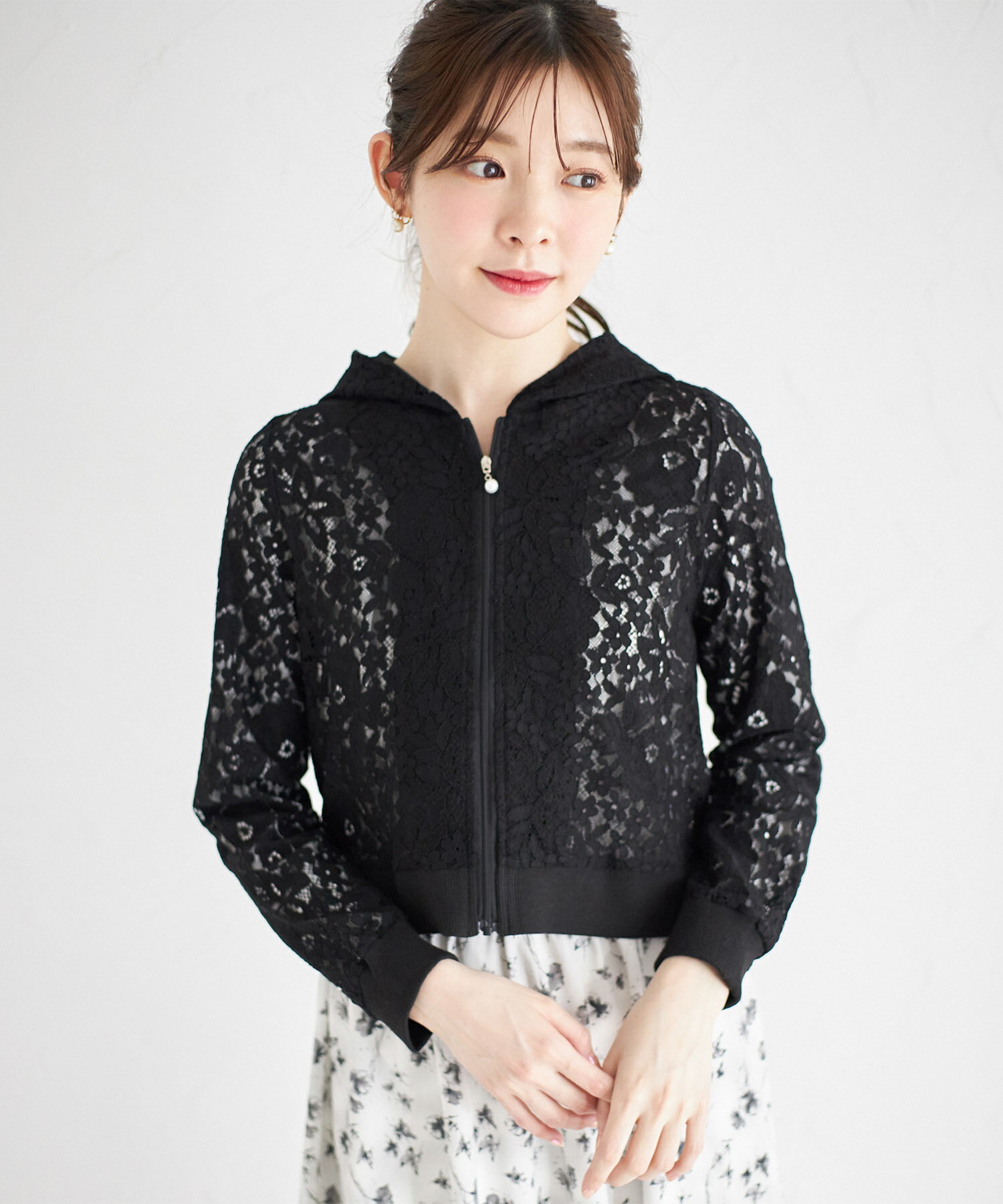 パールファスナーチャーム付きシアーフラワーレースパーカー【mephly メフィー】tocco closet(トッコクローゼット) オフホワイト ブラック 186-183628